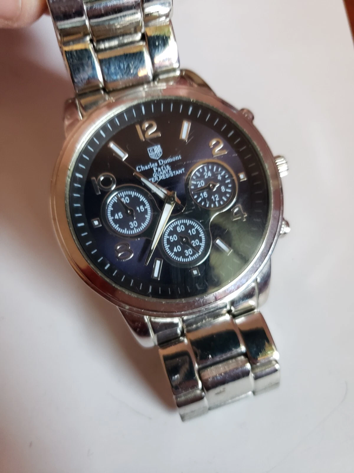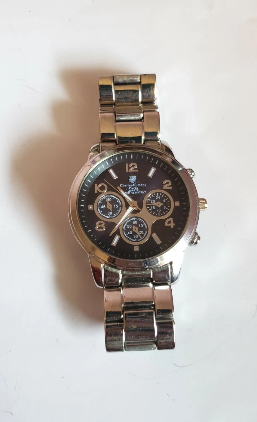 Charles Dumont Paris Mens Multi Dial Analog Watch NEW BATTERY Vintage