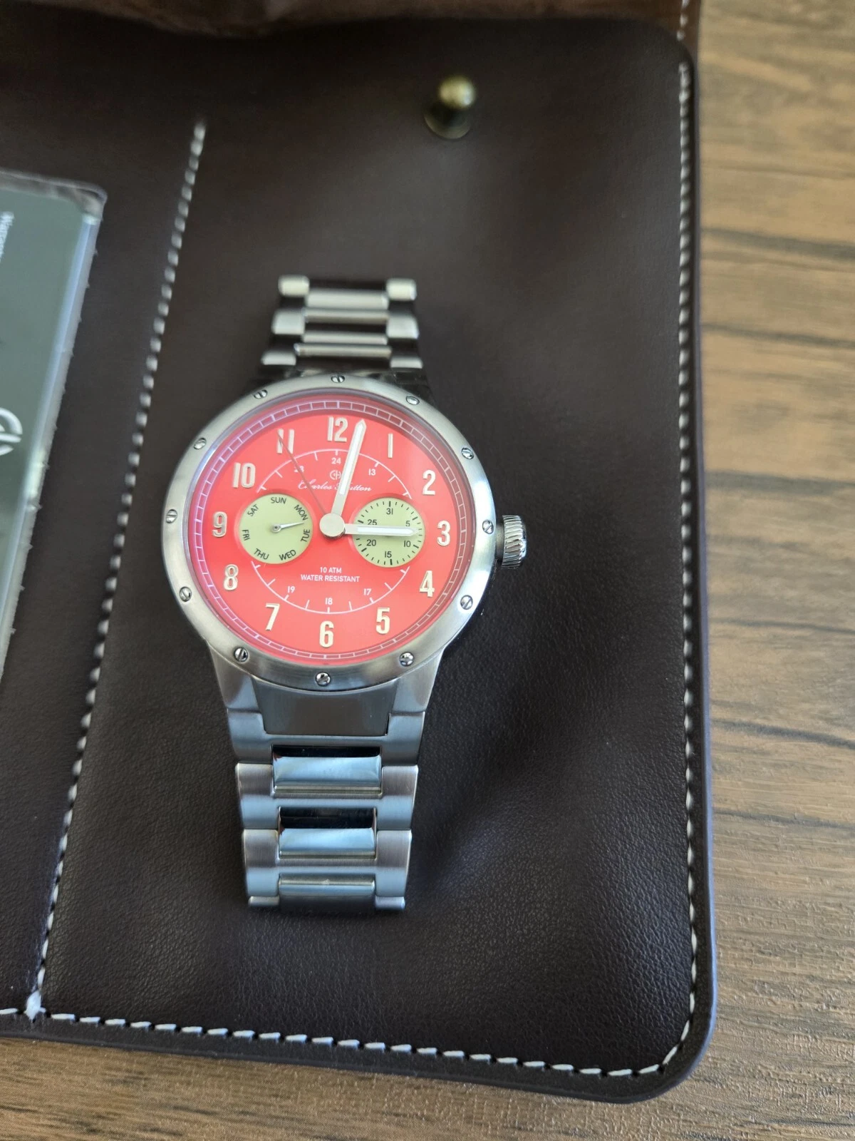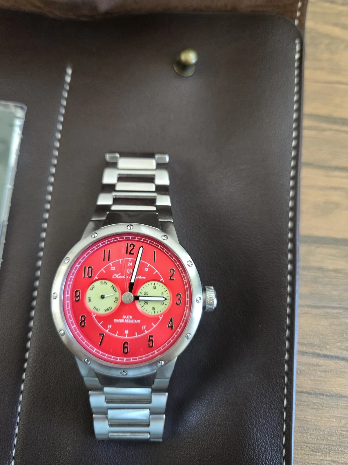 Charles Hutton Newport Pagnell Red Sunray VH64 Quartz Day Date 42 mm SS Bracelet
