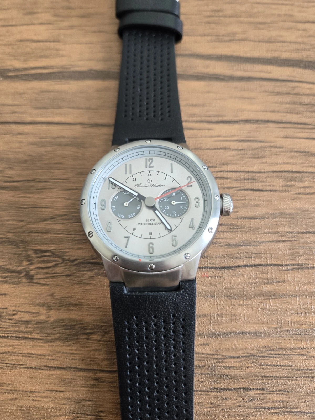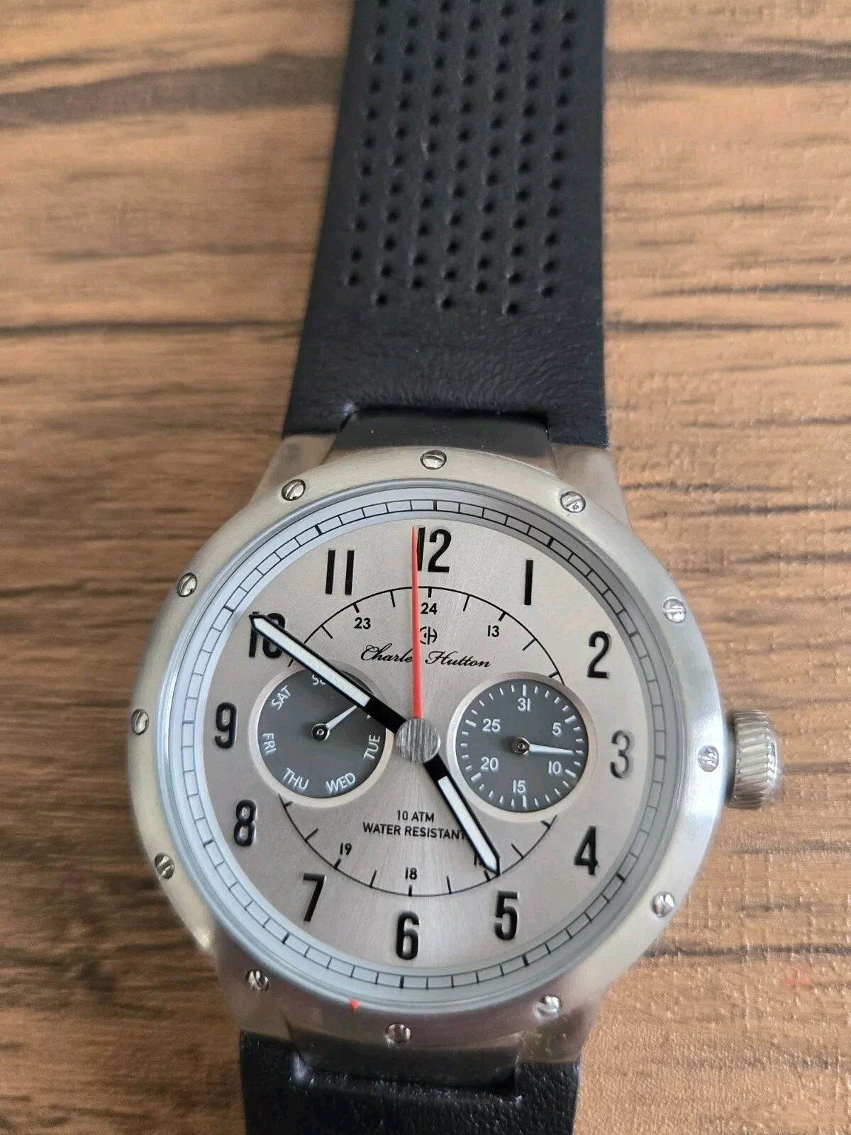 Charles Hutton Newport Pagnell Gray Sunray VH64 Quartz Day Date 42mm Leather