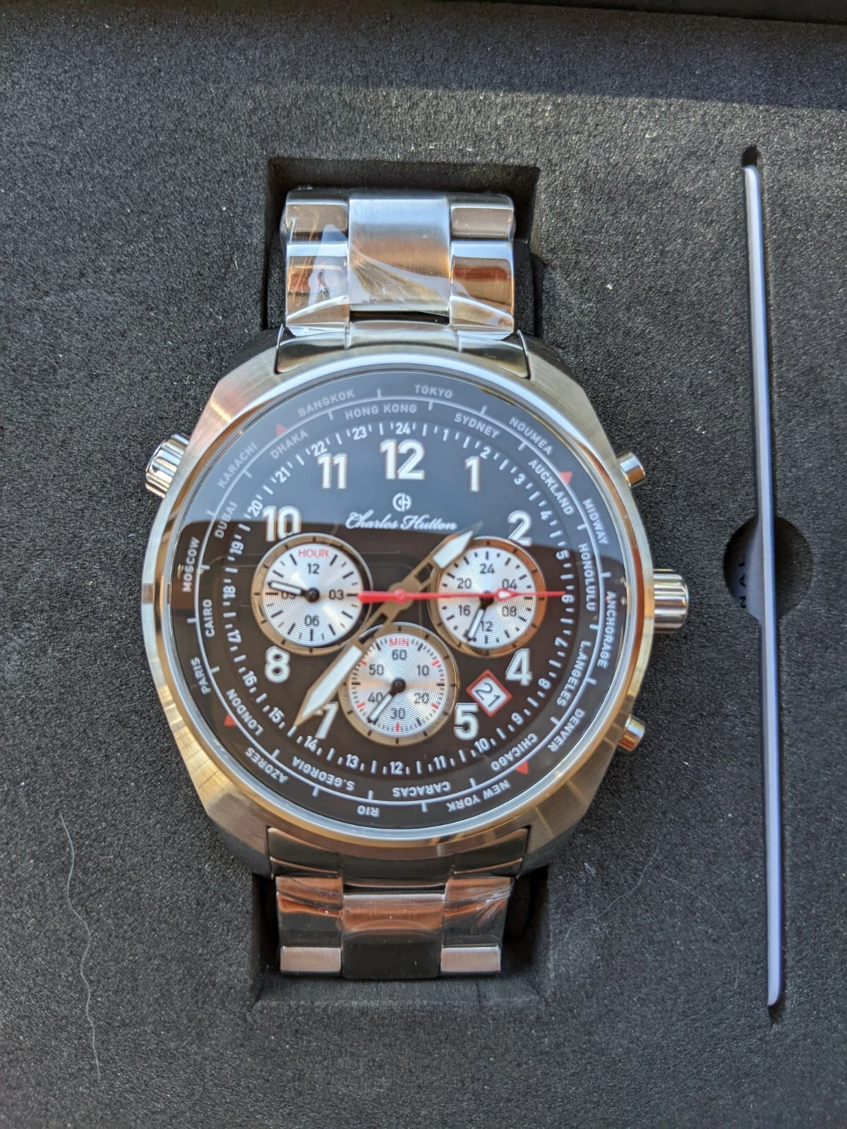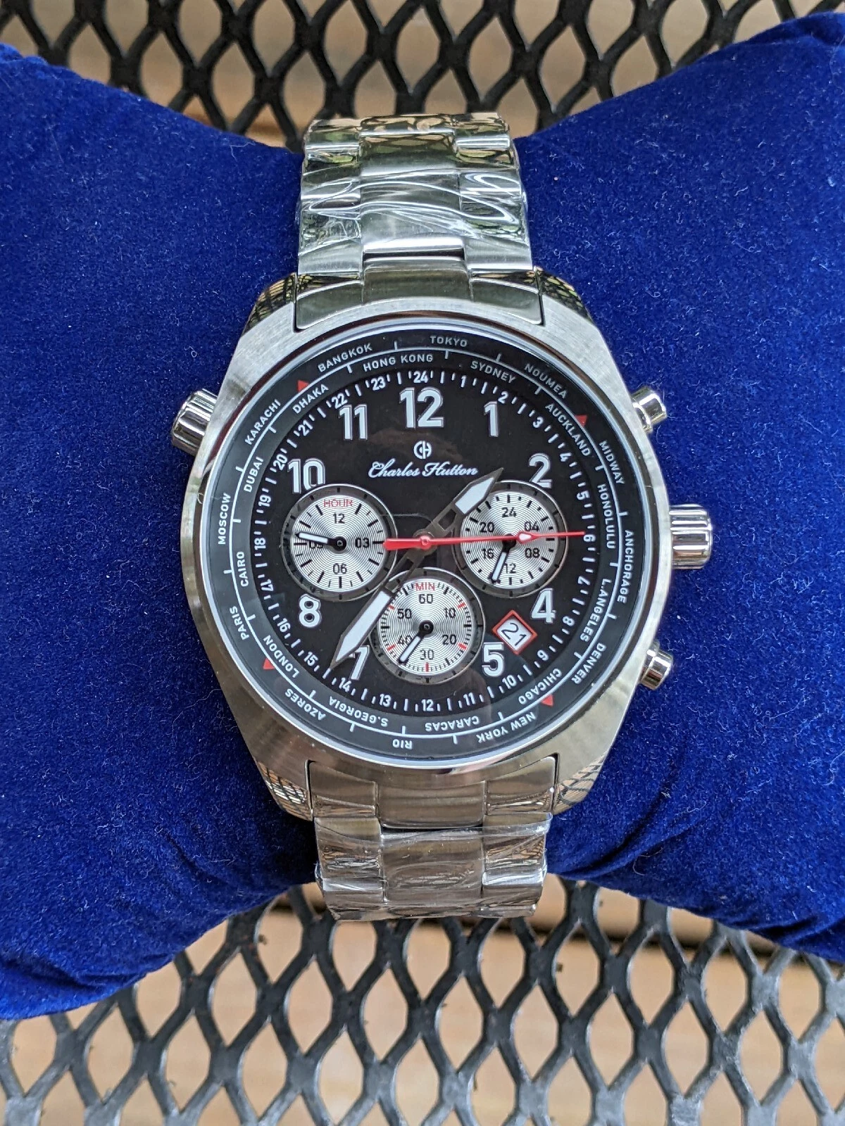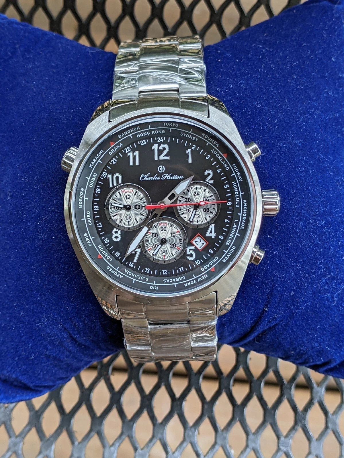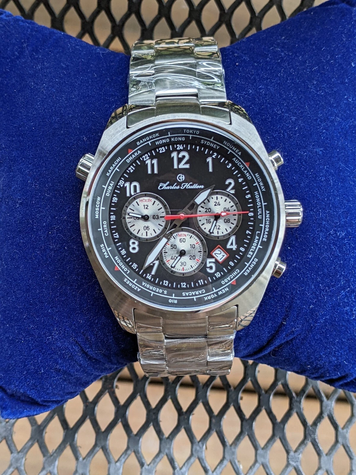 Charles Hutton Duel Time Watch 85146-11a Stainless Steel Japan SEIKO Vd33 MVMT