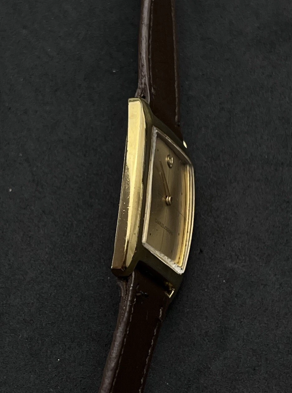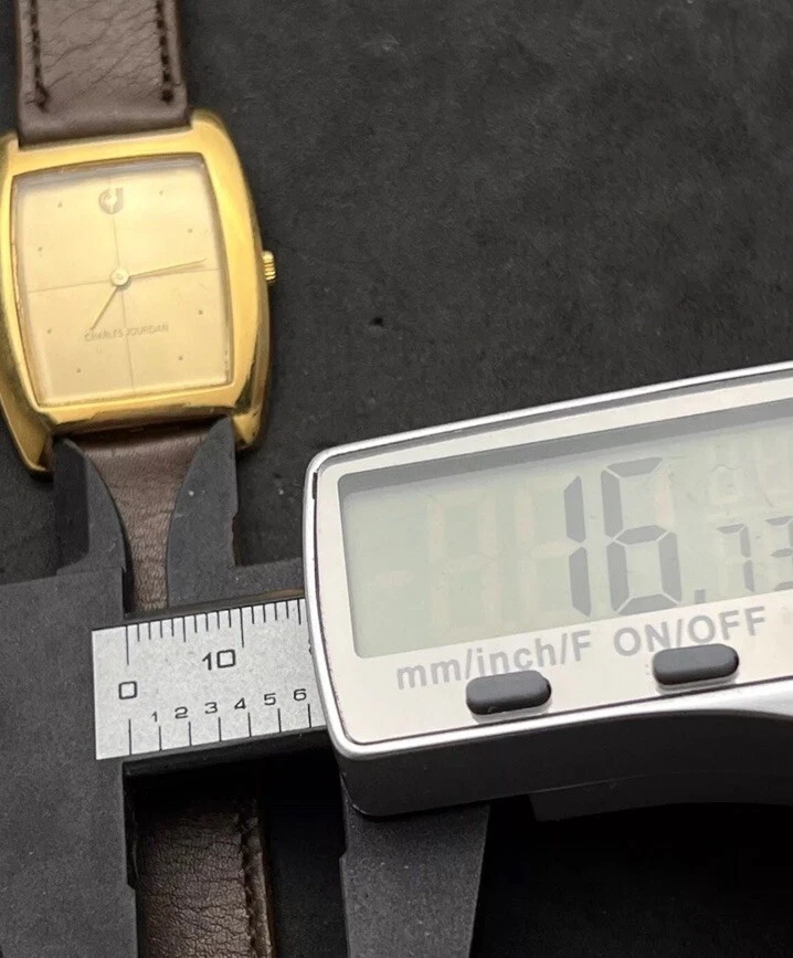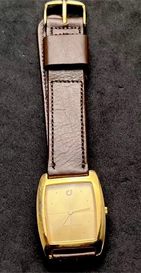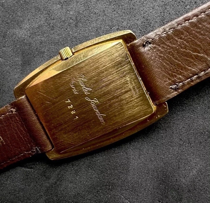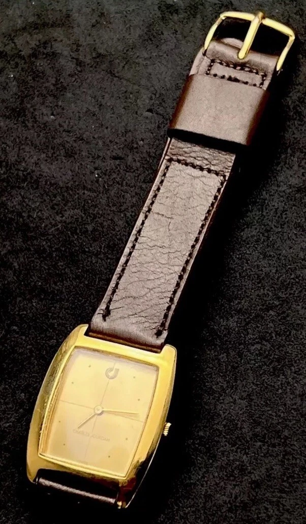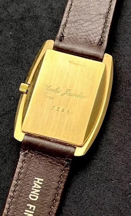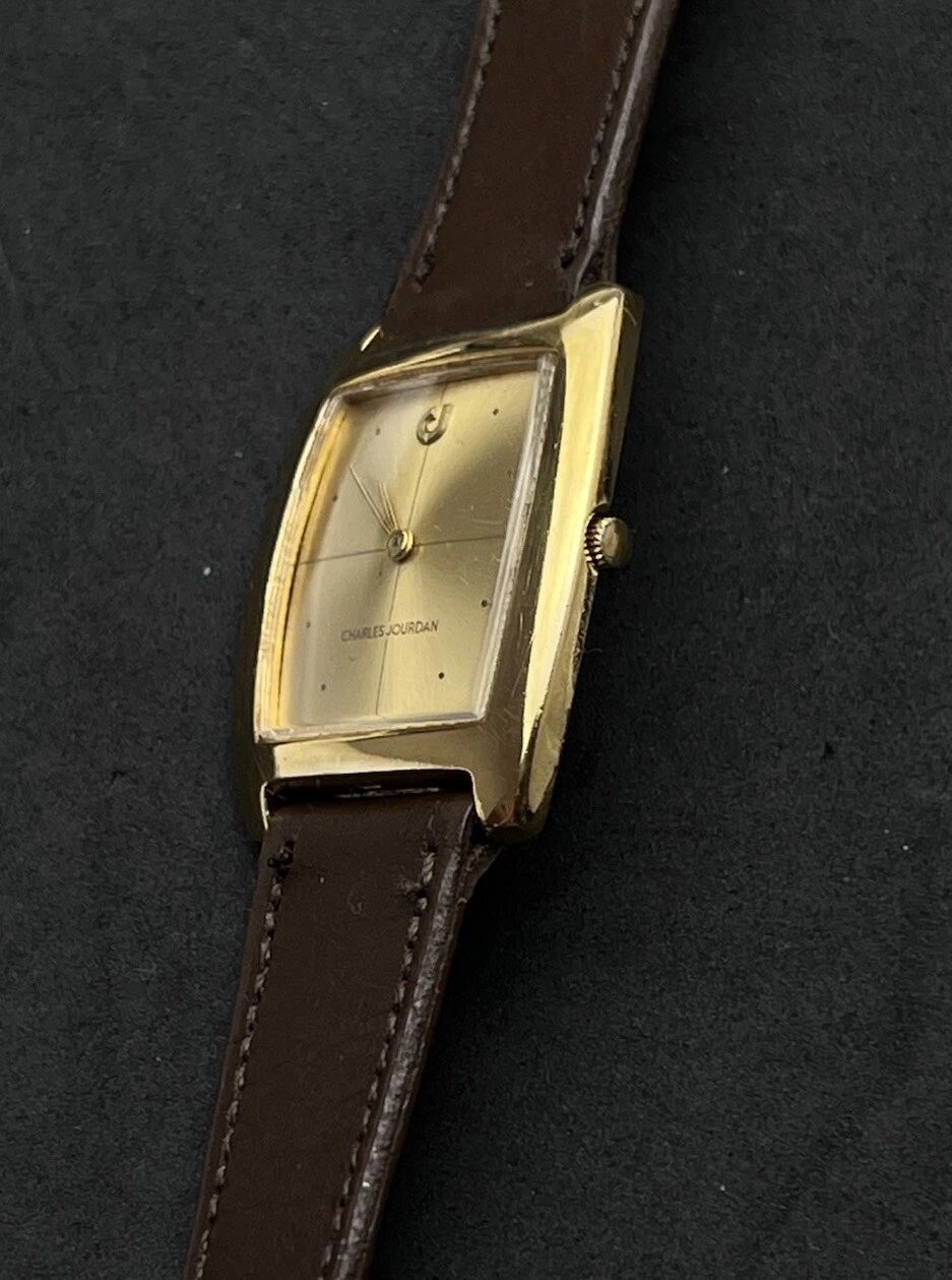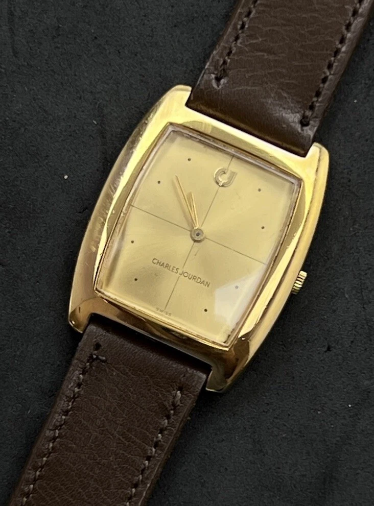 Vintage New 1981 CHARLES JOURDAN Tank Mens 34mm Mechanical Watch Gold 17j Swiss
