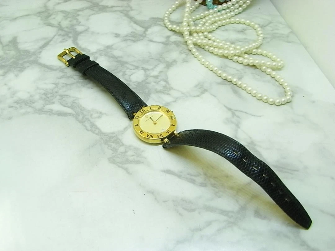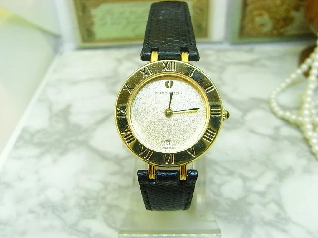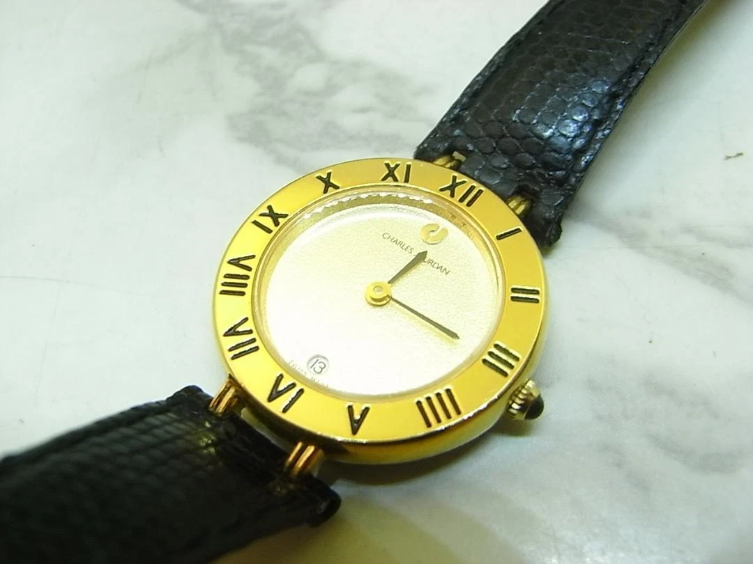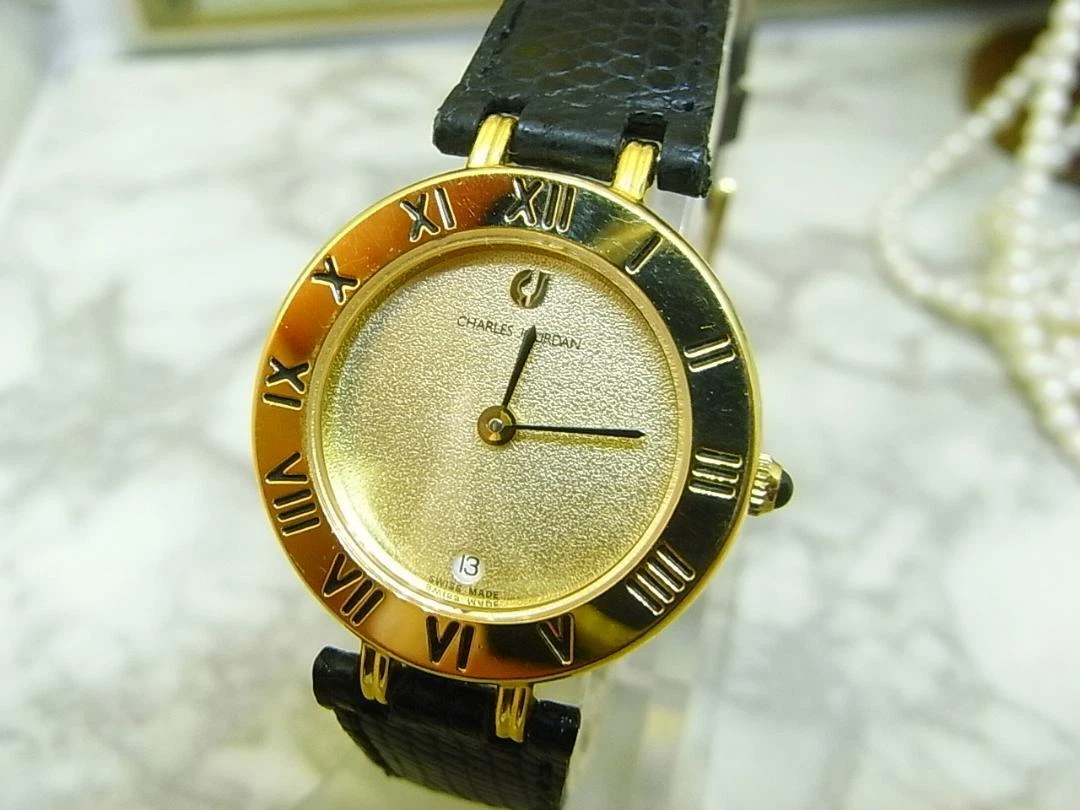 Charles Jourdan SWISS MADE Ladies Watch Analog Quartz Gold Black Leather Belt