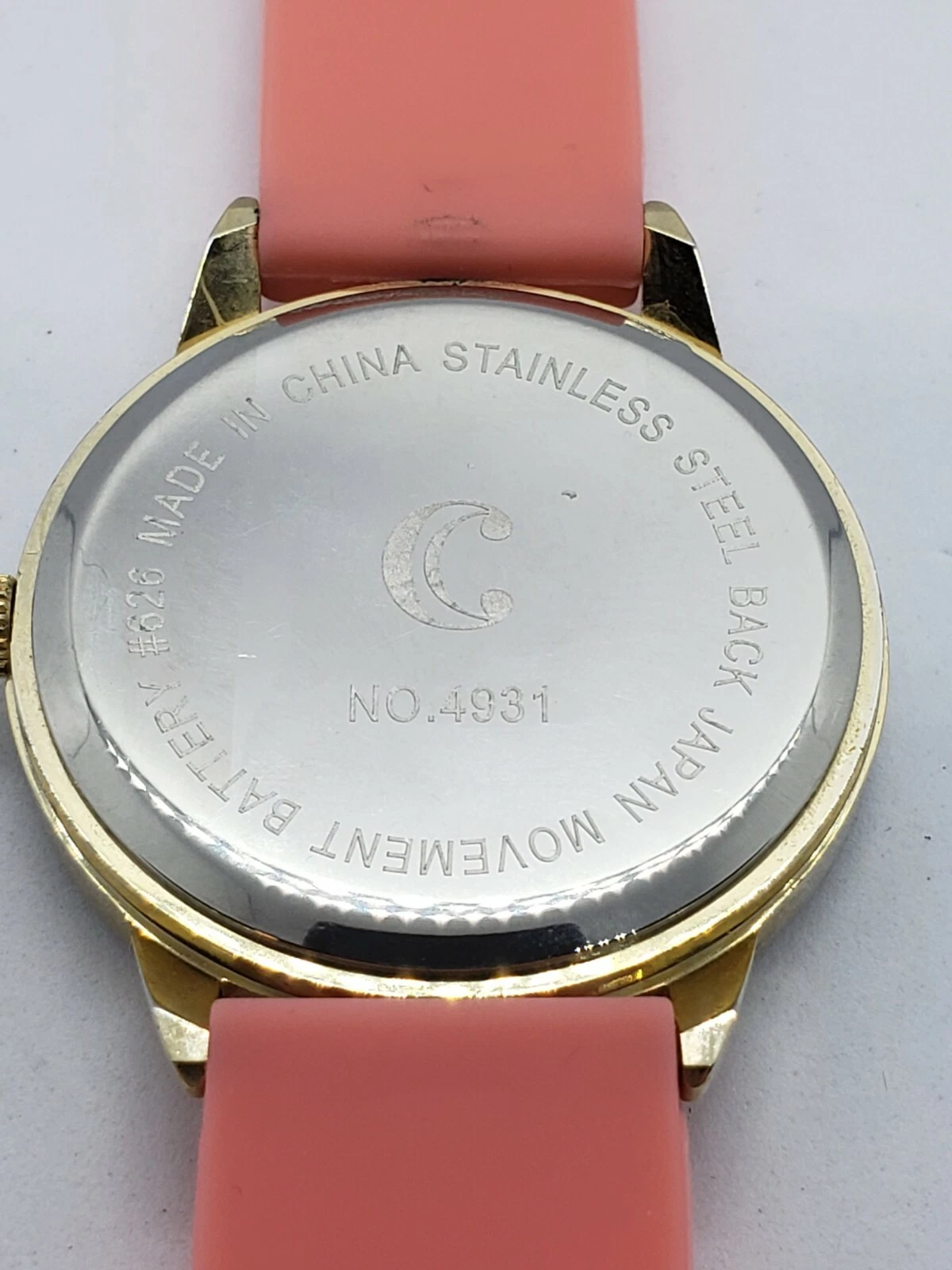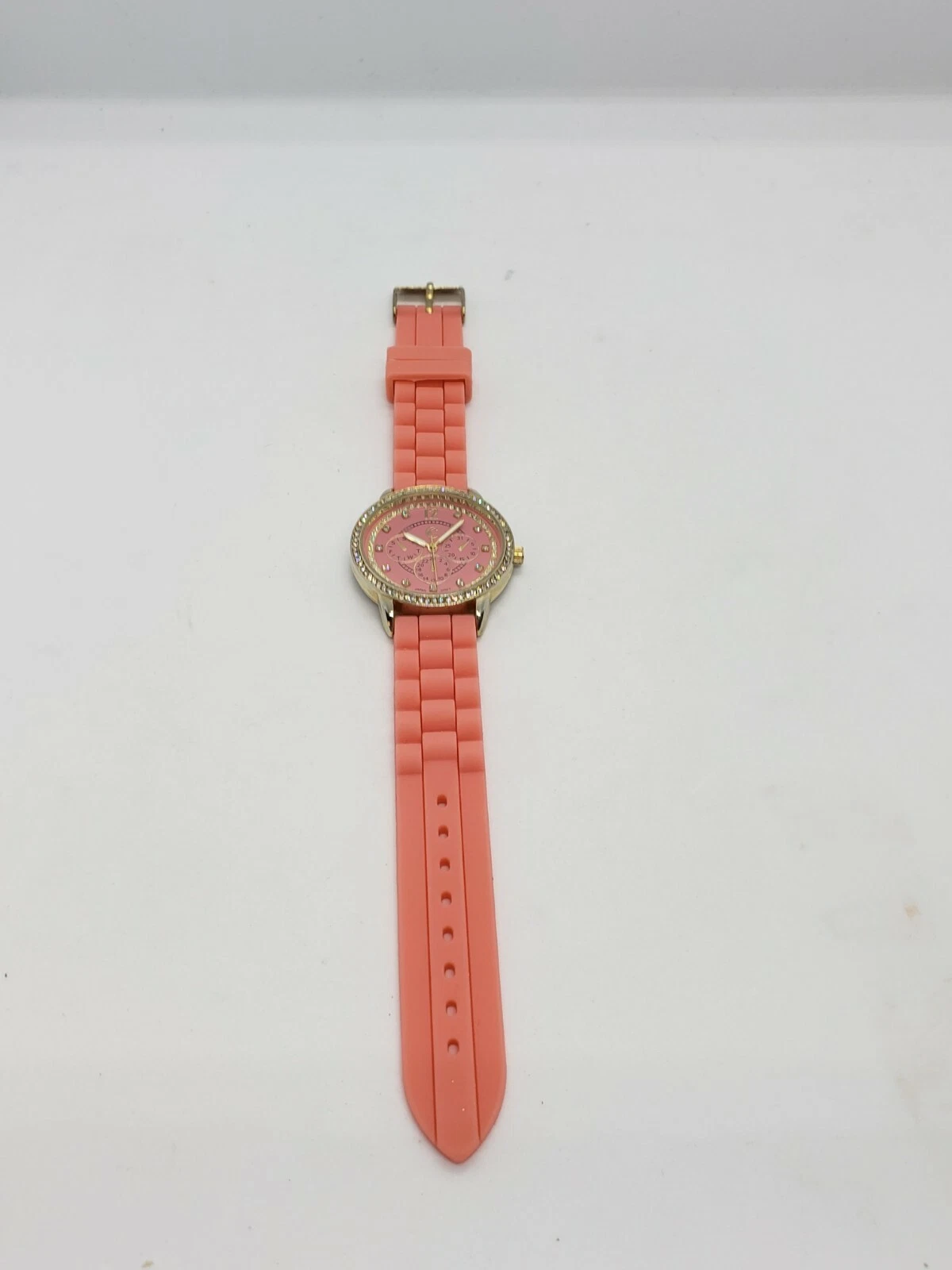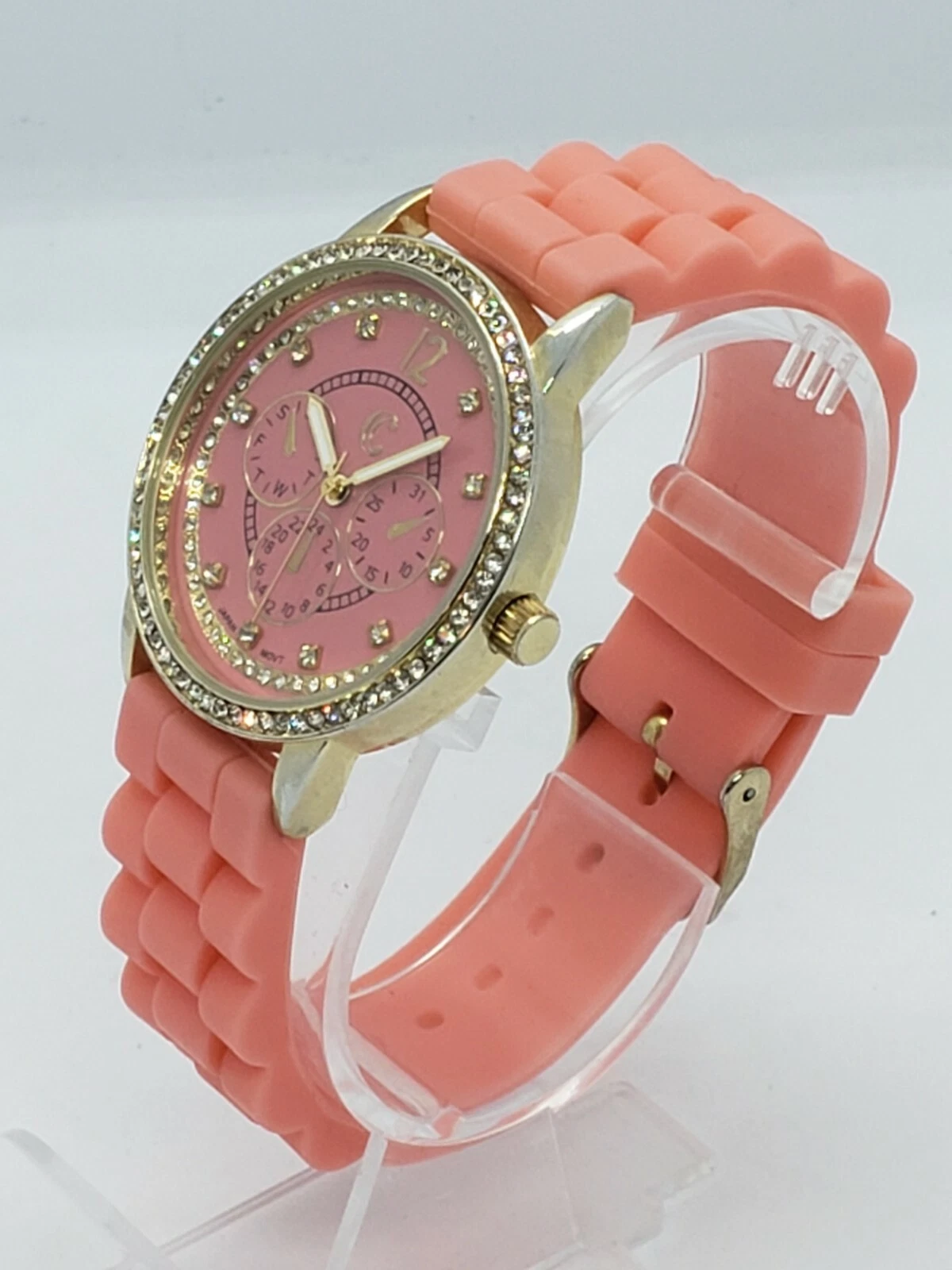 Charming Charlie Women's Pink Silicon Band 38mm Rhinestones Watch Needs BATTERY