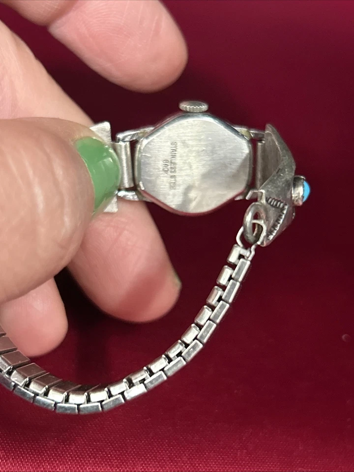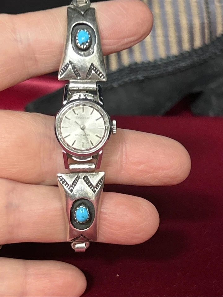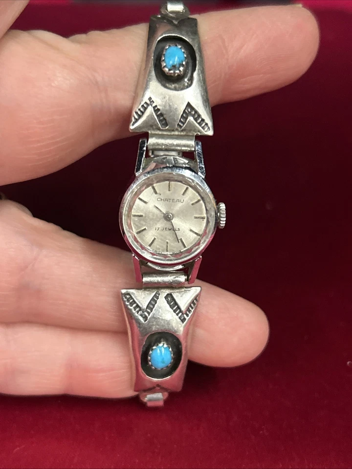 Chateau 17 Jewels Swis Made Silver Tone With Turquoise Automatic