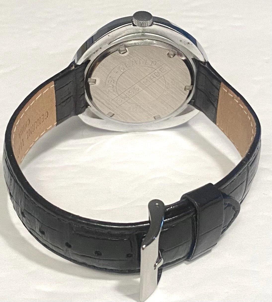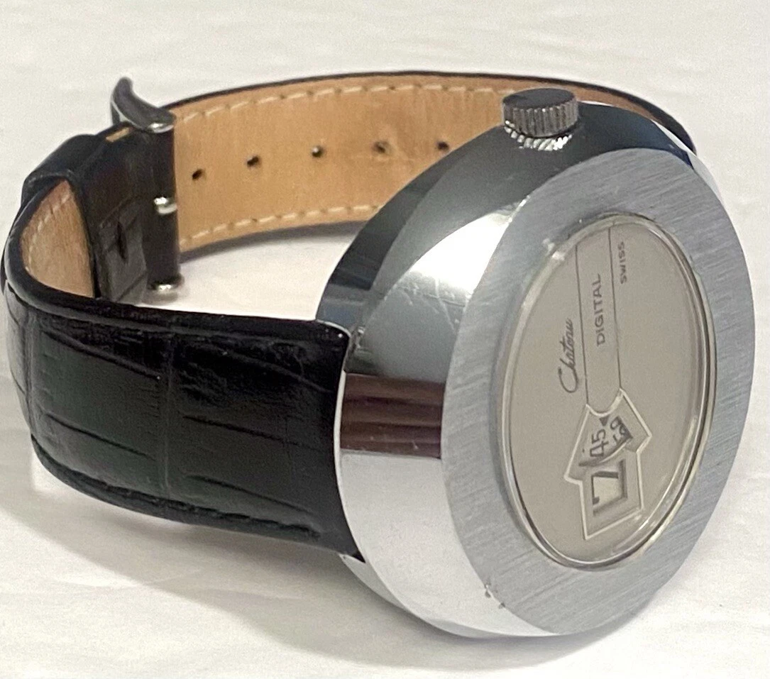 Vintage Swiss Made Mechanical 42mm JUMP HOUR Slvrtn Bullhead Case CHATEAU Watch