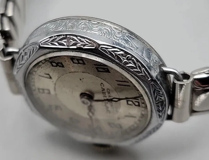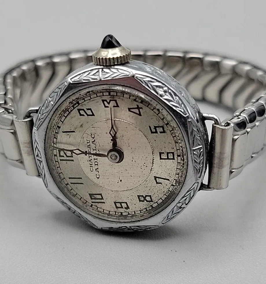 Chateau CADILLAC Ladies Watch Rare 1920s Art Deco 6" Bellavance Band 27mm Dial
