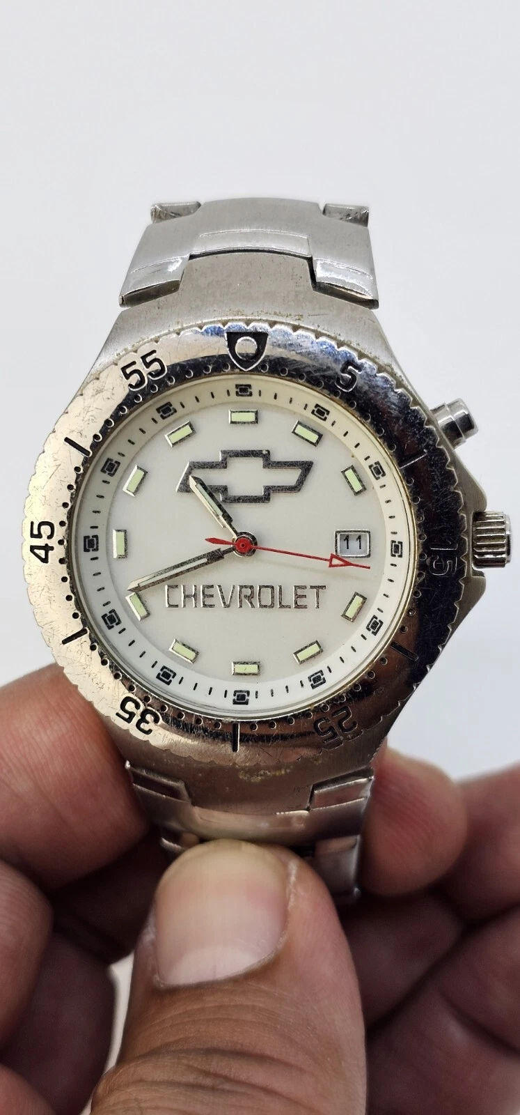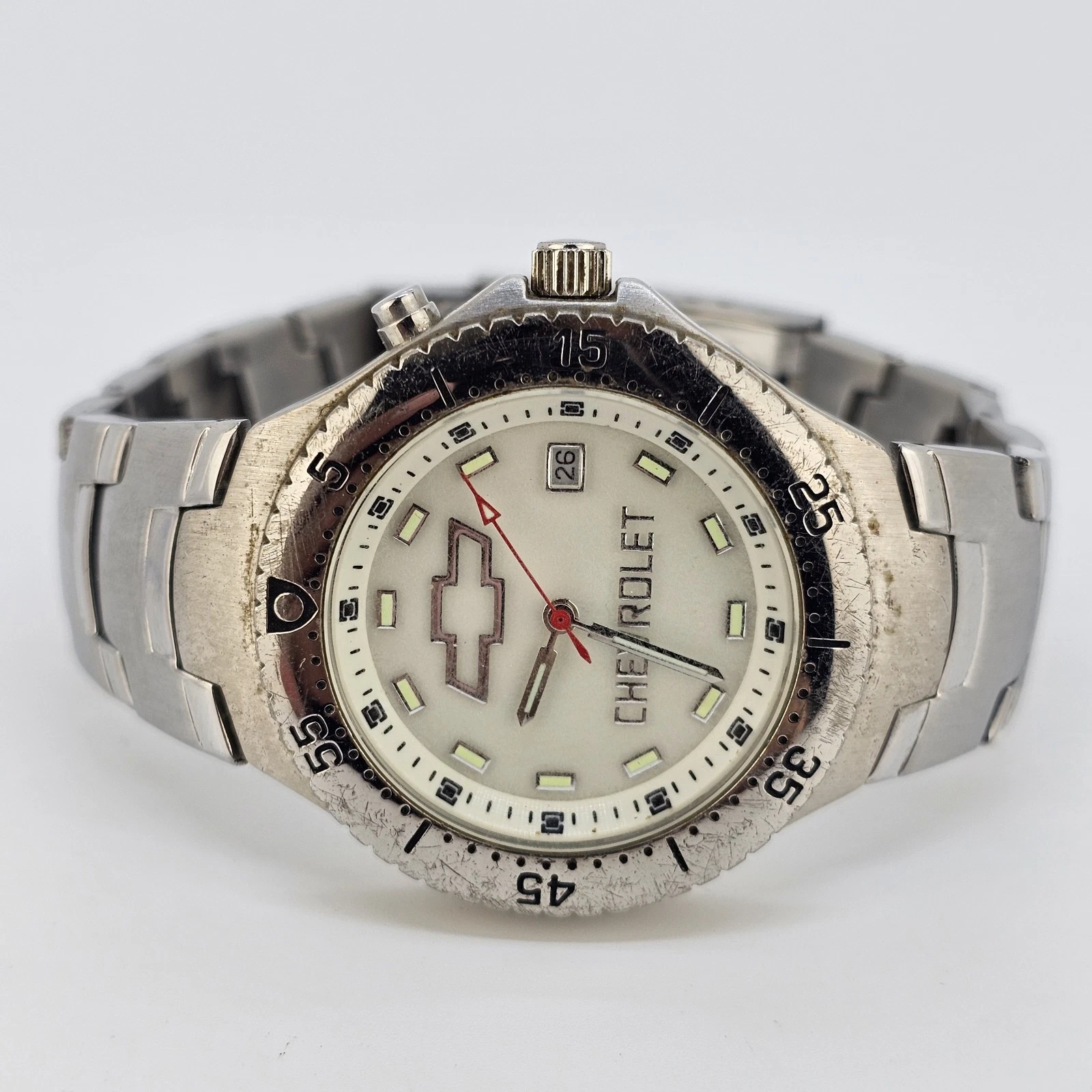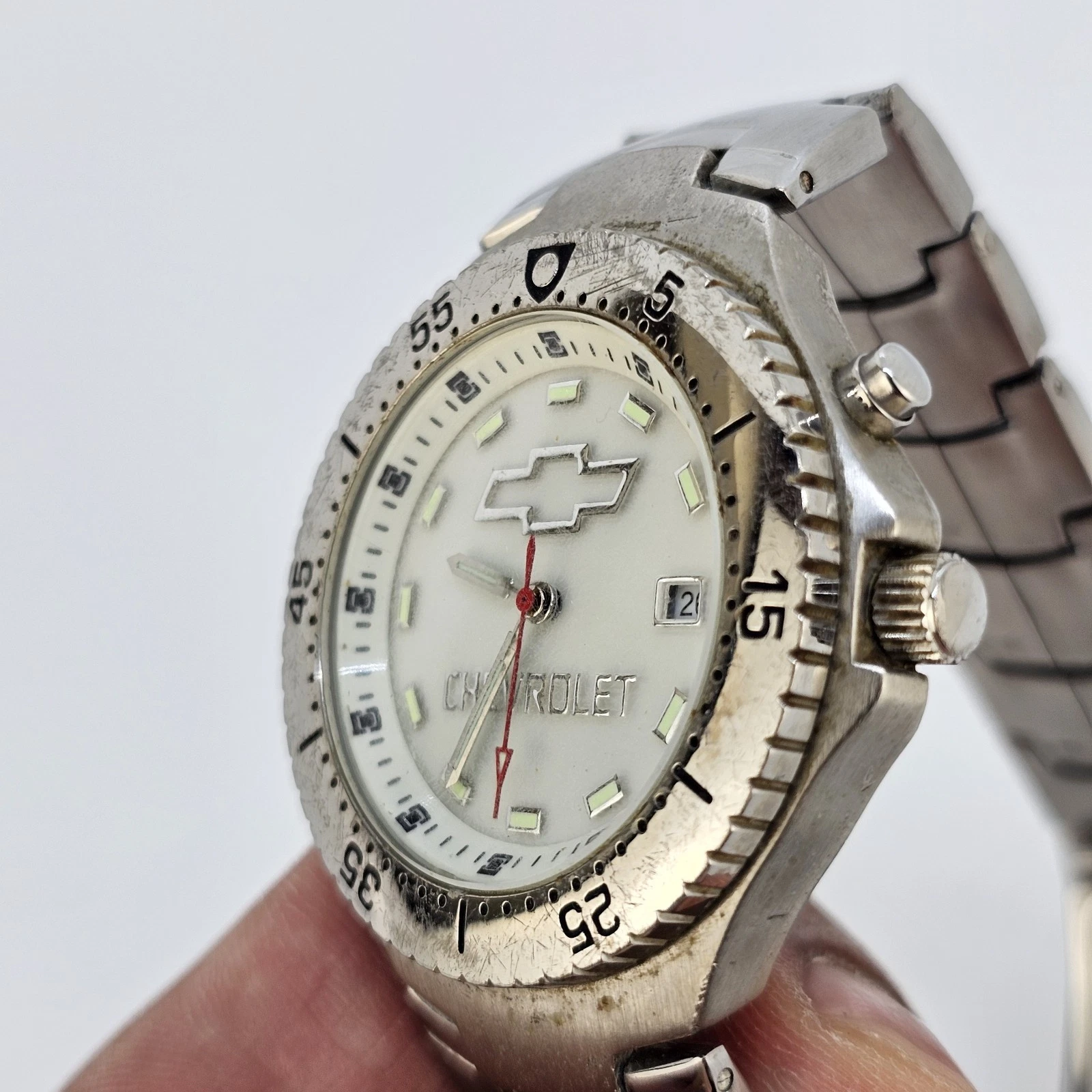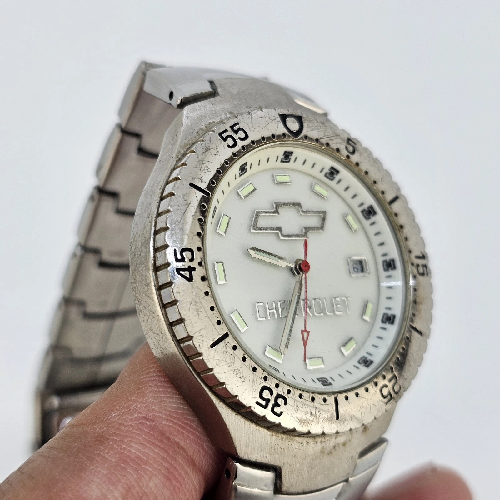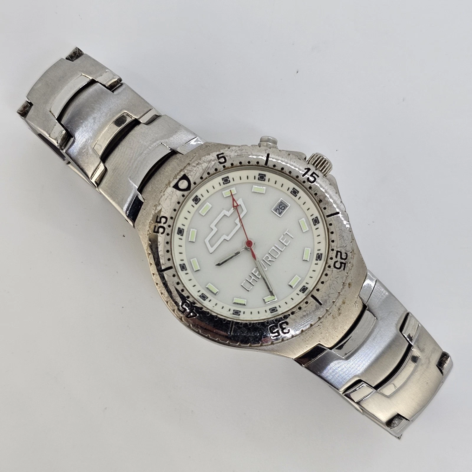 Chevrolet Men's Watch 38MM White Dial Gray Bracelet Band Date 7.75" New Battery