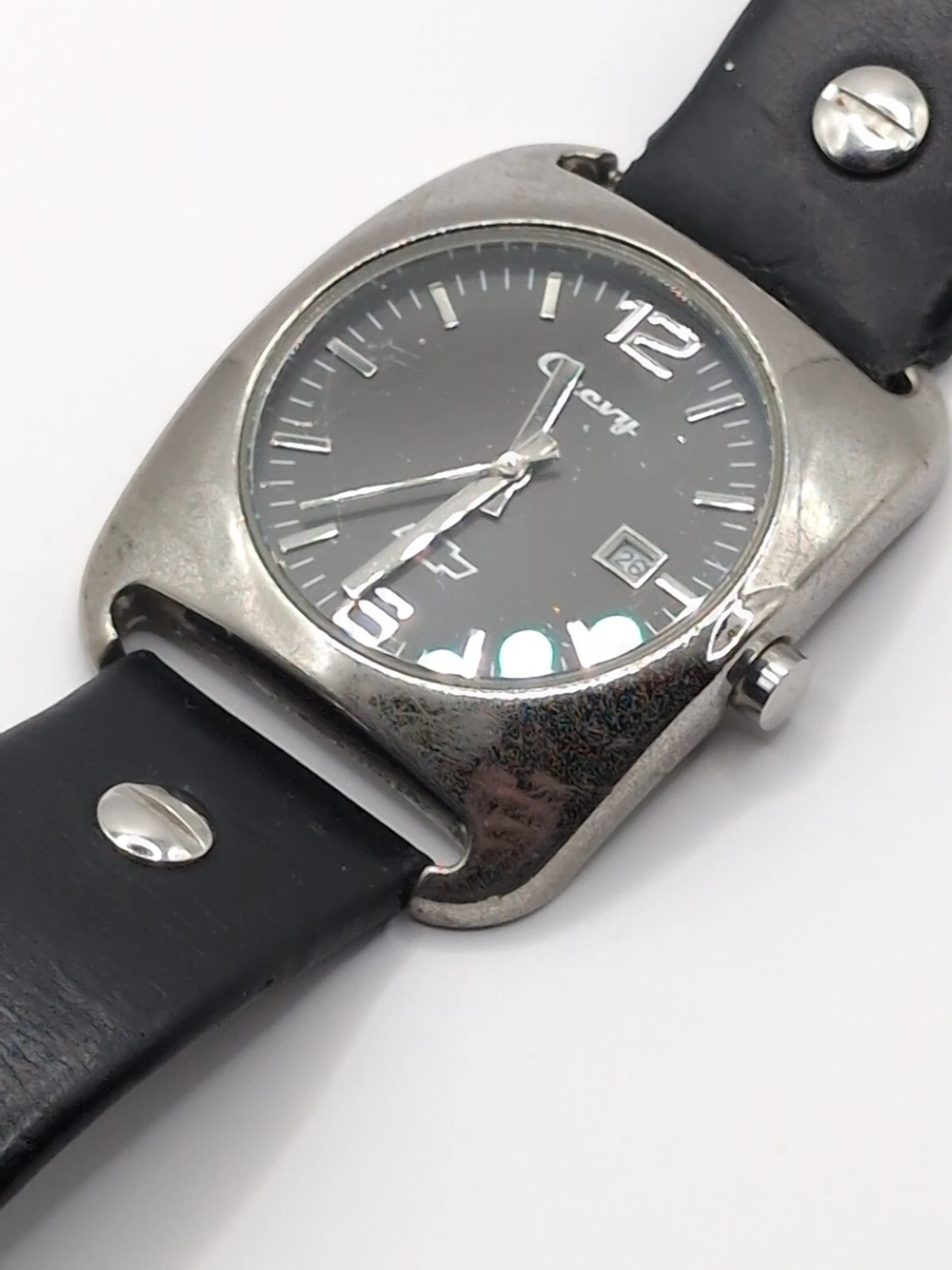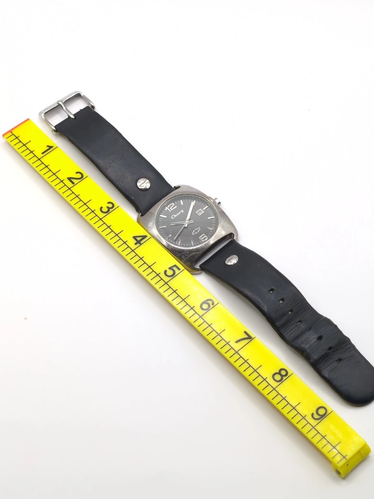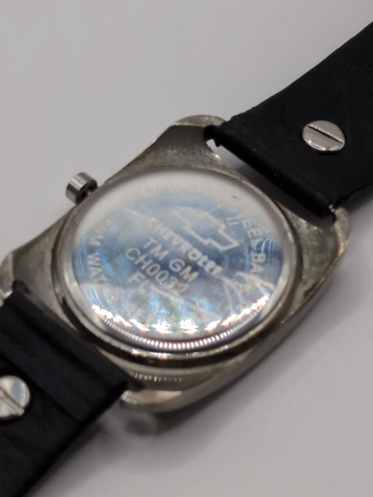 Mens Chevrolet Wrist Watch Silver And Black With Leather Strap New Battery