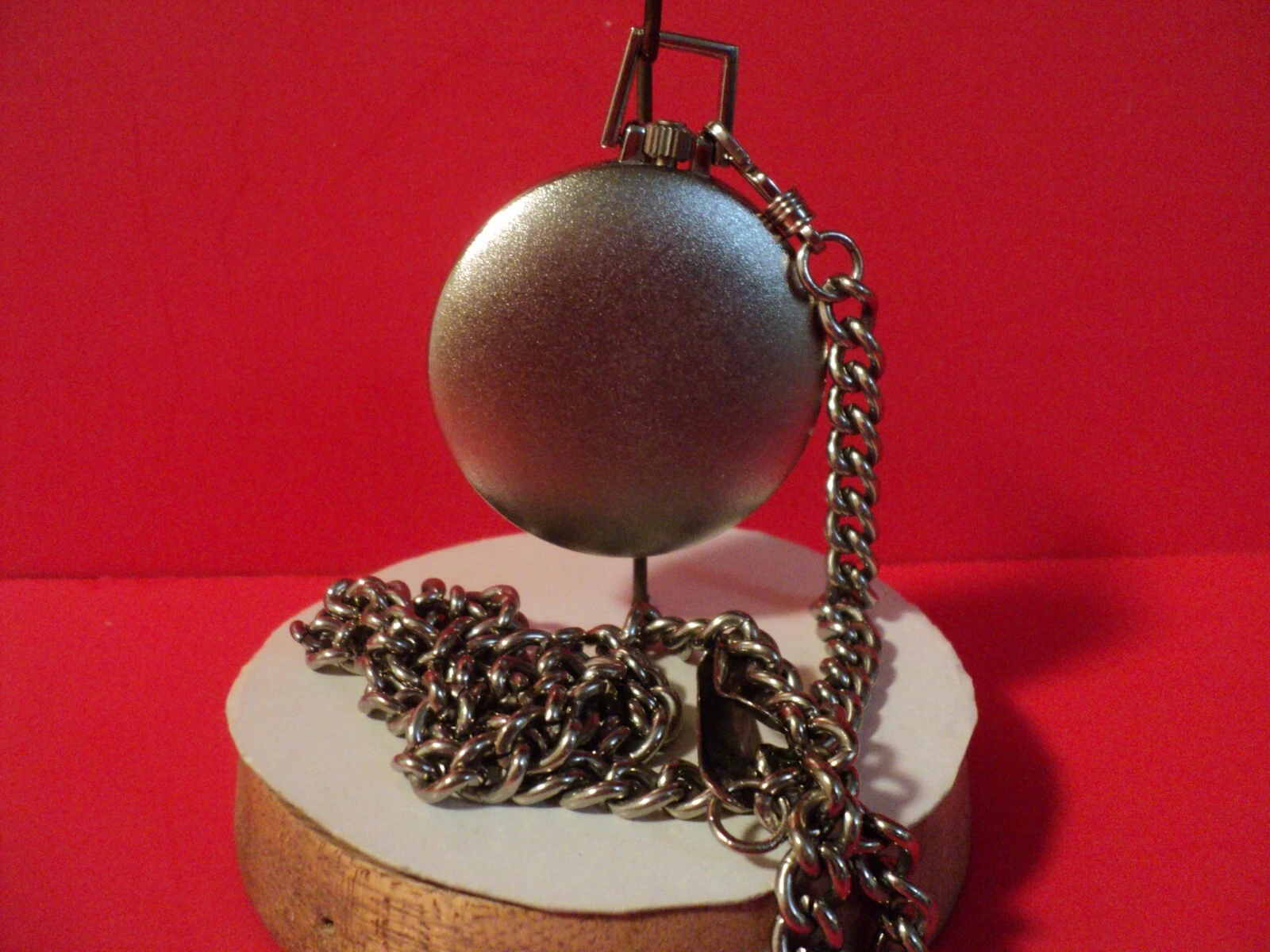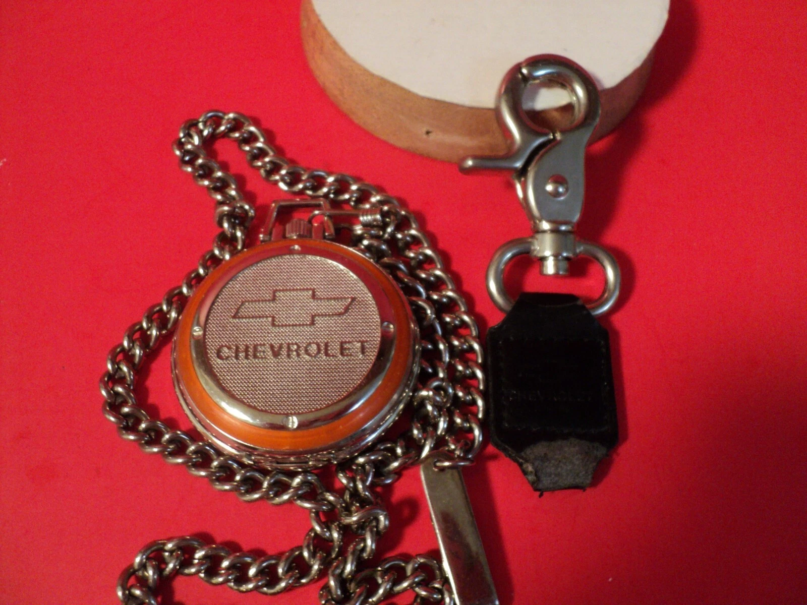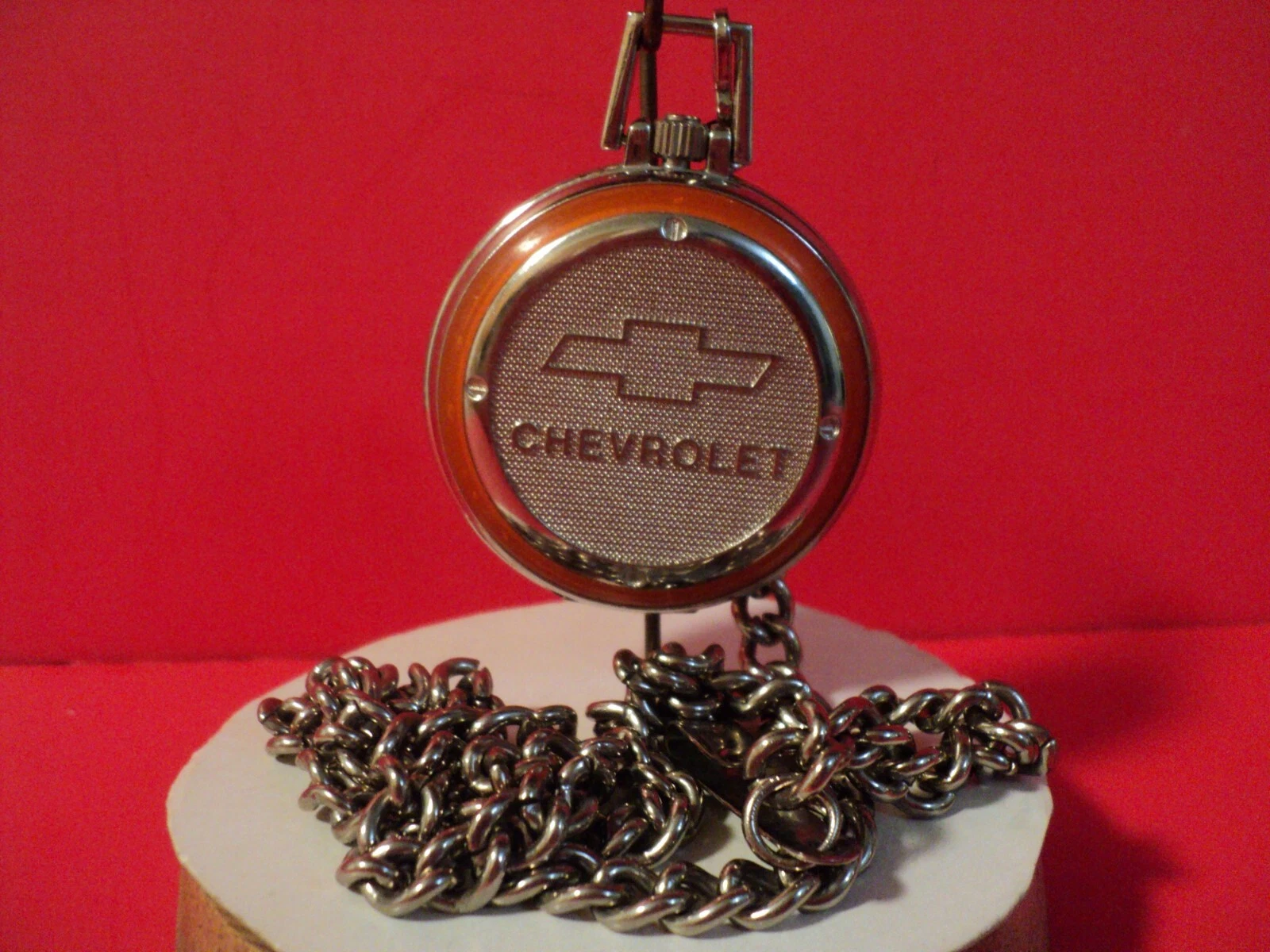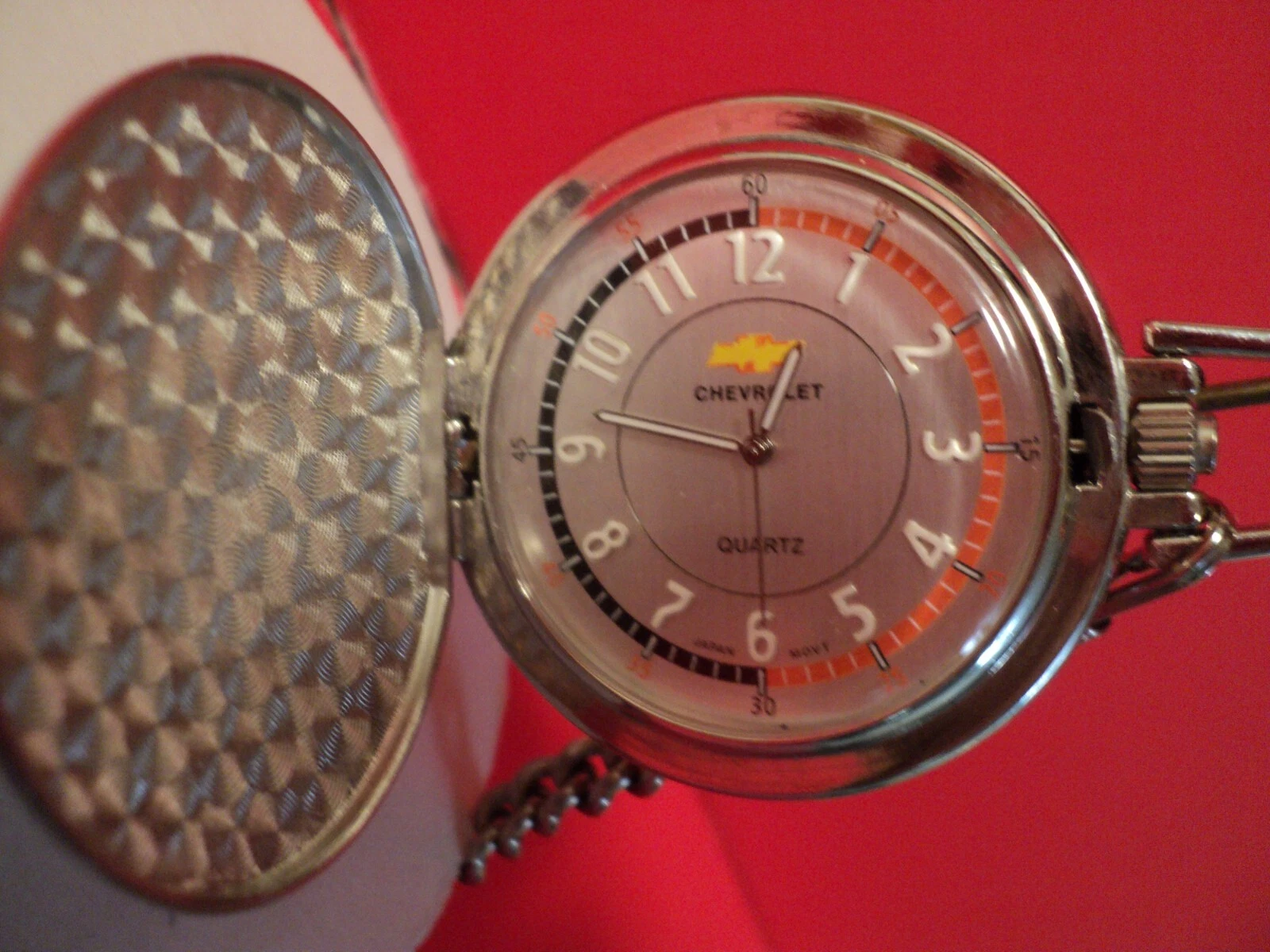 Pocket watch with Chevy w/ bow tie on face. new battery /w heavy duty chain