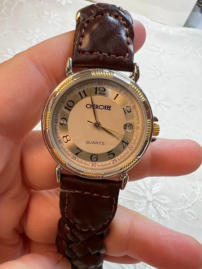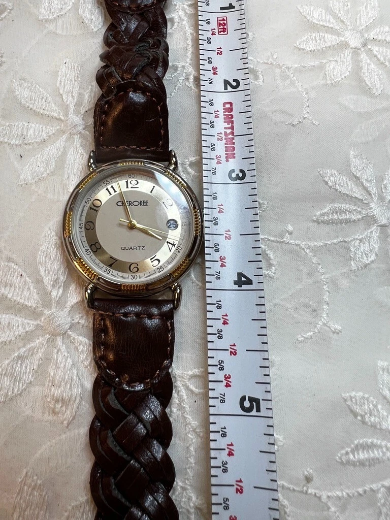 Vintage Cherokee Mens Watch 32 833 Braided Brown Band Creamy White Dial Analog