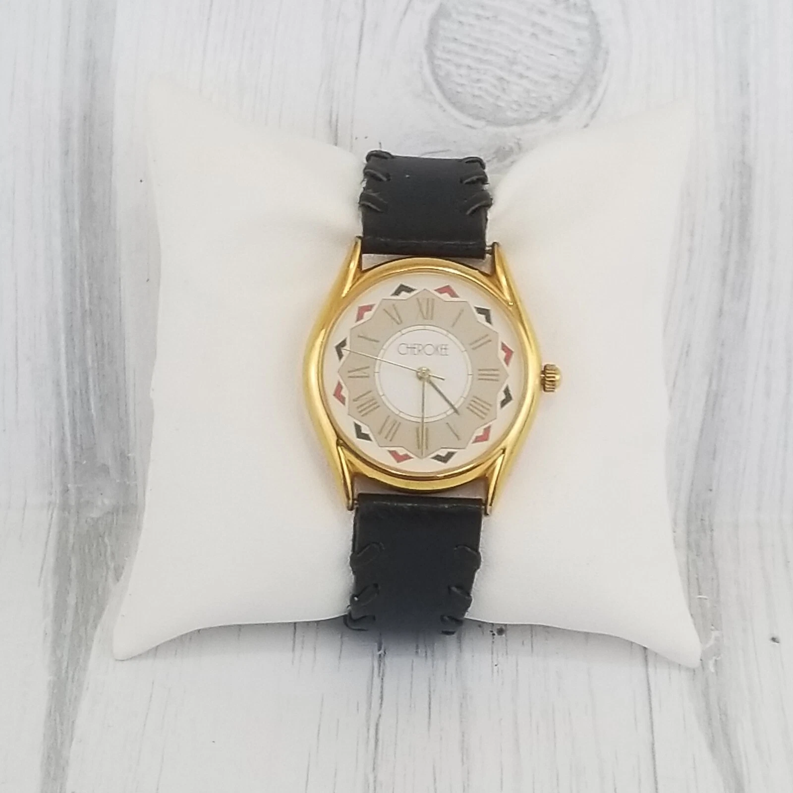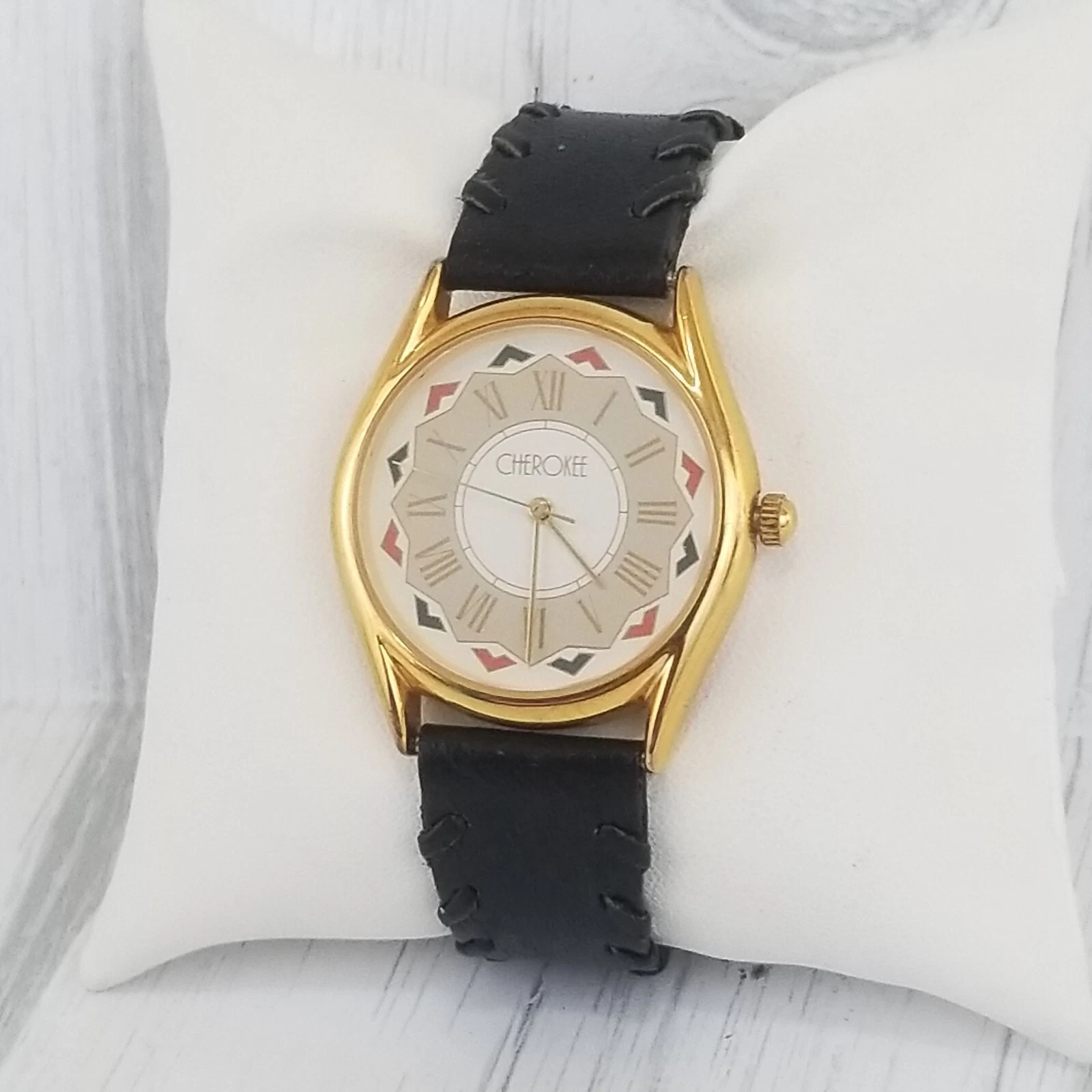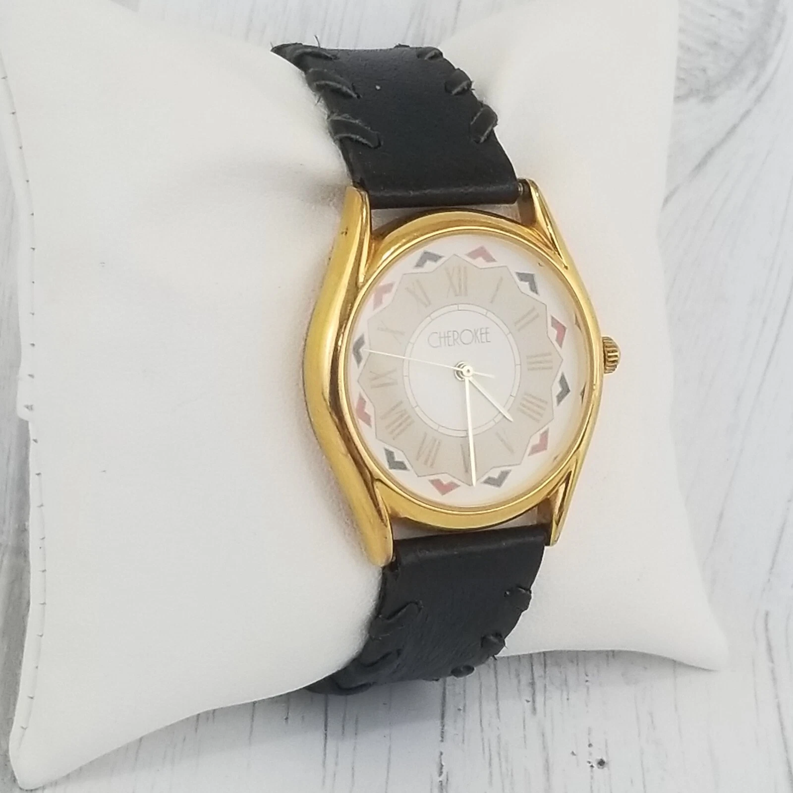 Cherokee Vintage Ladies Wrist Watch Braided Southwestern Black Leather New Batte