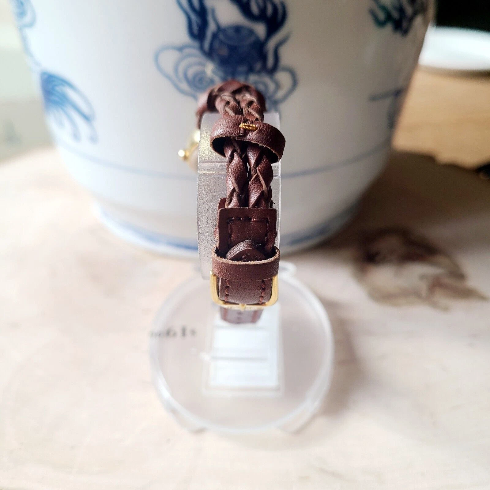 CHEROKEE Vintage Women's Watch Gold Tone Braided Leather Band 26 mm Y2K