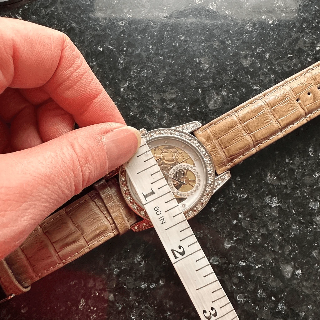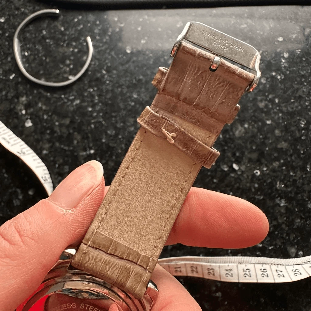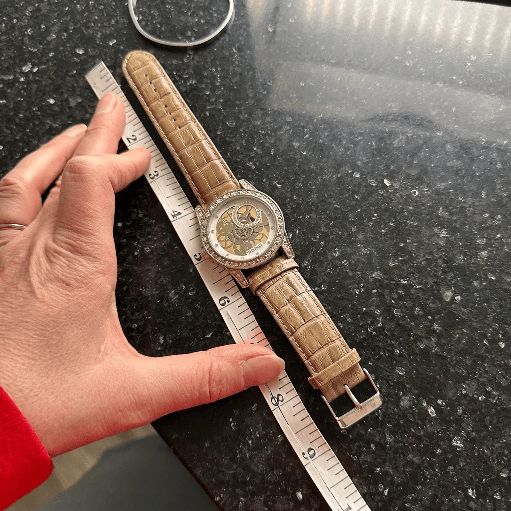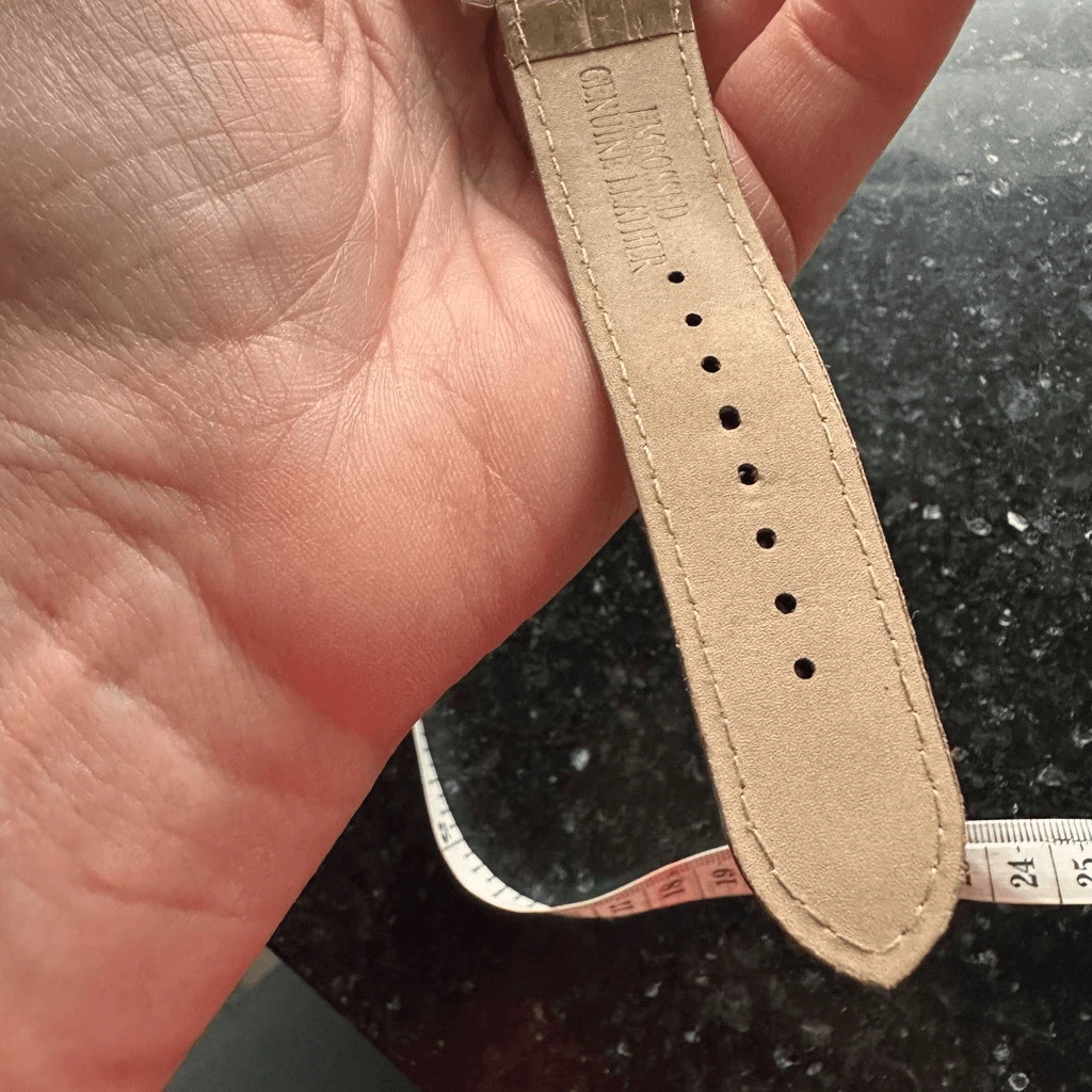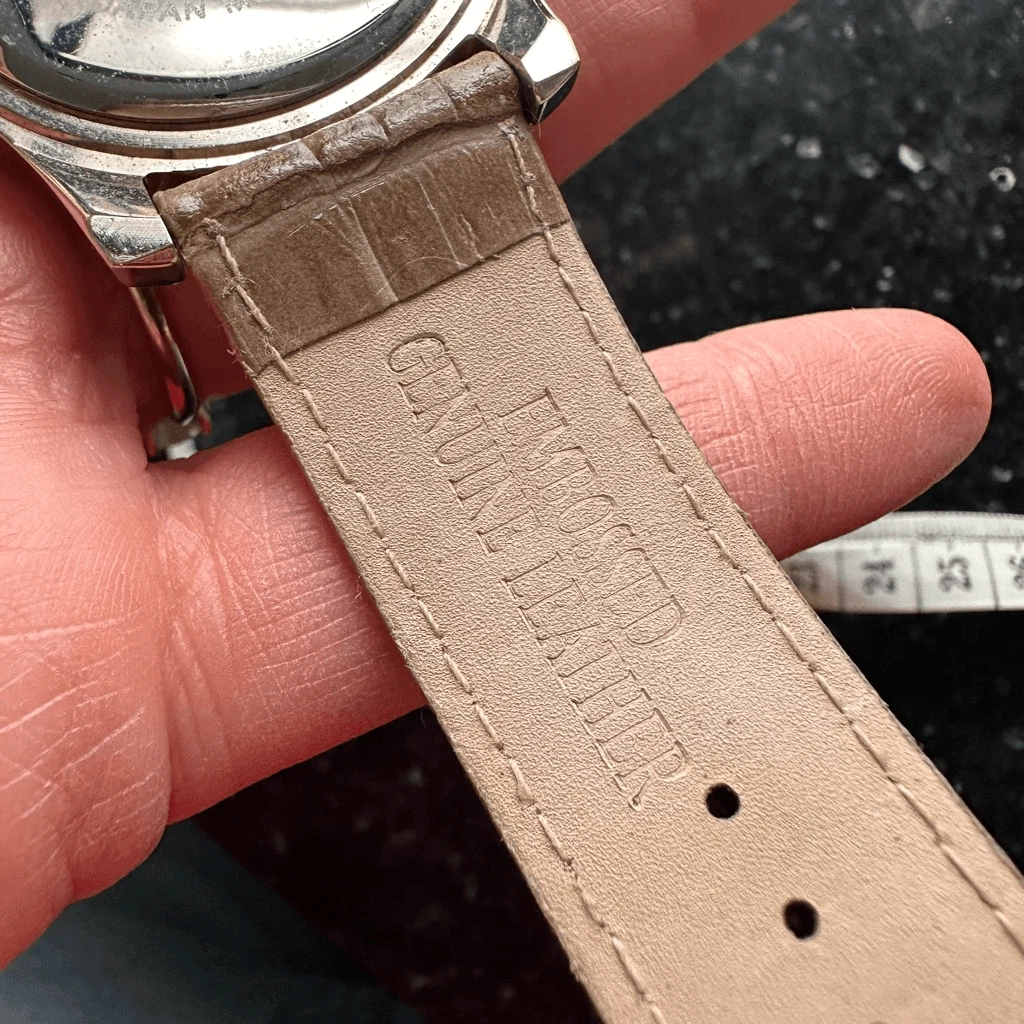 Chico’s Large Face Embossed Genuine Leather Band Rhinestone Watch Silvertone