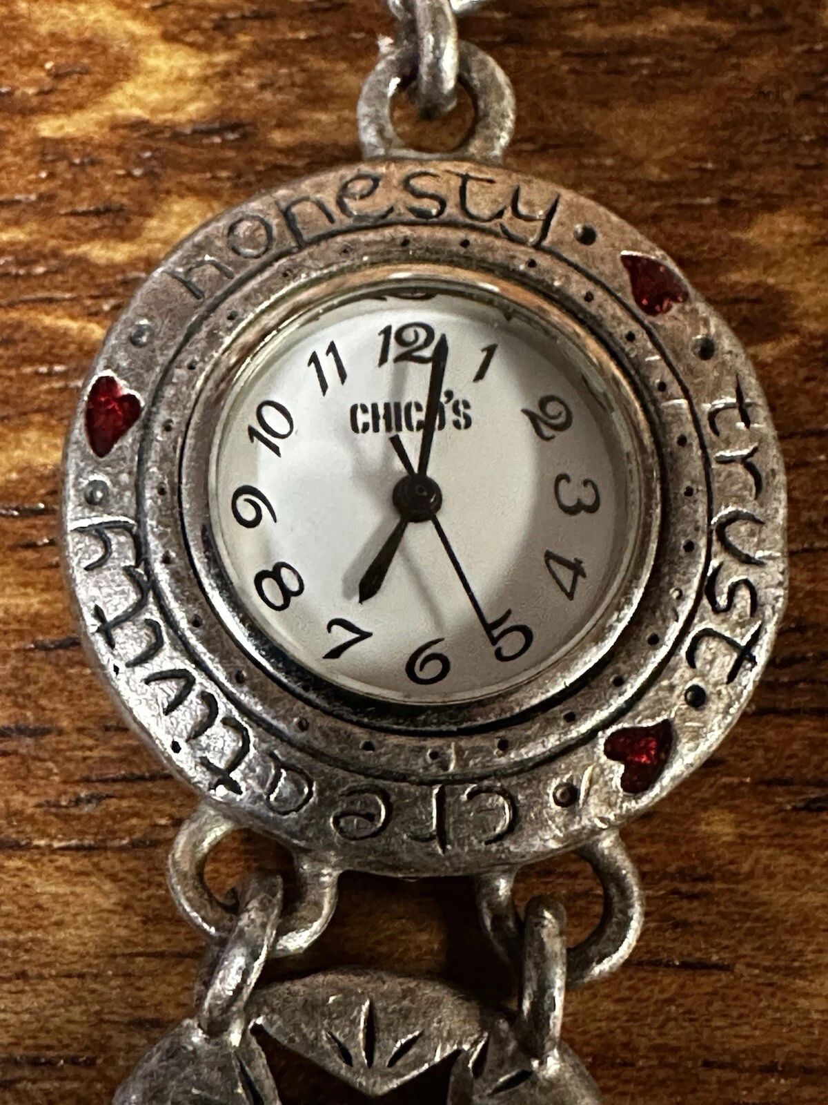 Very Cool Ladies Chico's Vintage Charm Silver Tone Watch with a Toggle Clasp
