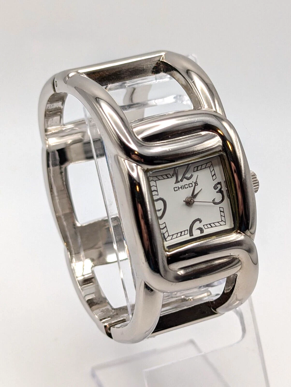 Chicos Women’s Bangle / Bracelet Watch Silver Tone Metal New Battery