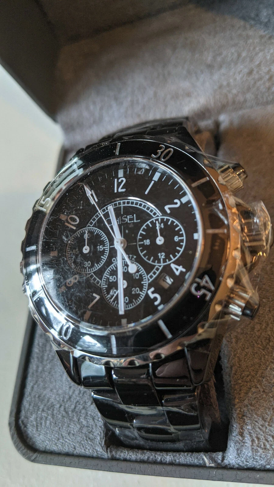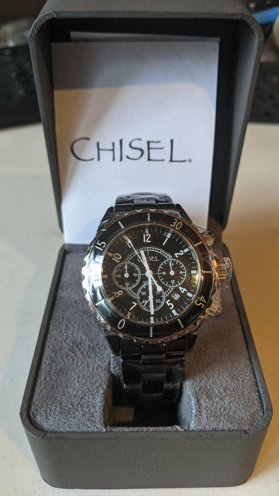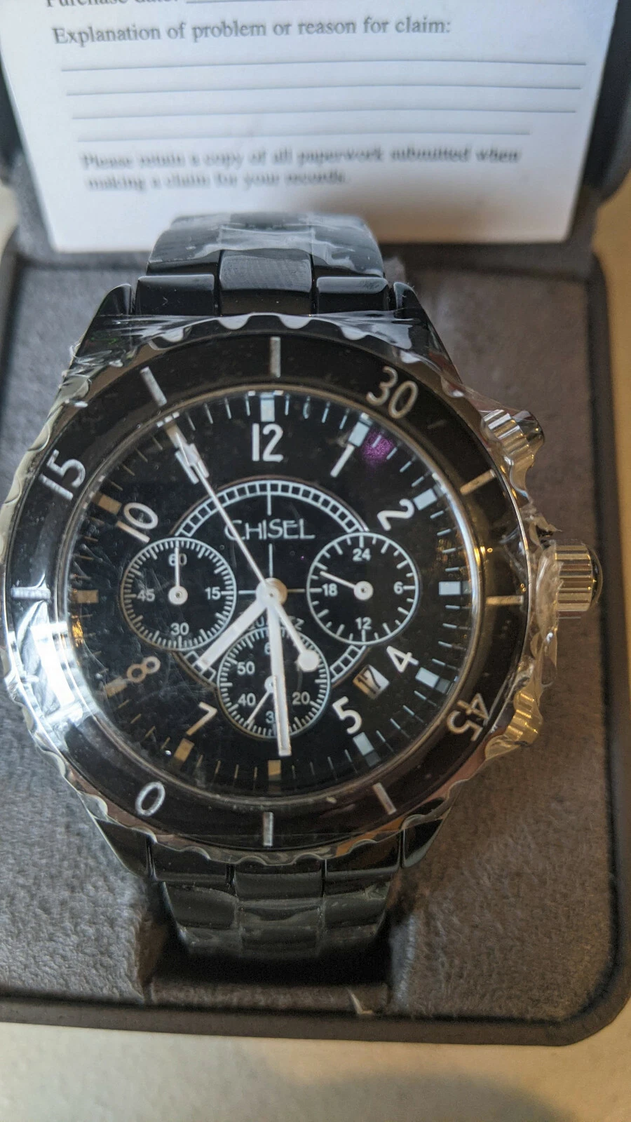 Chisel Black Dial Chronograph with Date Ceramic Mens Watch TPW5