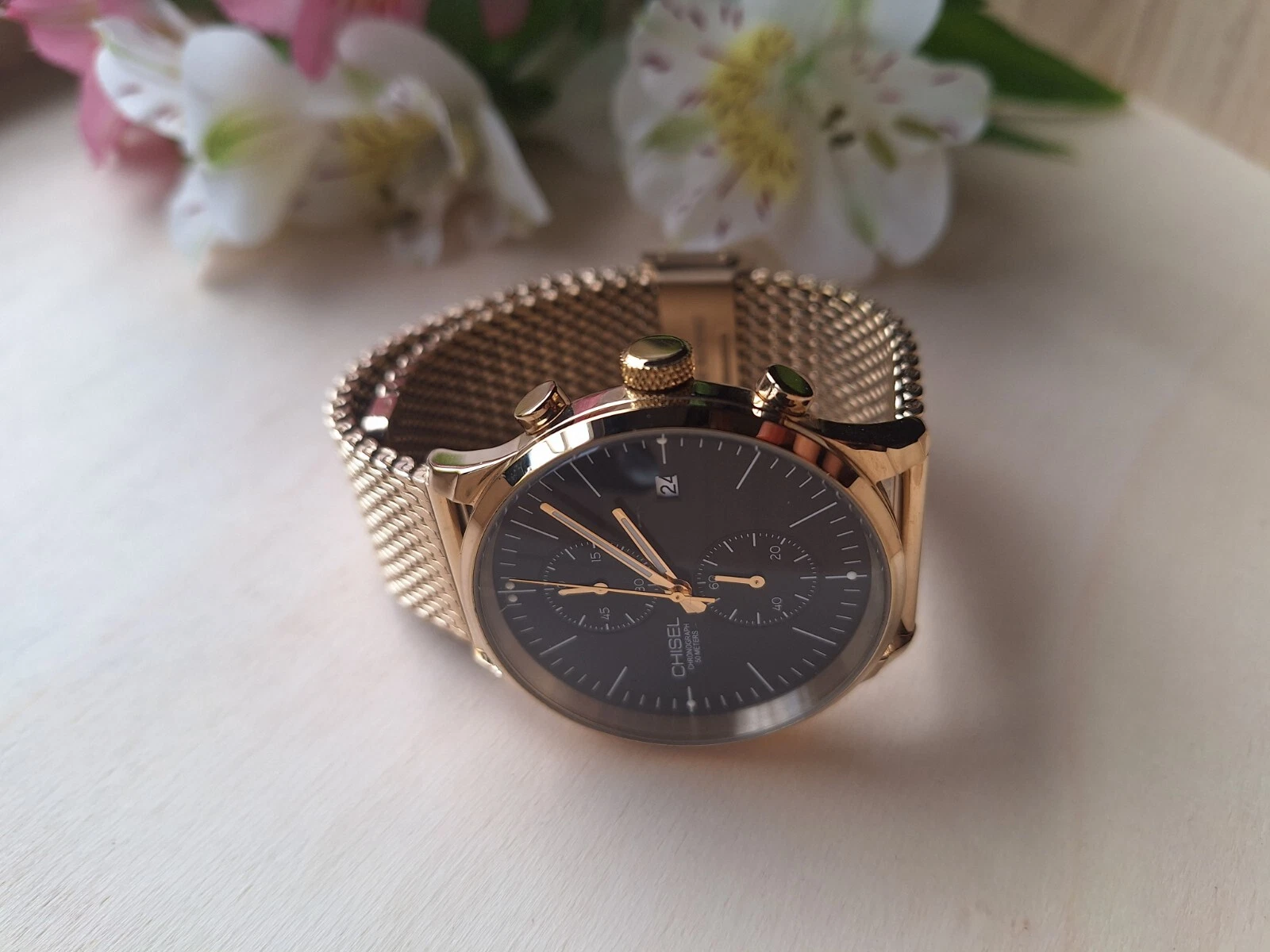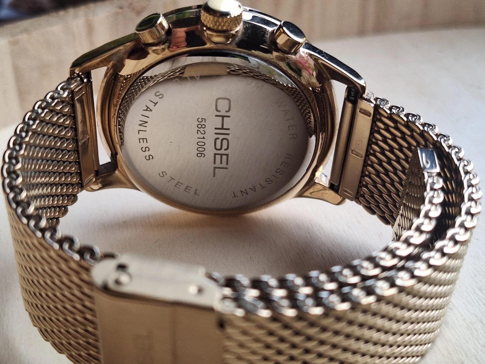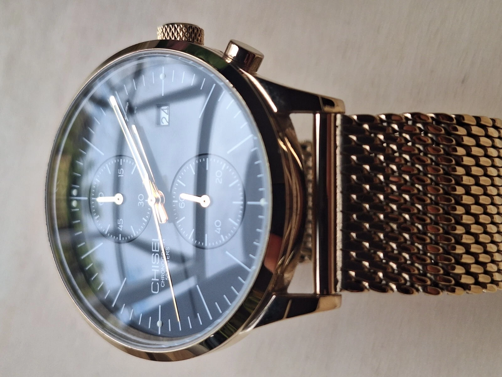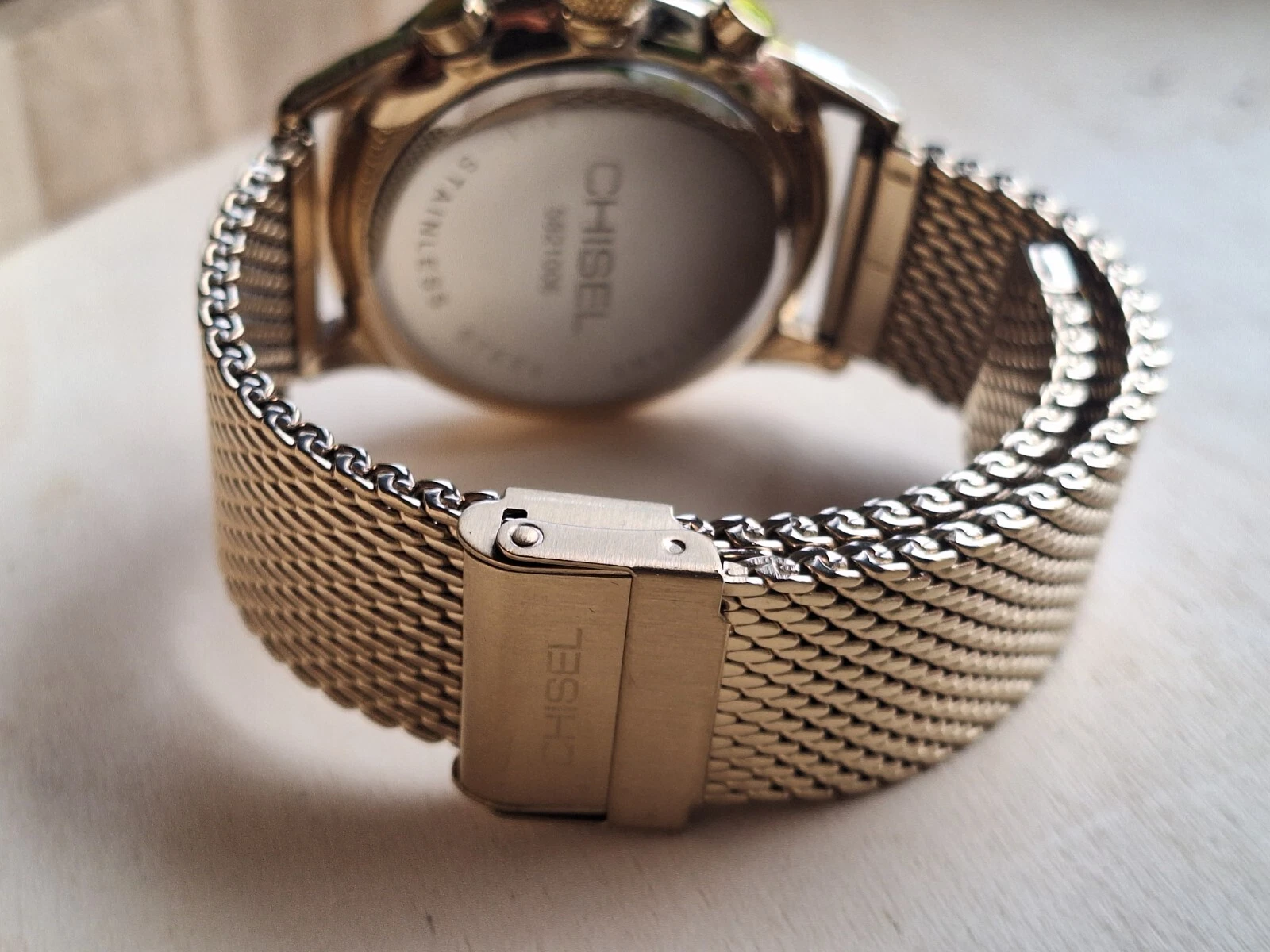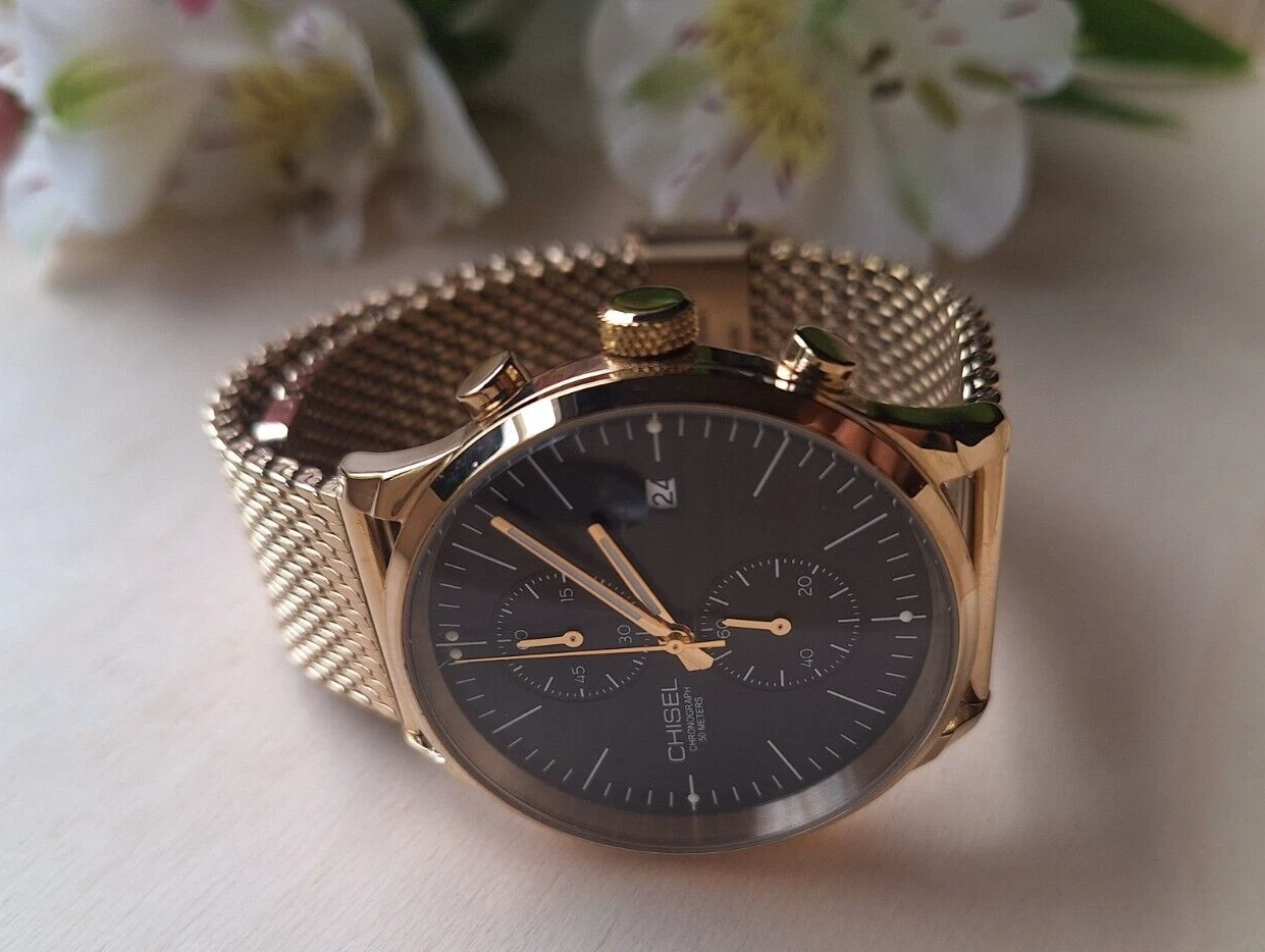 CHISEL Chronograph Gold Tone Mesh Band Unisex Watch (Exc Cond)
