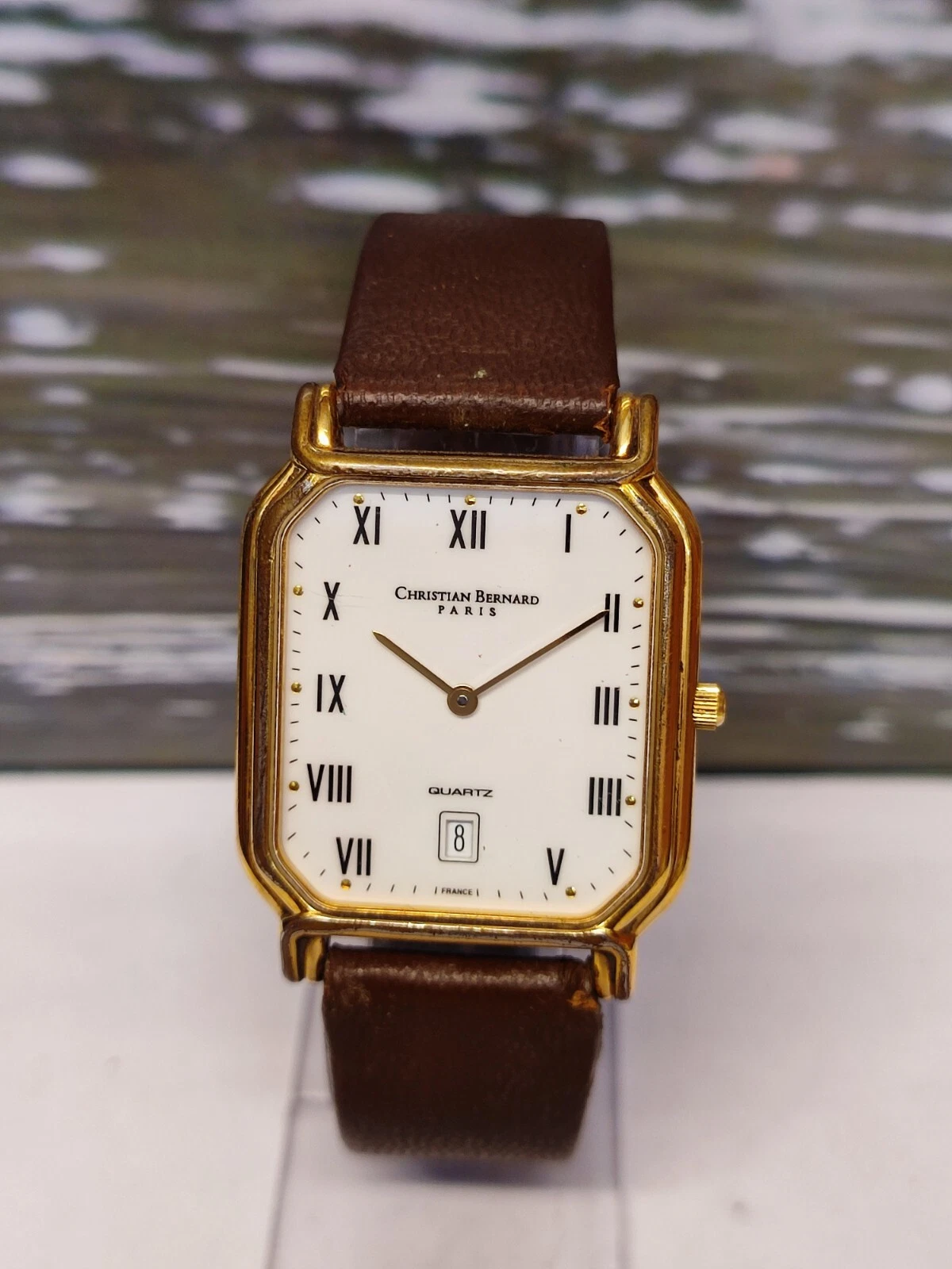 CHRISTIAN BERNARD PARIS QUARTZ WHITE DIAL 15520 FRANCE MEN'S FULL WORKING VTG.