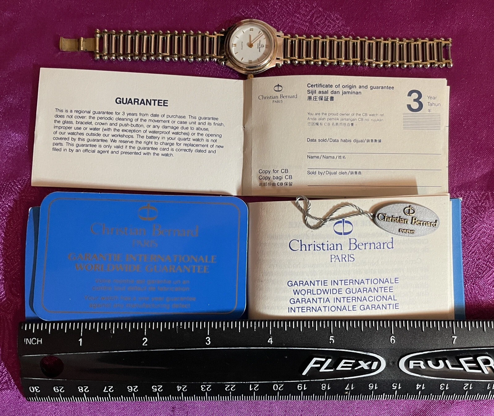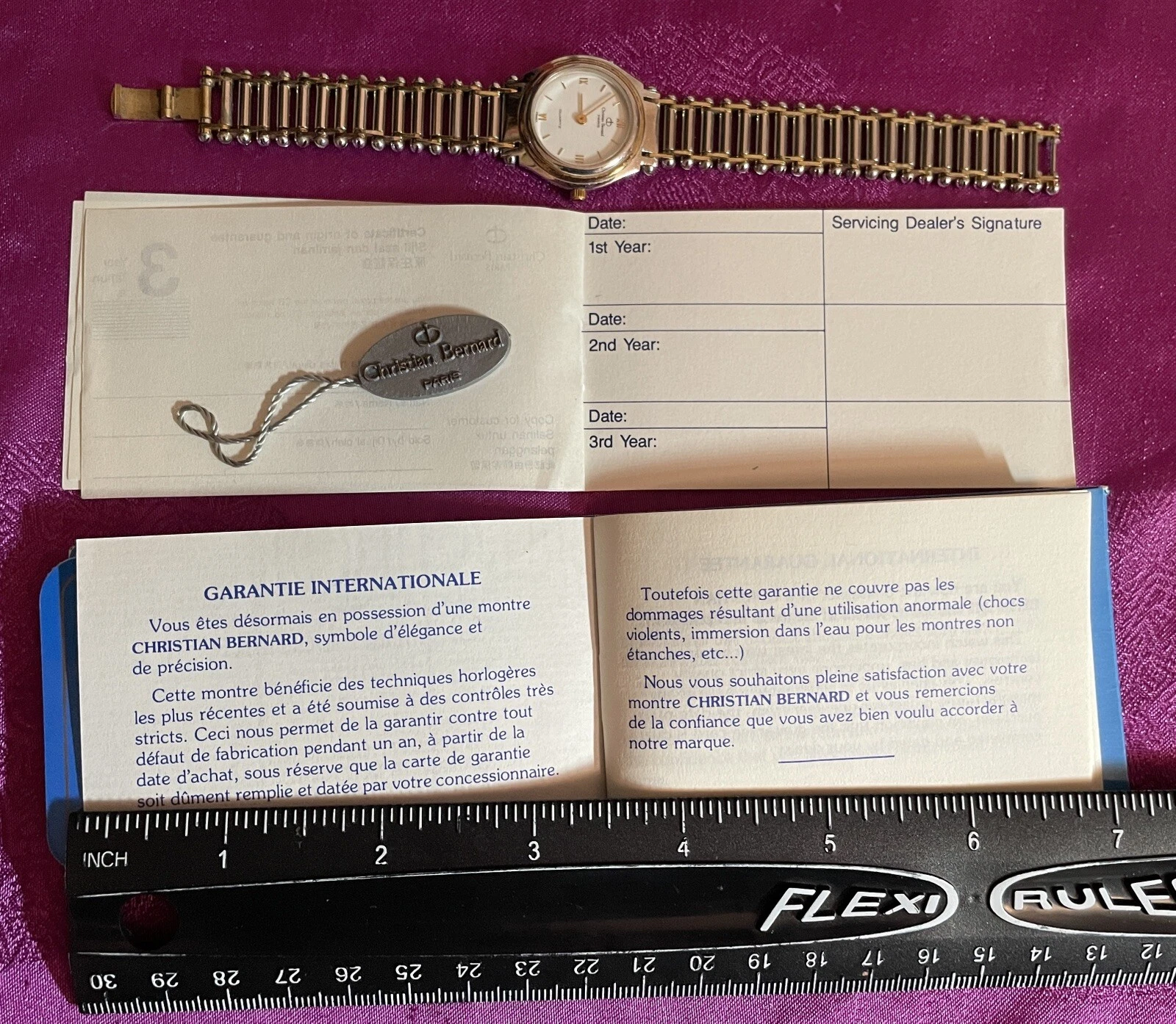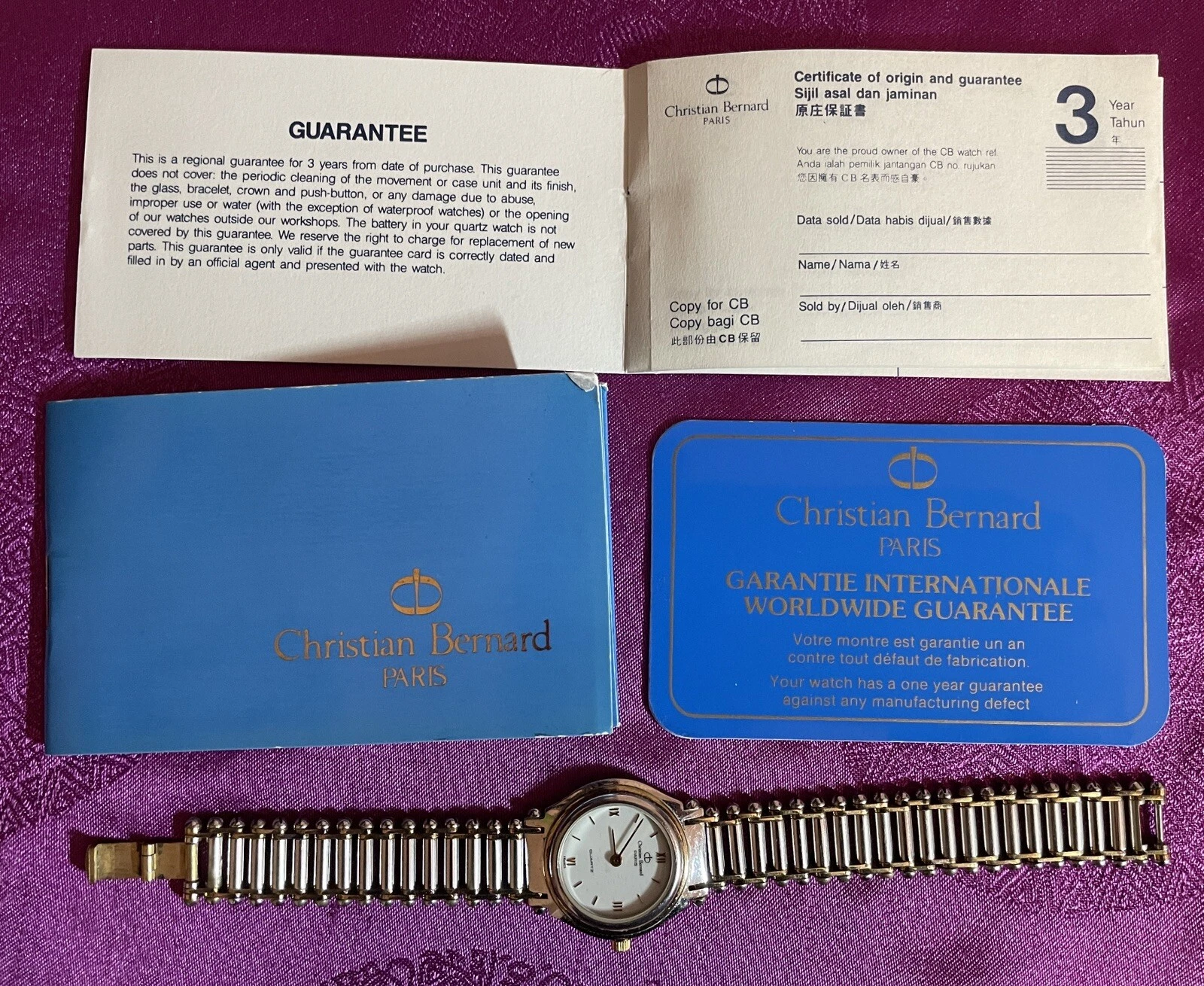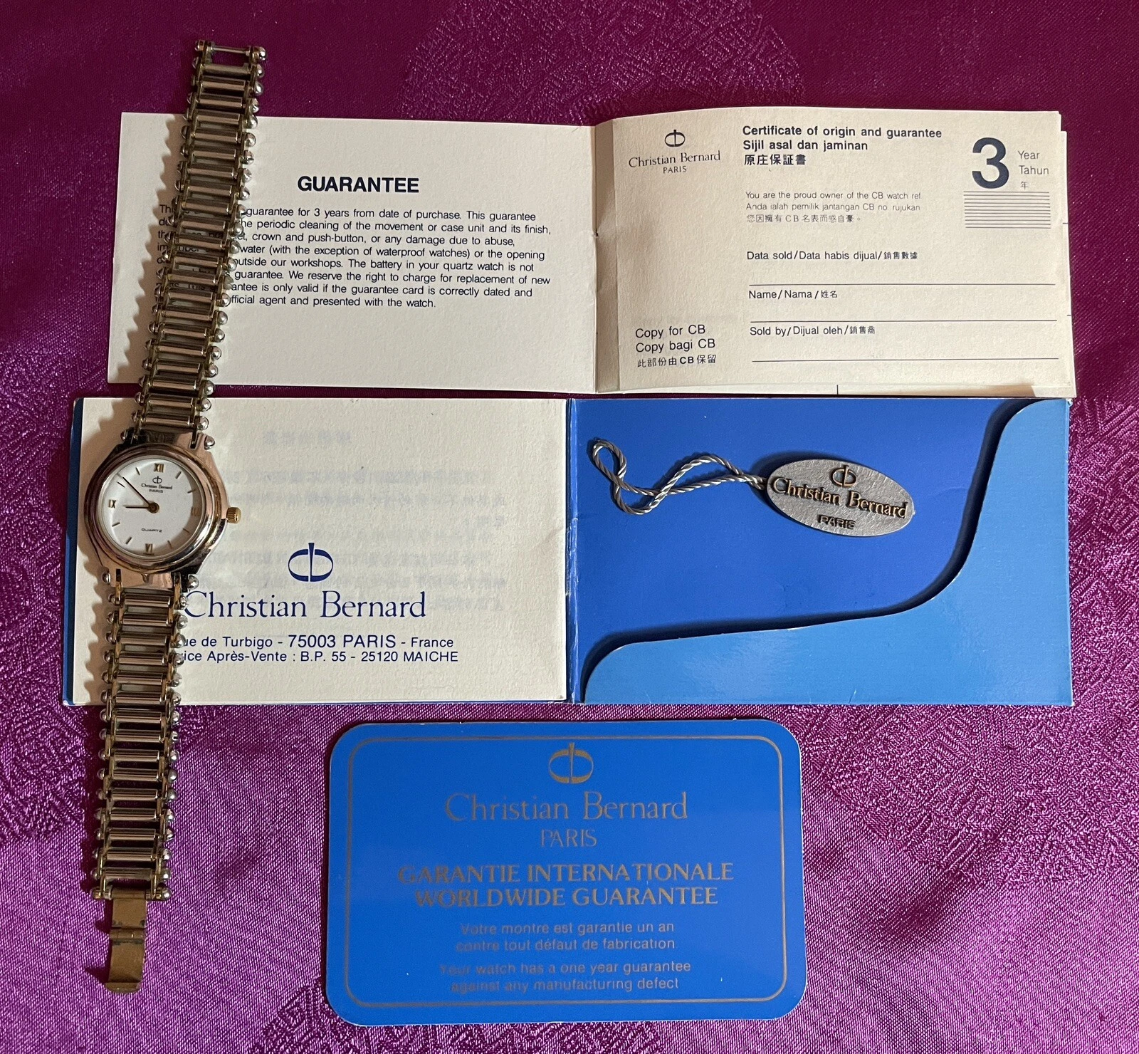 CHRISTIAN BERNARD WRISTWATCH & POUCH & LINKS / BOOKLET & Hang TAG Runs