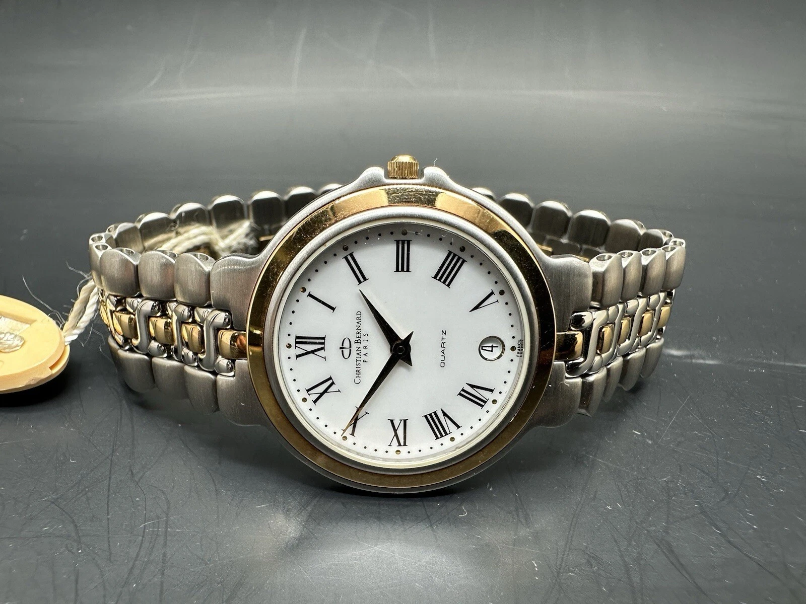NEW OLD STOCK MIDSIZE SS/GOLD TONE CHRISTIAN BERNARD PARIS WRISTWATCH.