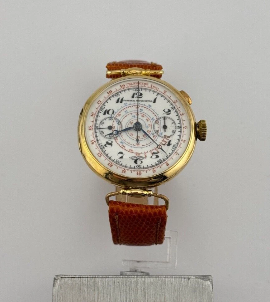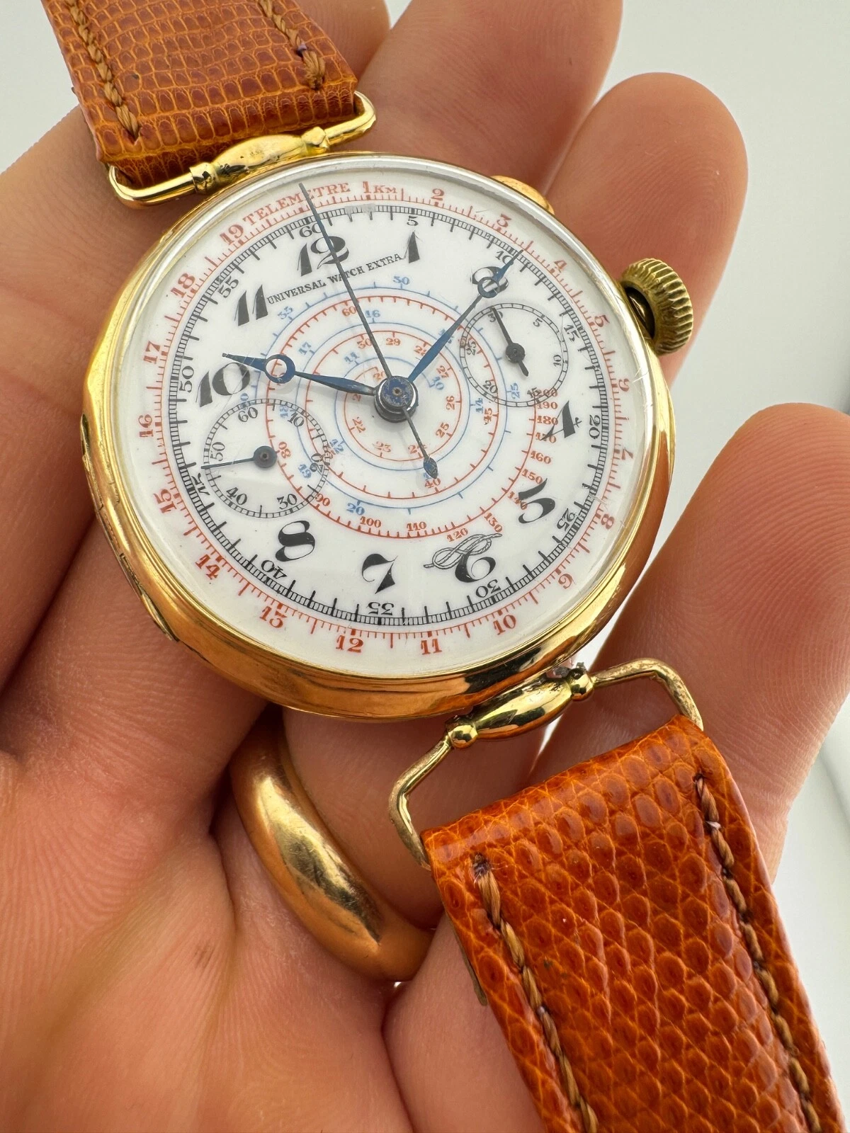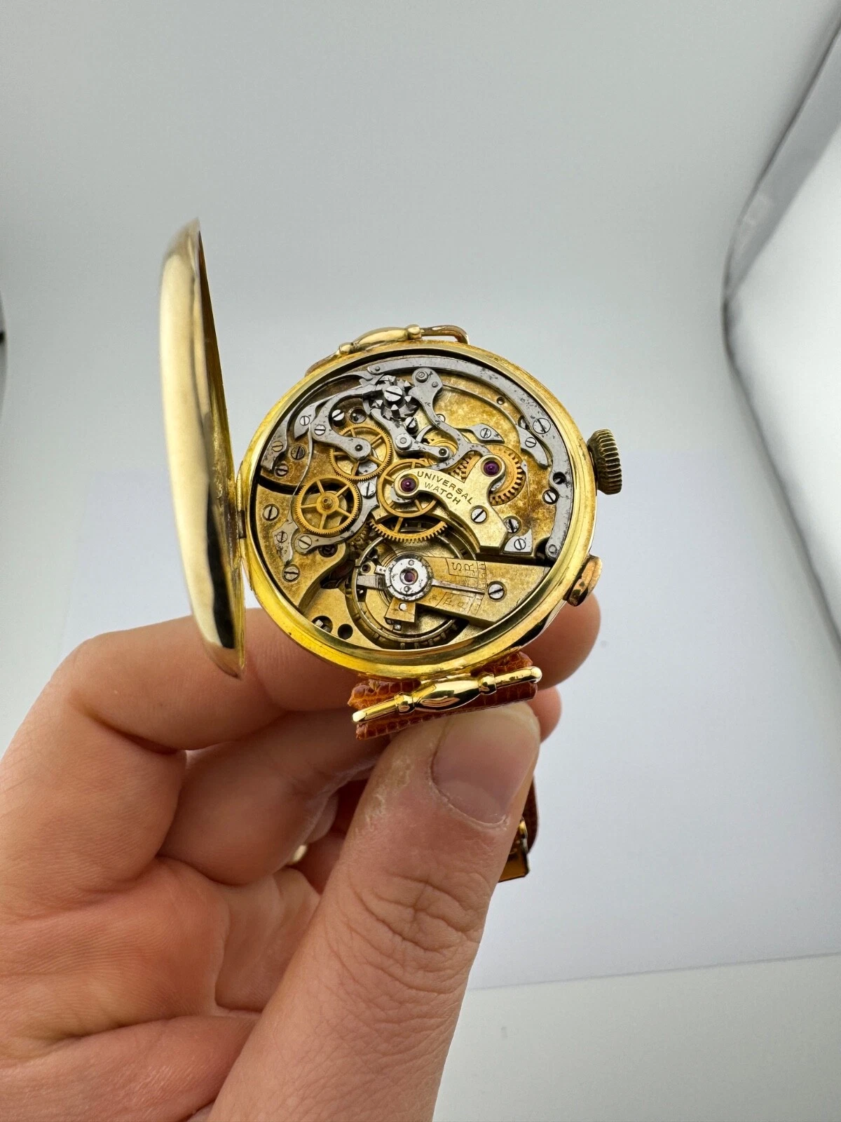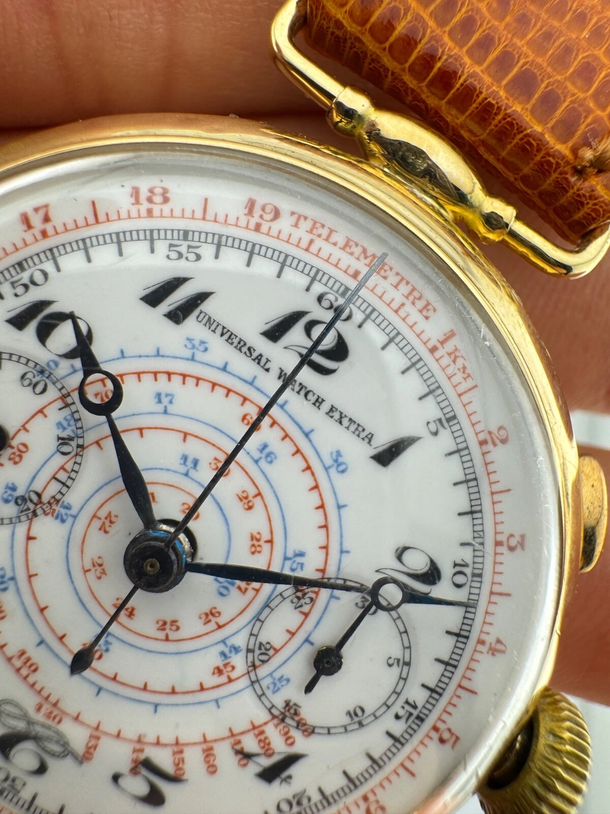 Universal Watch Extra Chronograph Monopuscher Yellow Gold Porcelain Dial Sav