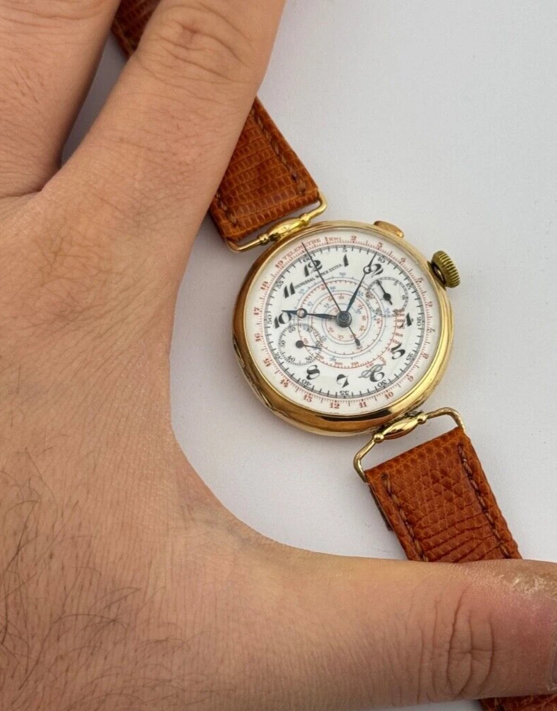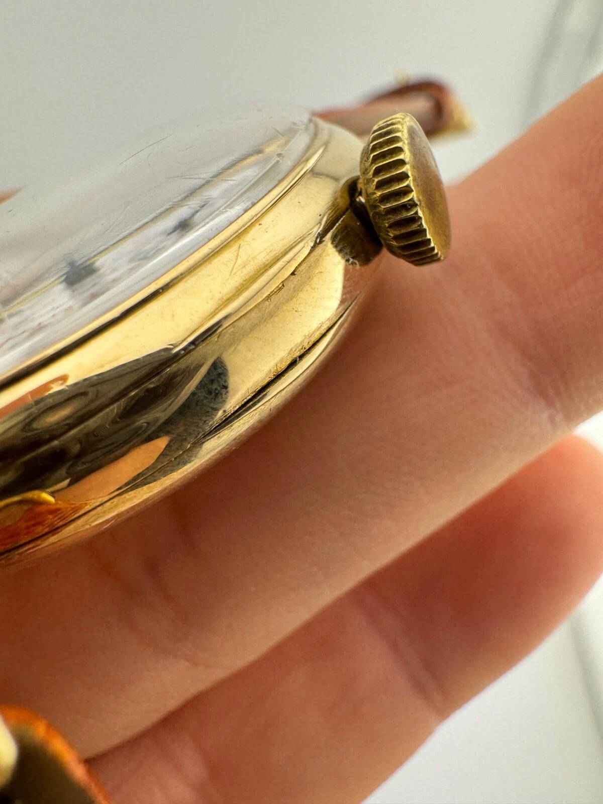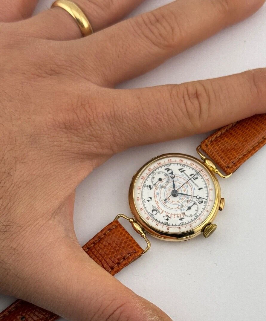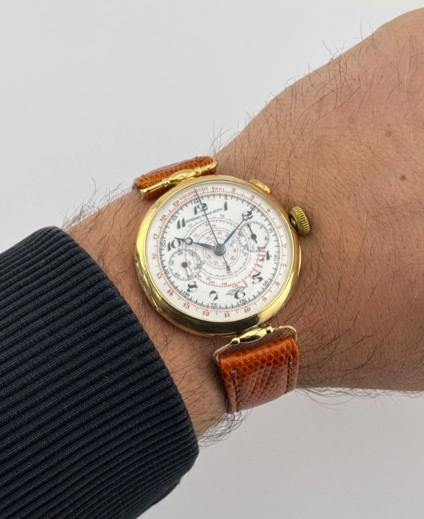 Universal Watch Extra Chronograph Monopuscher Yellow Gold Porcelain Dial Sav
