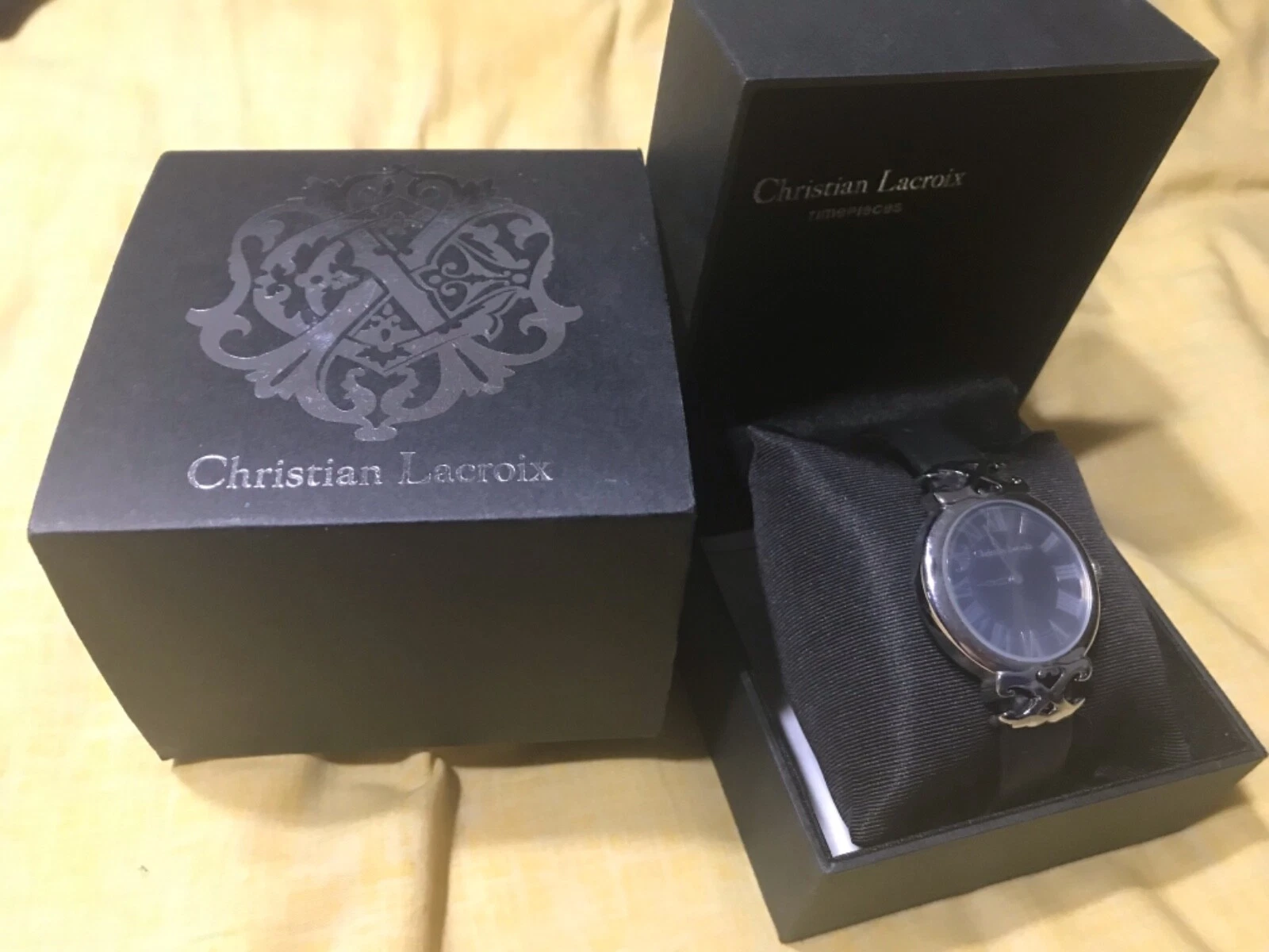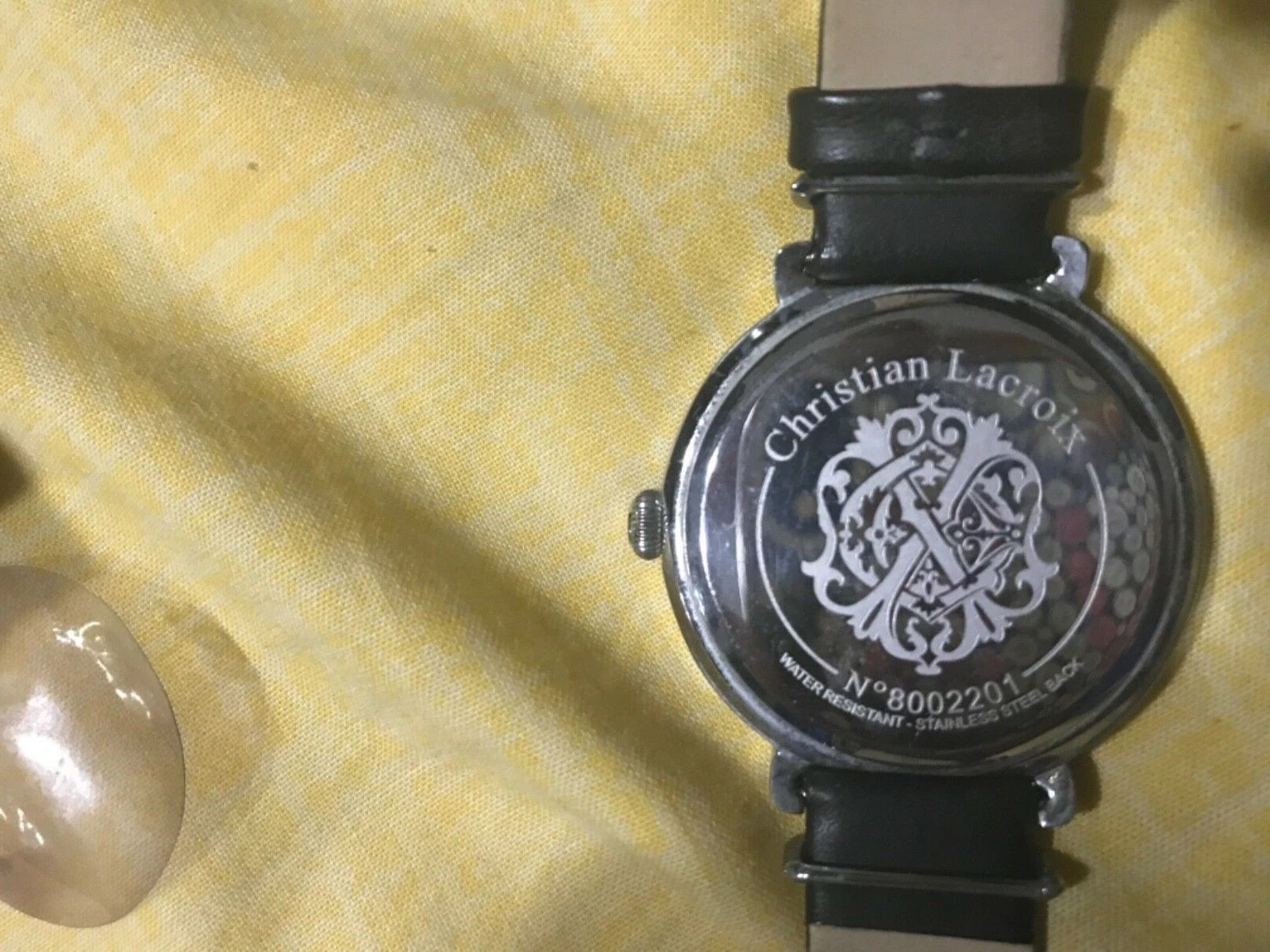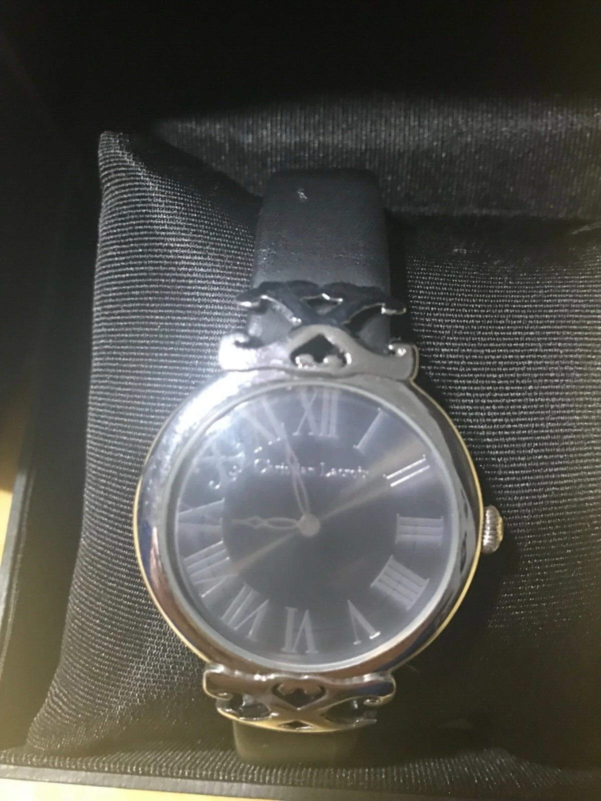 Christian Lacroix Women's 8002201 Black/Gunmetal Genuine Leather Watch Brand New