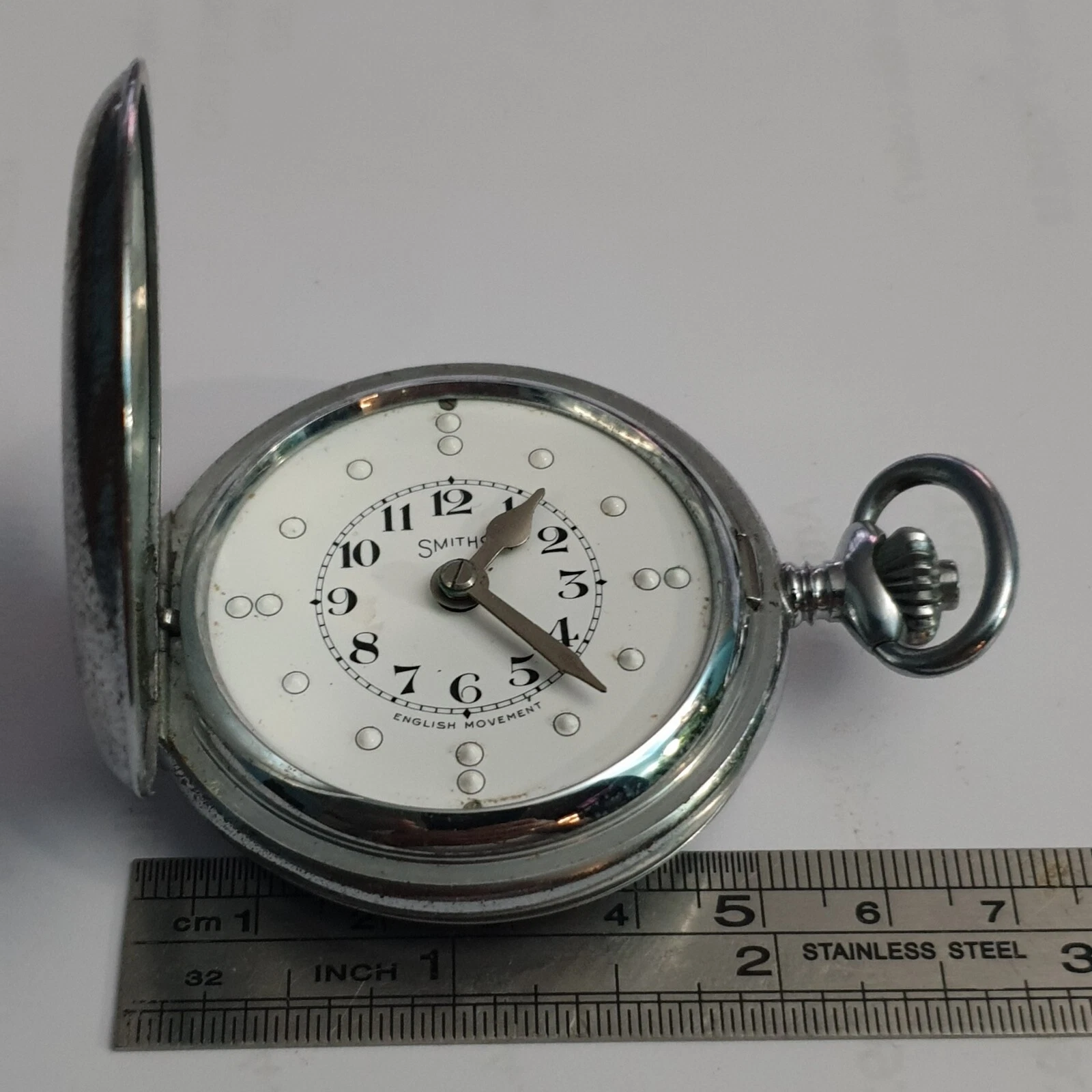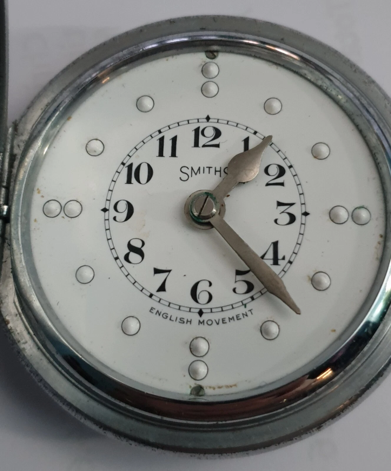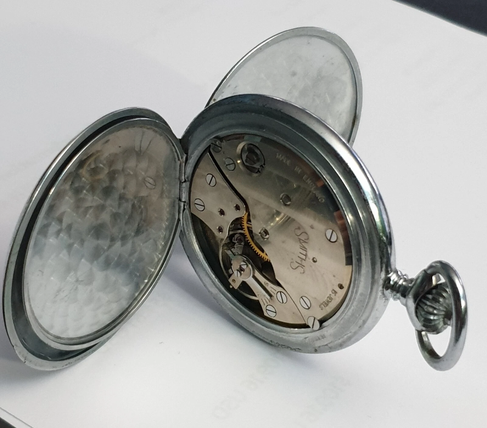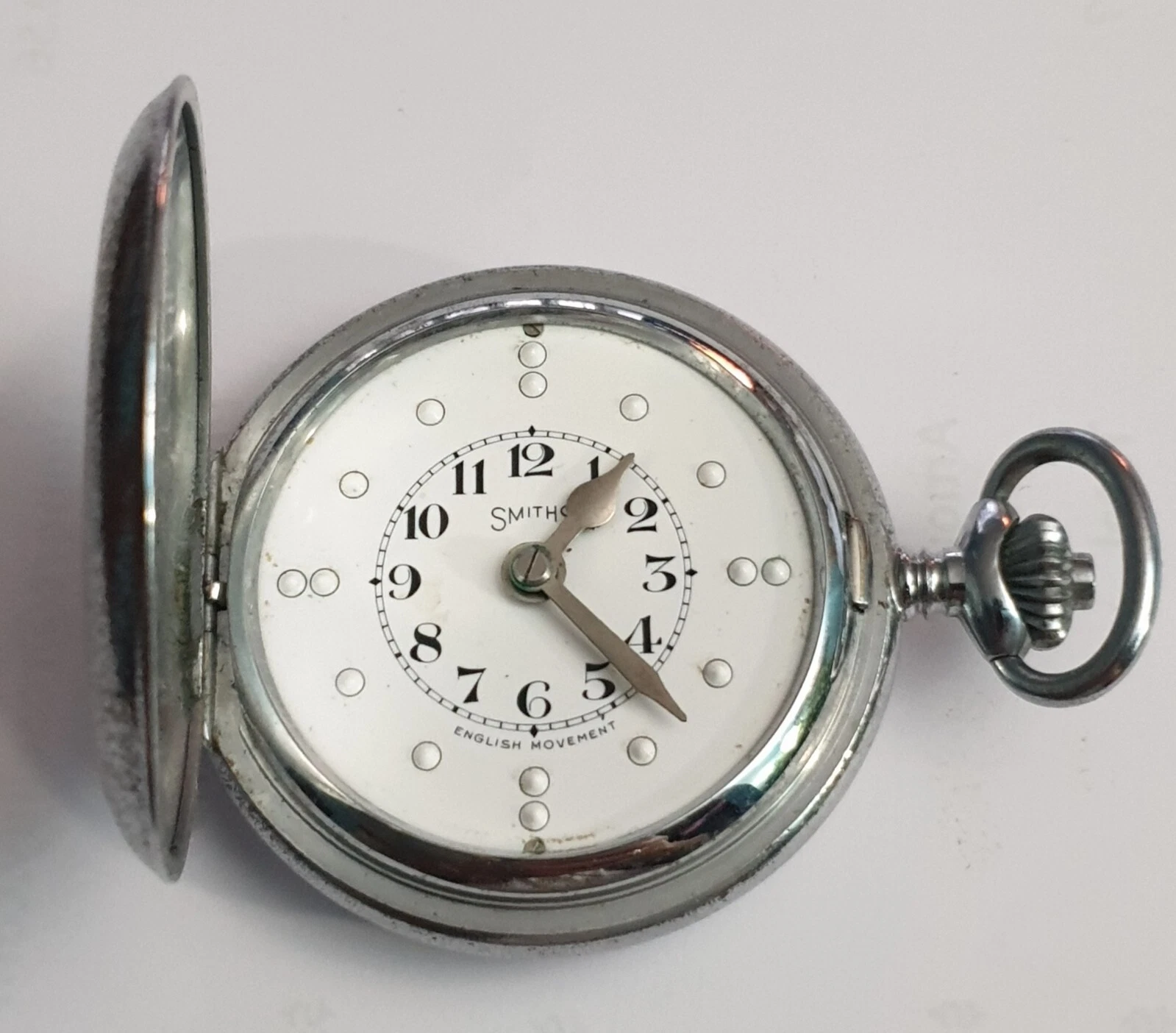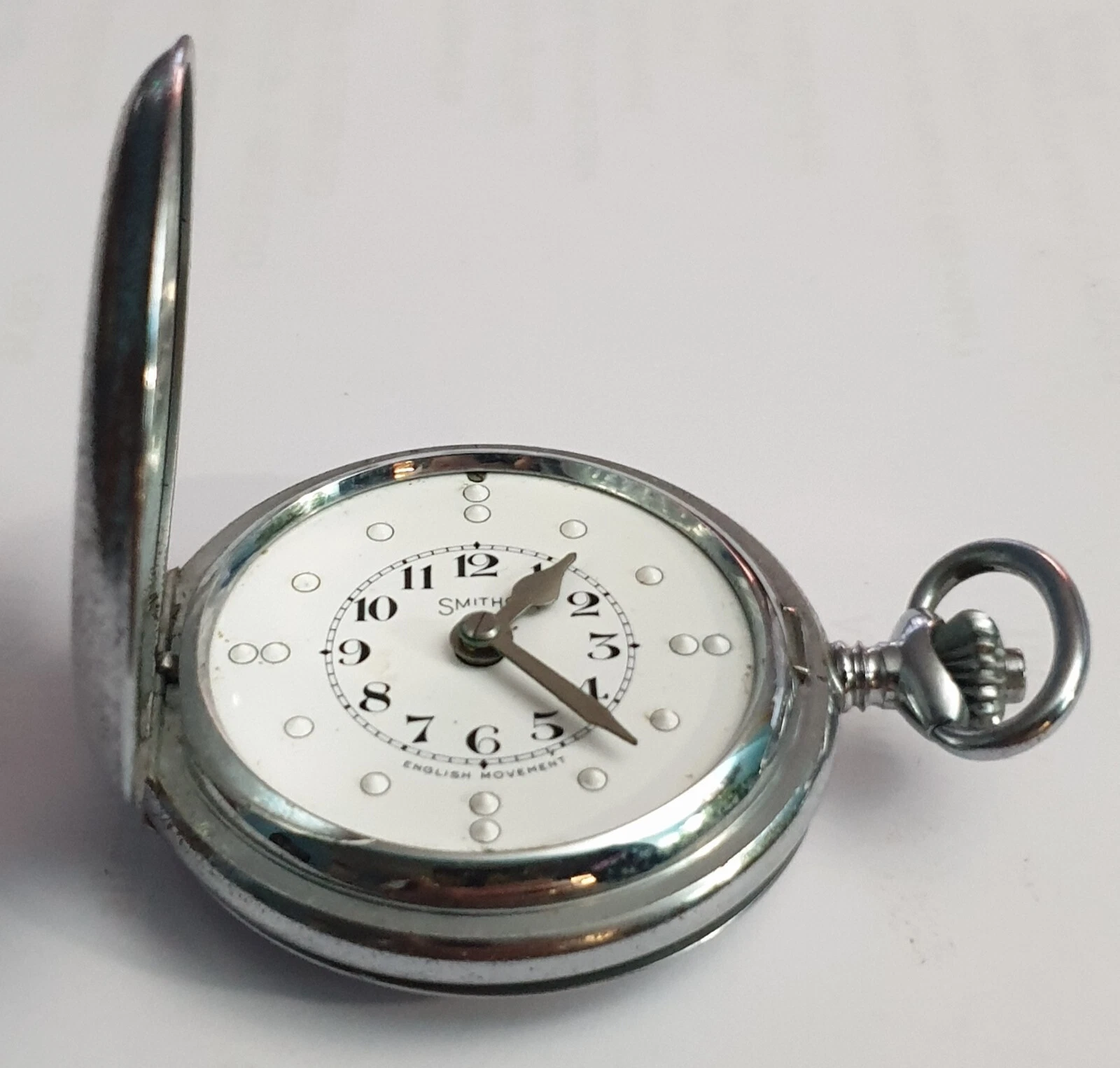 Smiths chrome pocket watch, enamel bland man full hunter machanical , 1950s