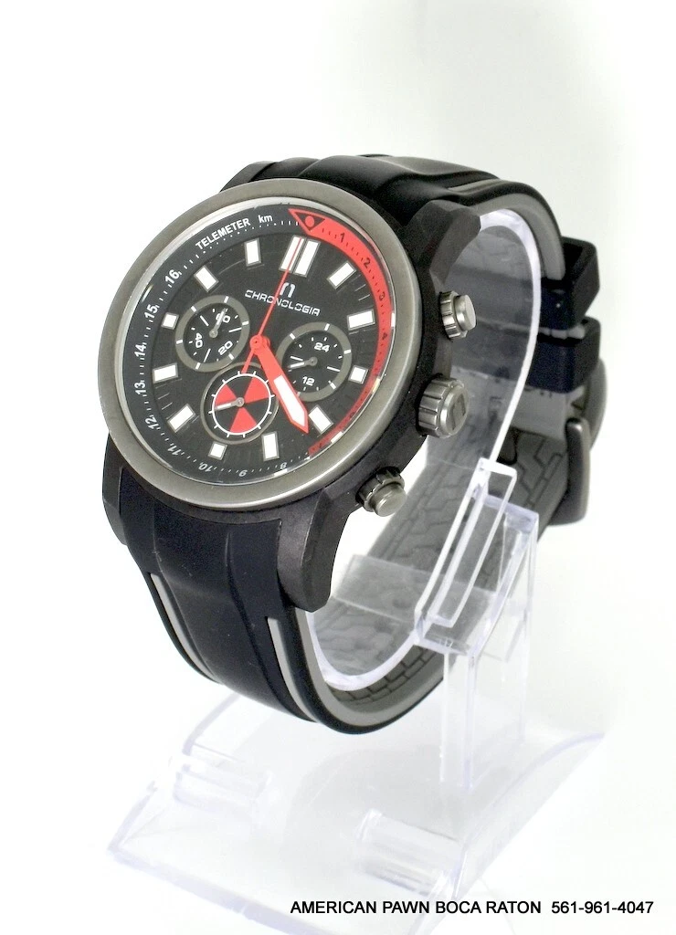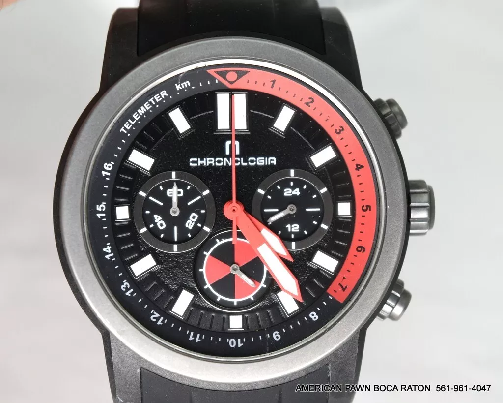 Chronologia Chaser Safety Red VK63 Meca-Quartz Chronograph Watch  85601-E