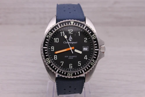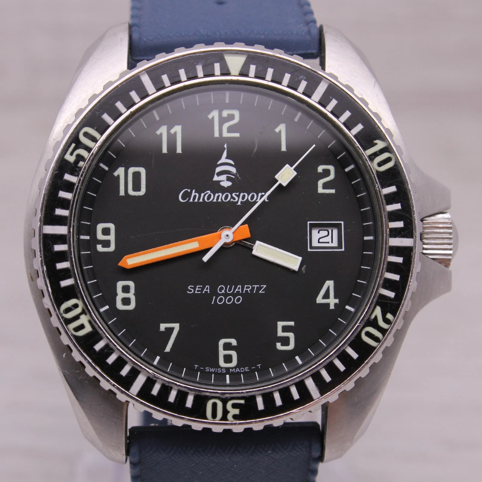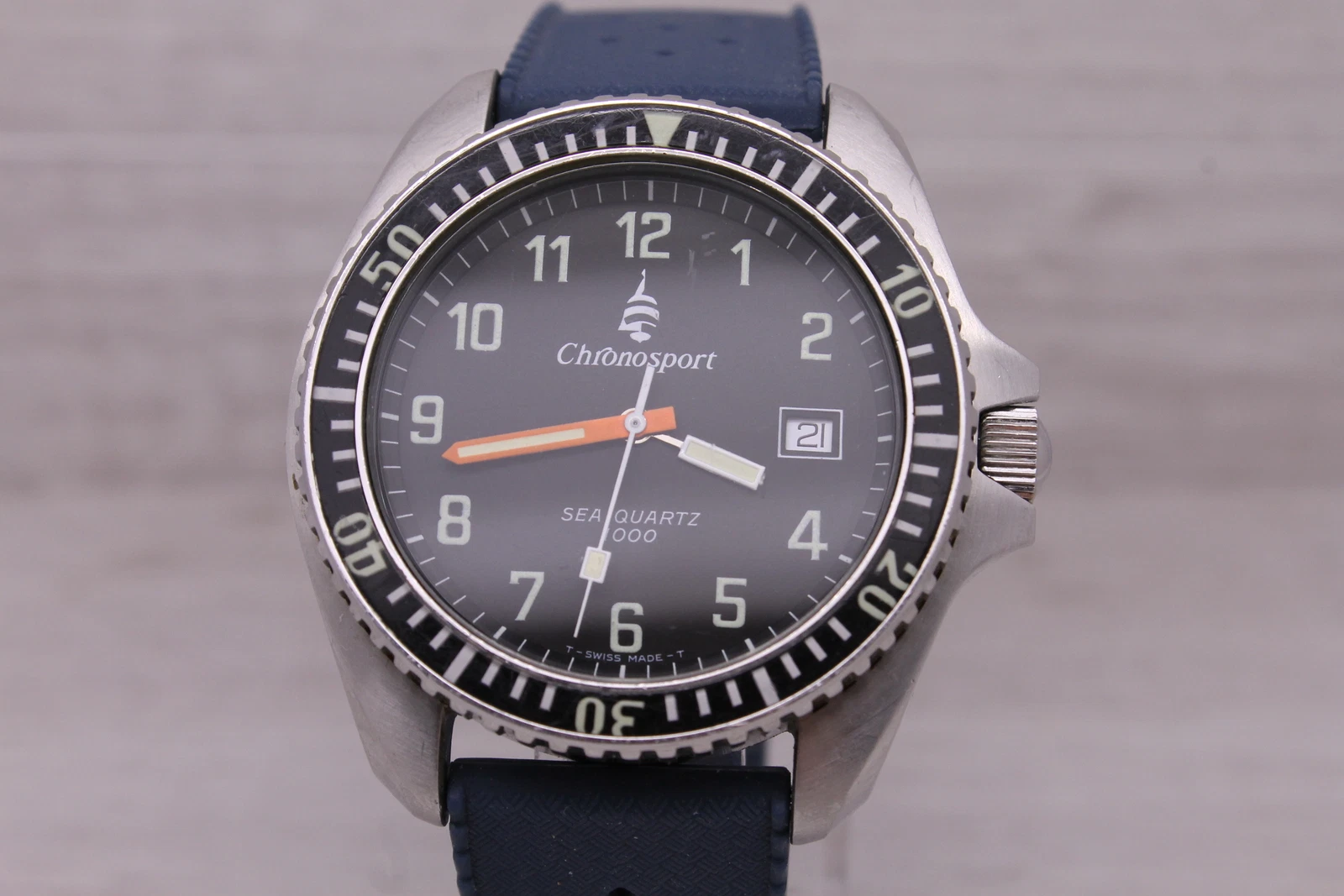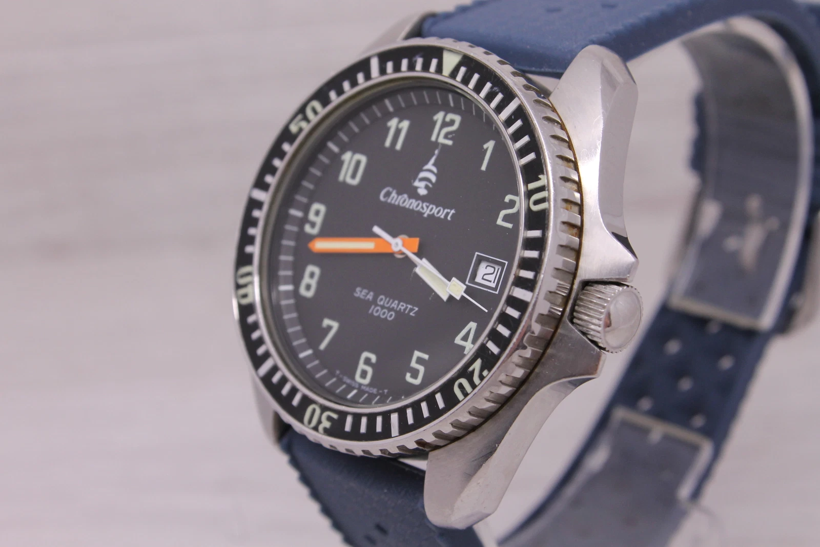 Vintage 1980's Chronosport Sea Quartz 1000 Mens 42mm Steel Quartz Divers Watch
