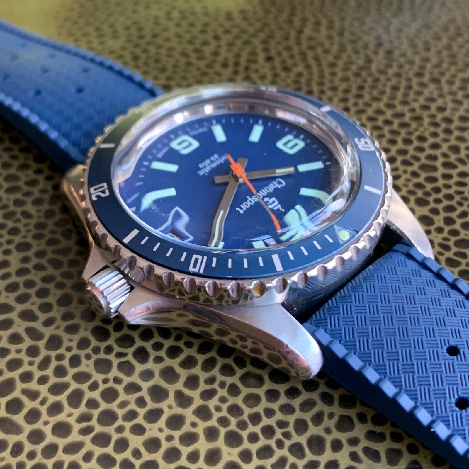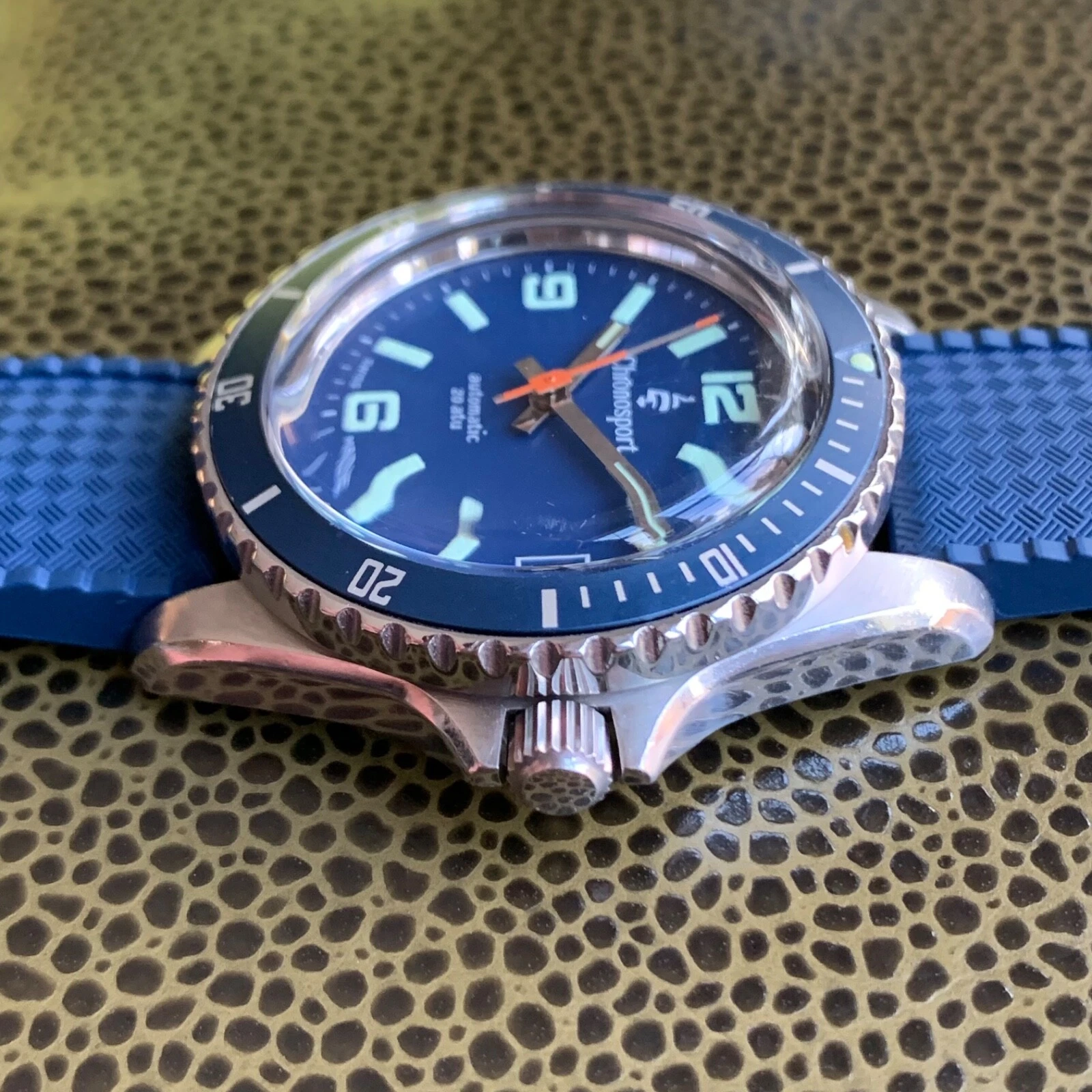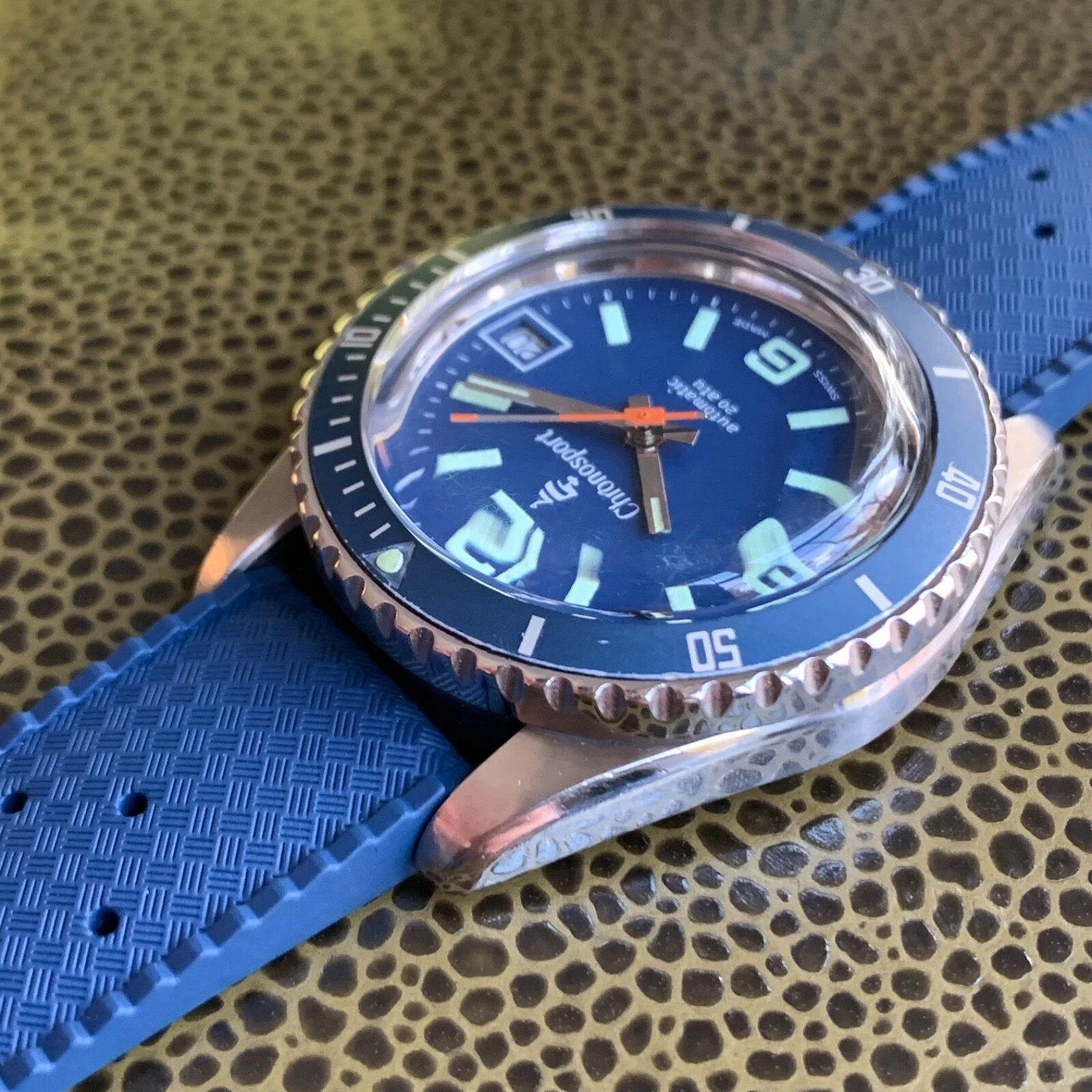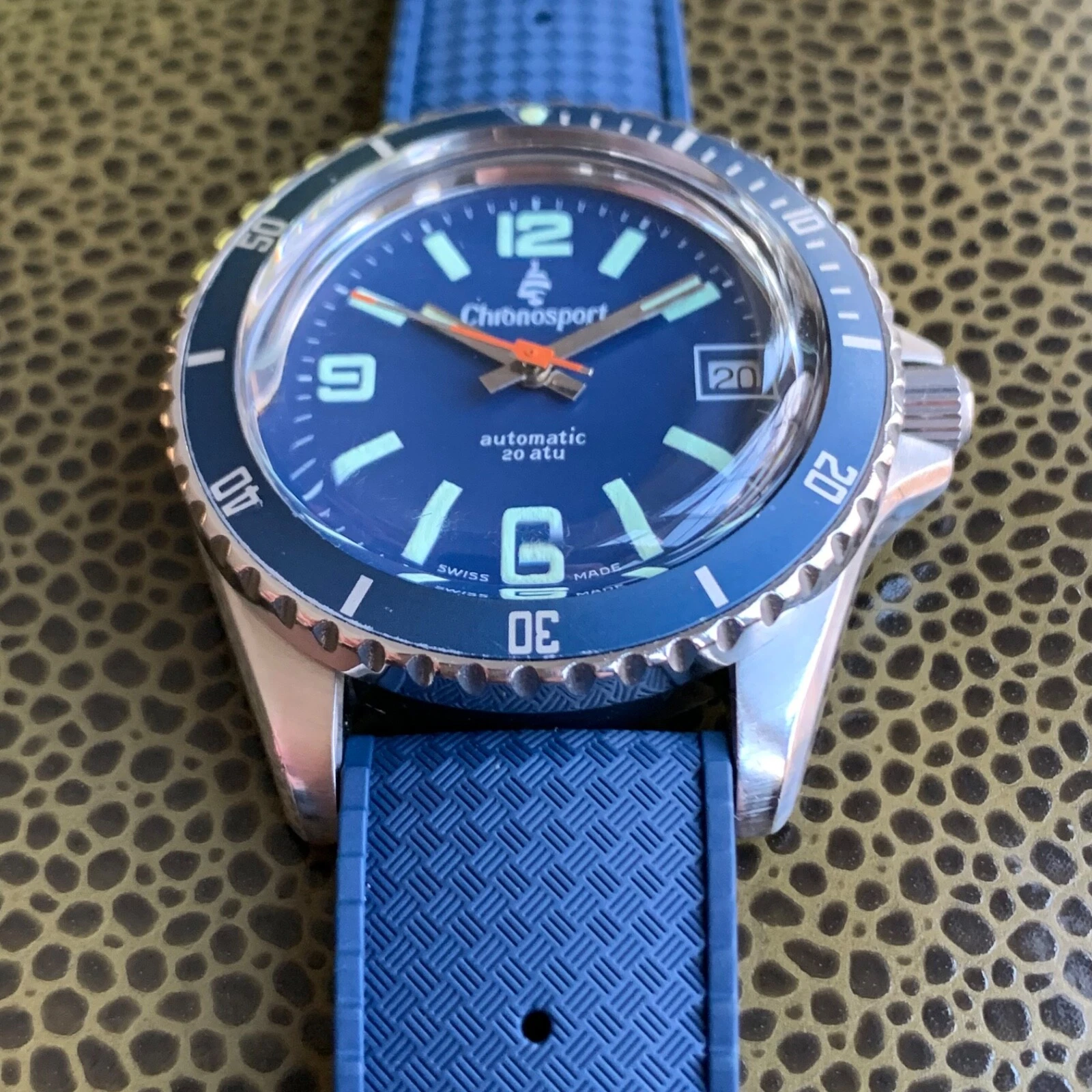Vintage Chronosport 20 Atu Divers Blue Dial Automatic Stainless Steel Watch Mint