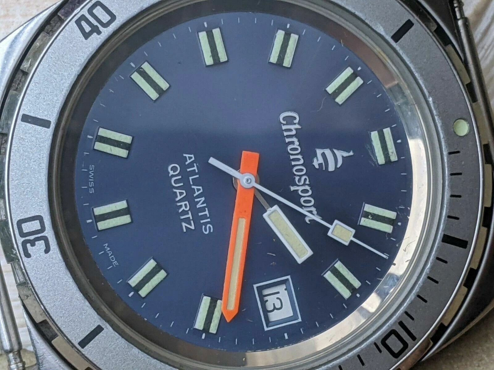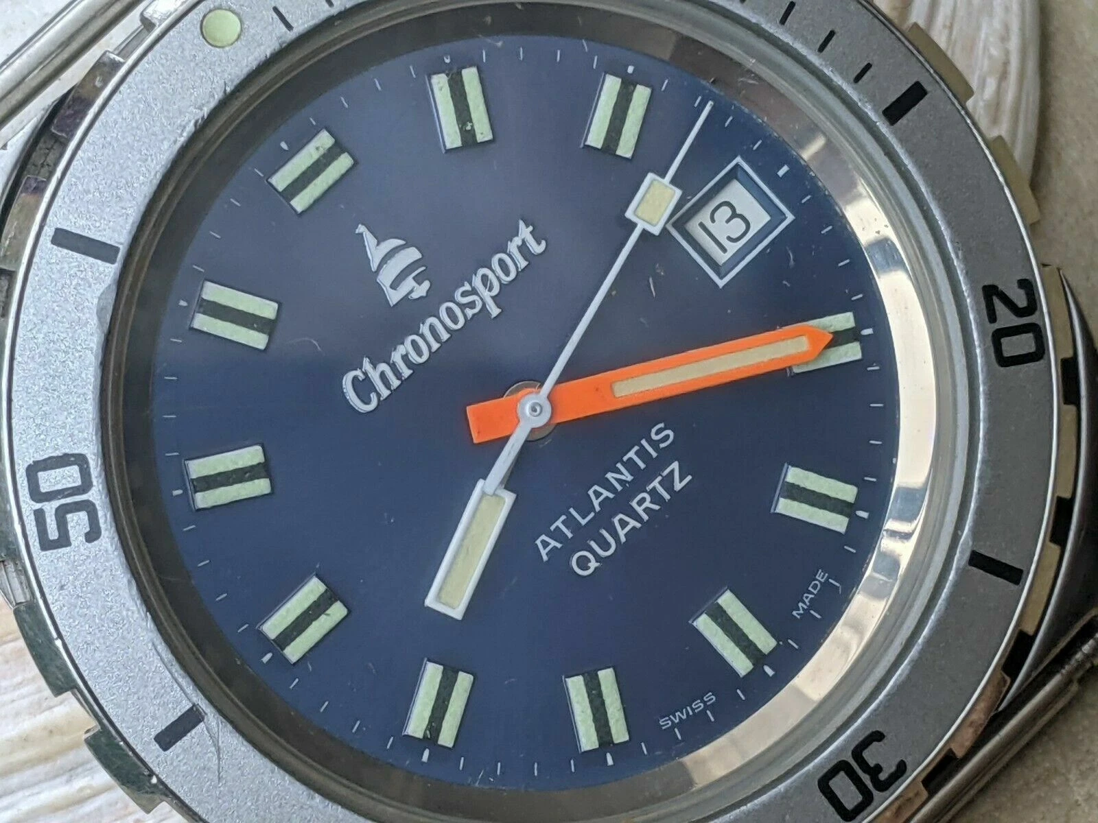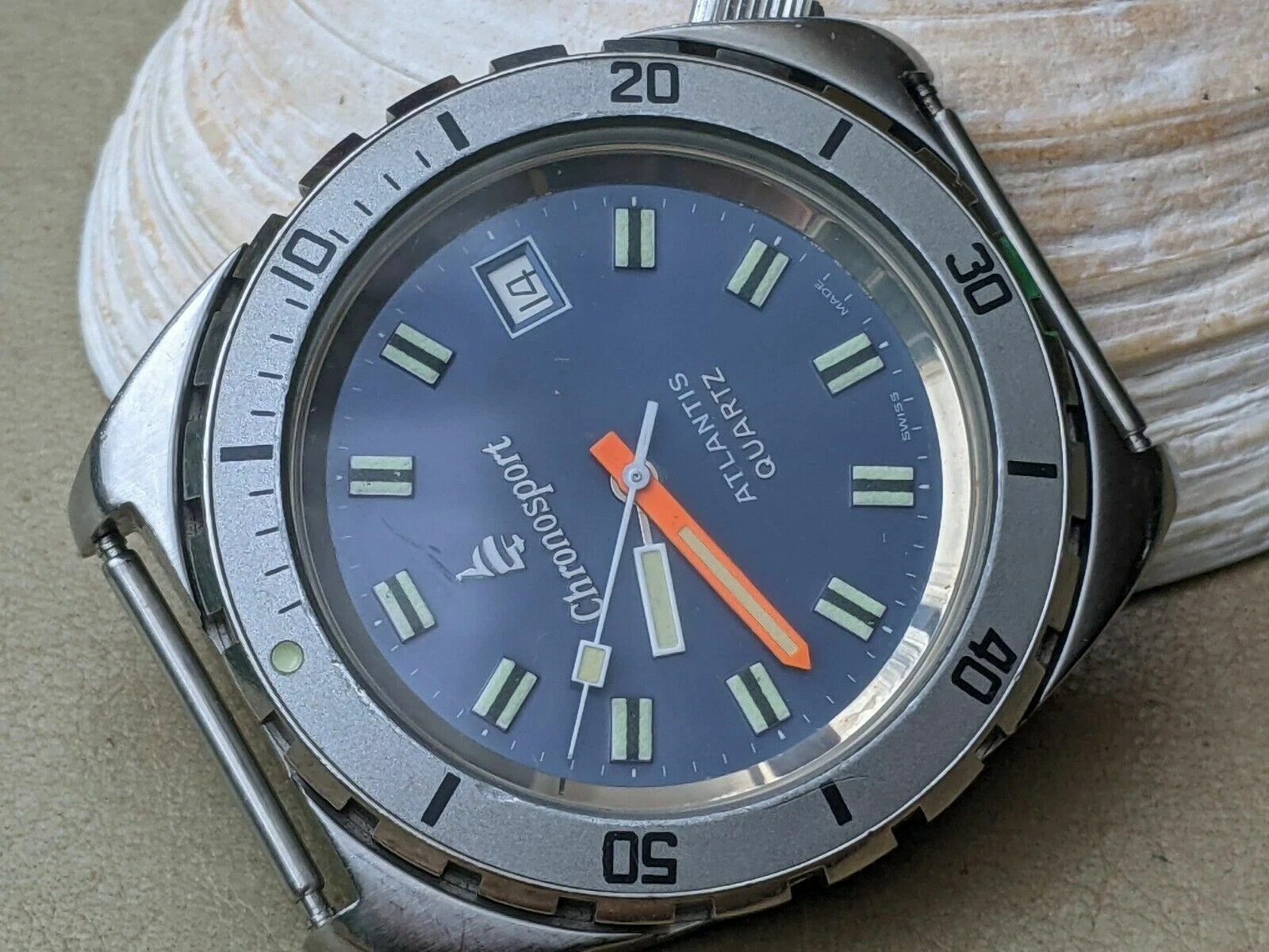 Vintage Chronosport Atlantis 20 ATM Diver w/Blue Dial,Patina,Brevet All SS Case