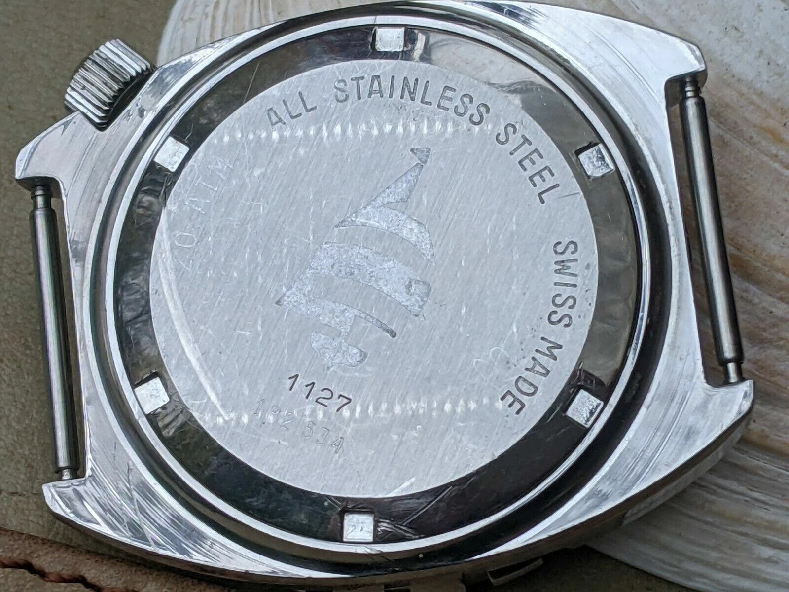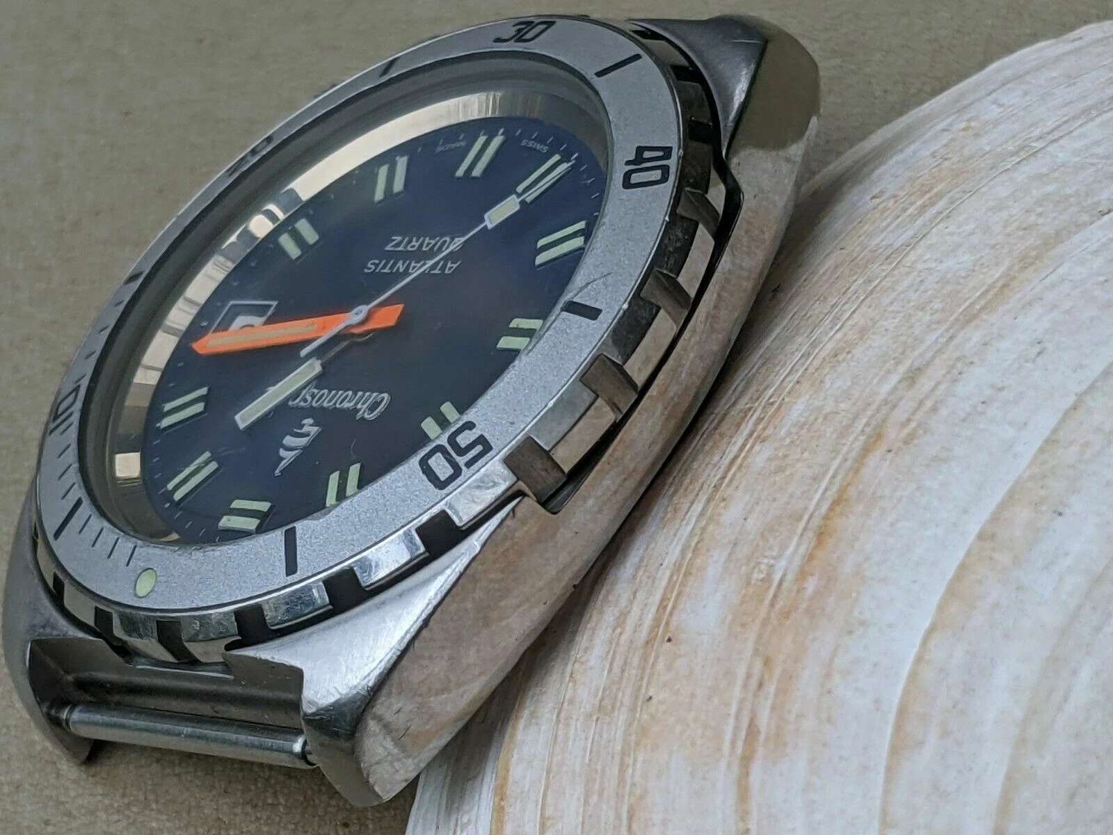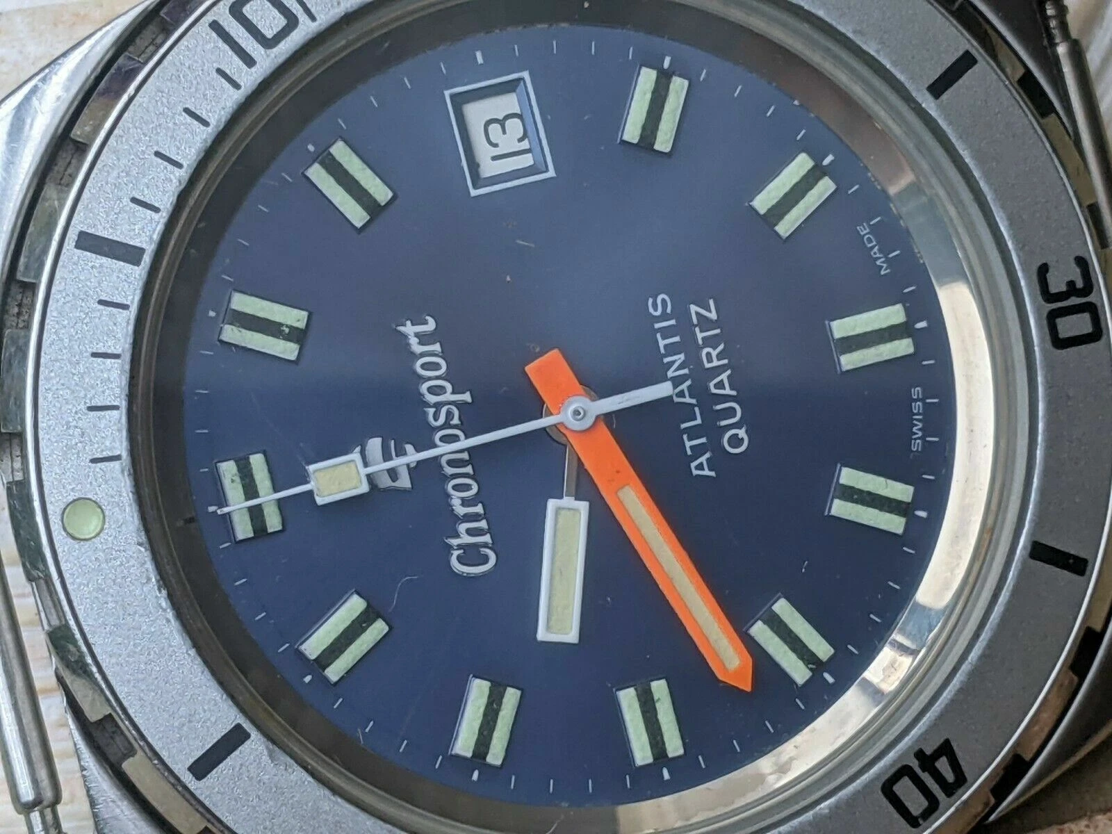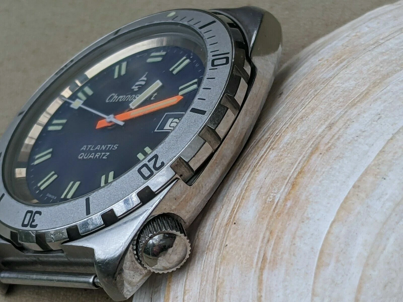 Vintage Chronosport Atlantis 20 ATM Diver w/Blue Dial,Patina,Brevet All SS Case