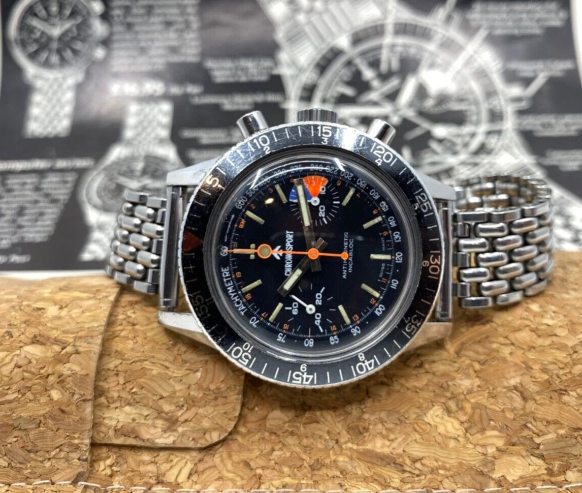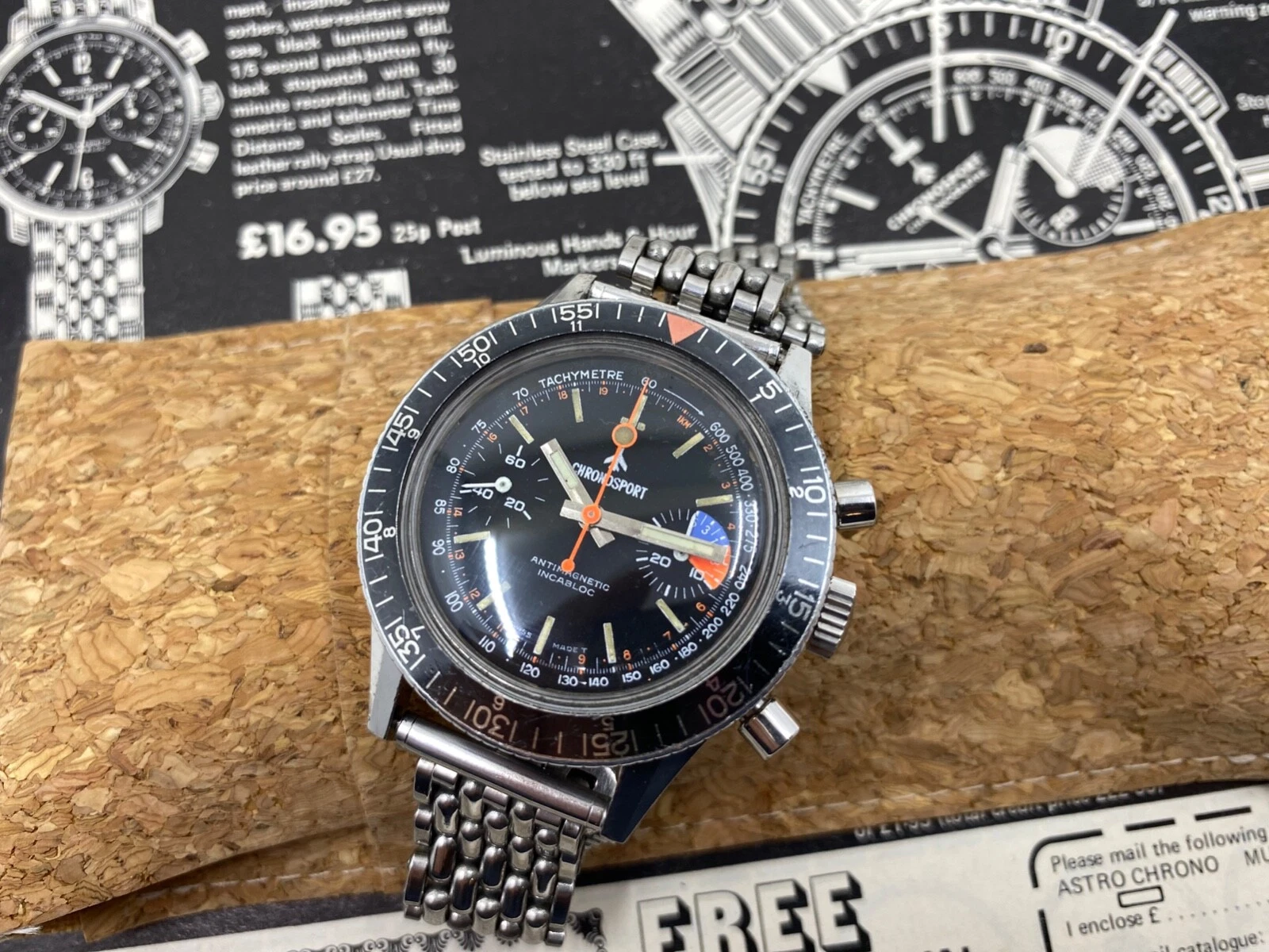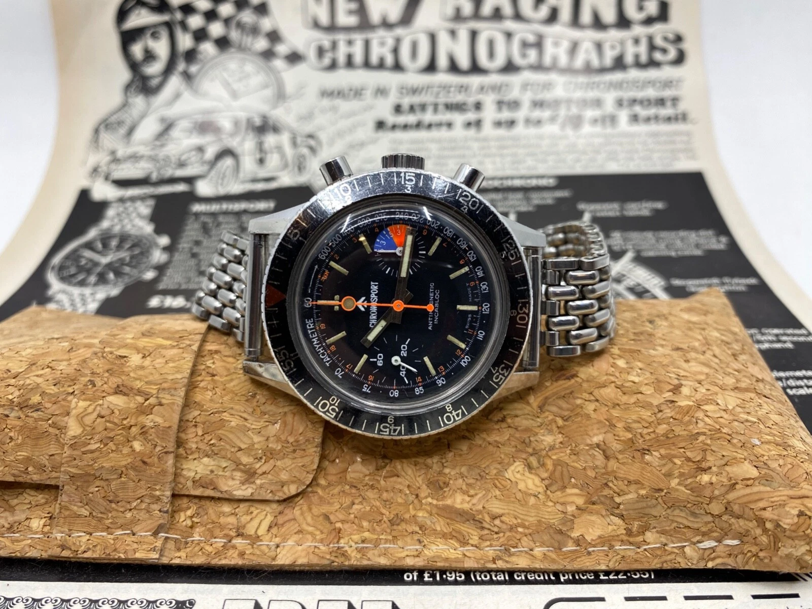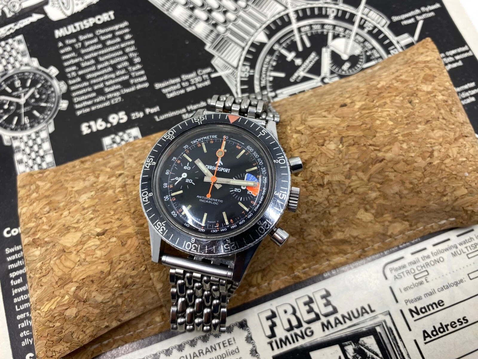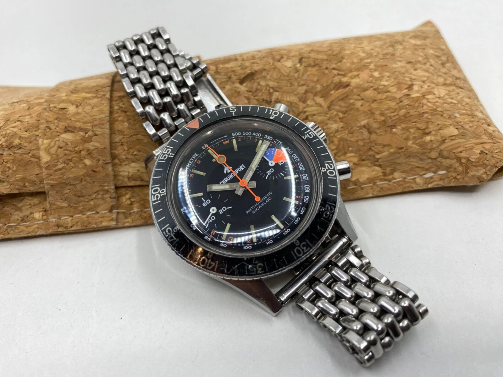 Vintage CHRONOSPORT Mens Divers Aviator Chronograph Watch + Montal Beads of Rice