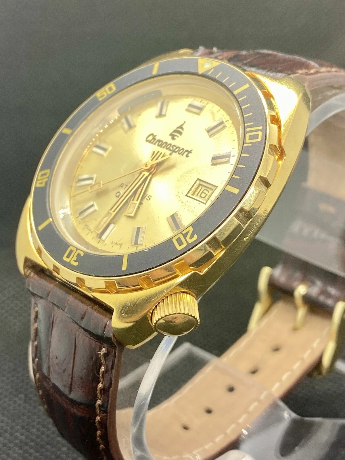 Chronosport Atlantis Divers Watch (Leather And Gold Band Included)