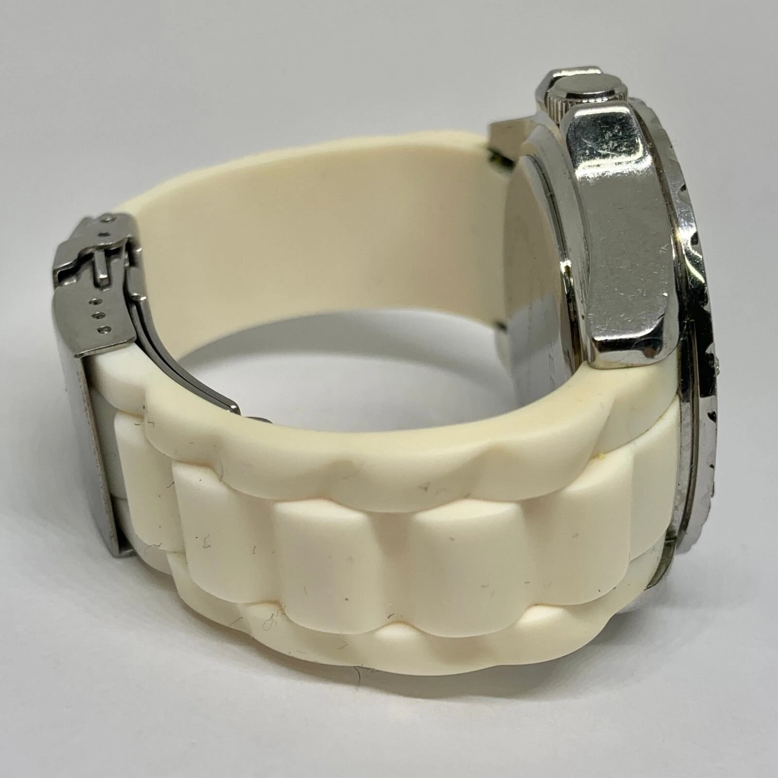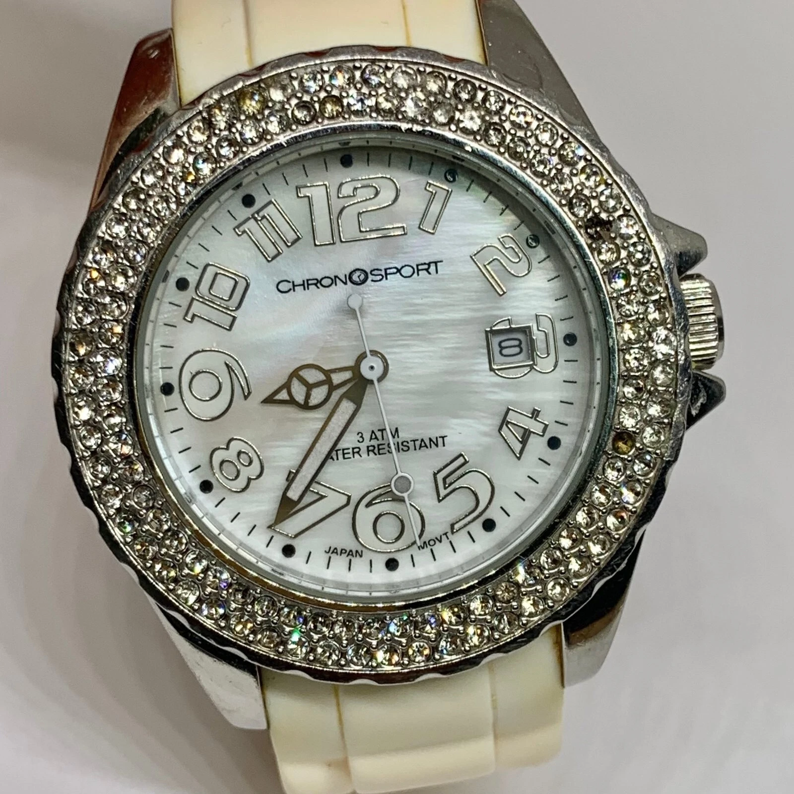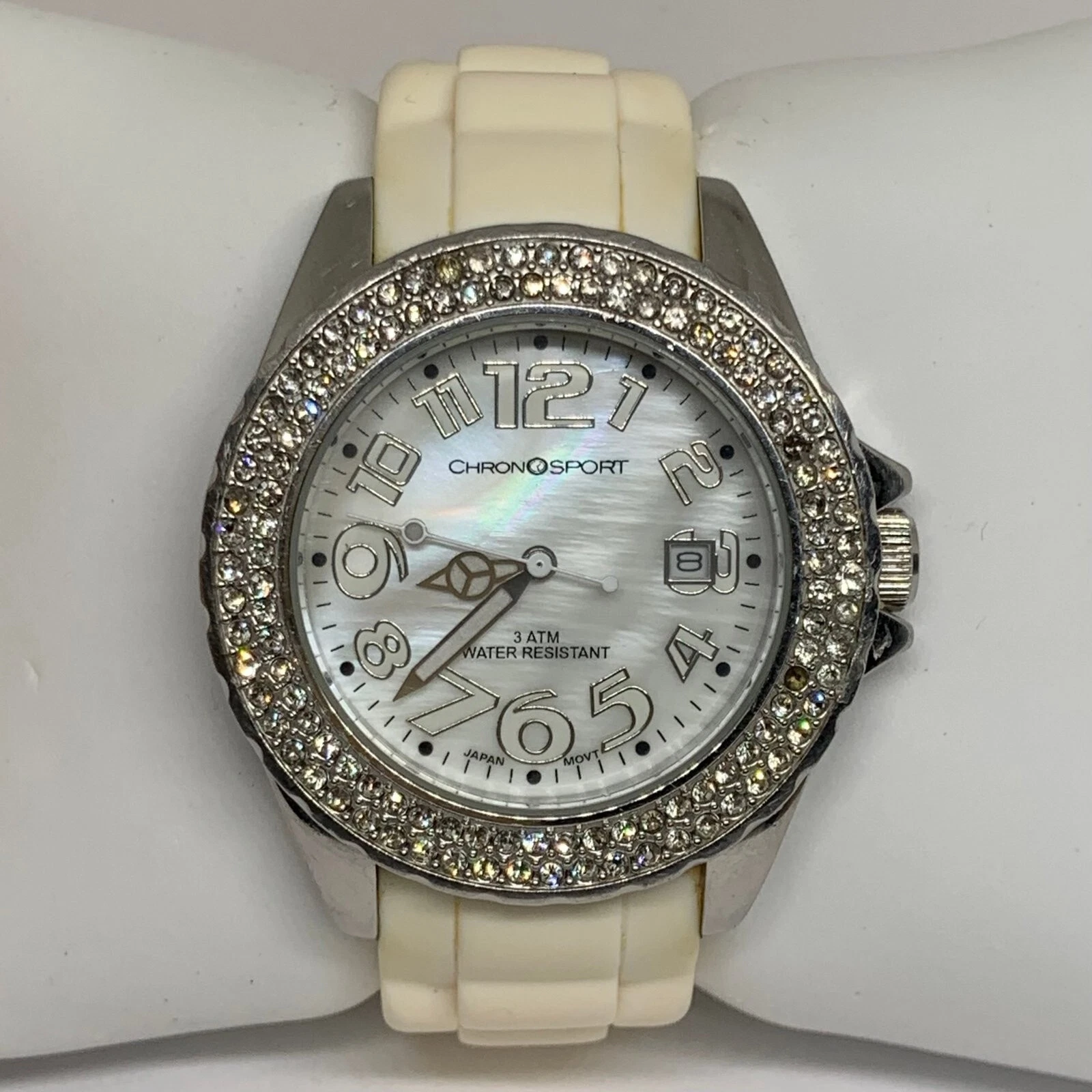 Chronosport women’s quartz analog watch large face 43mm silver tone crystals pla