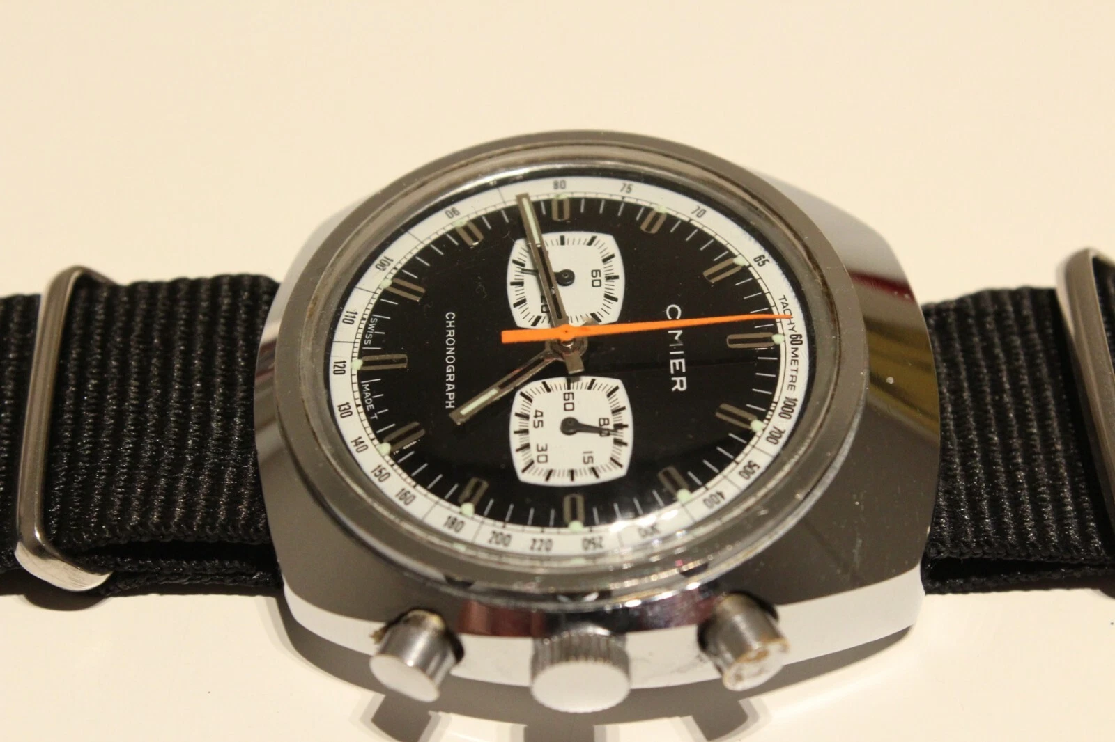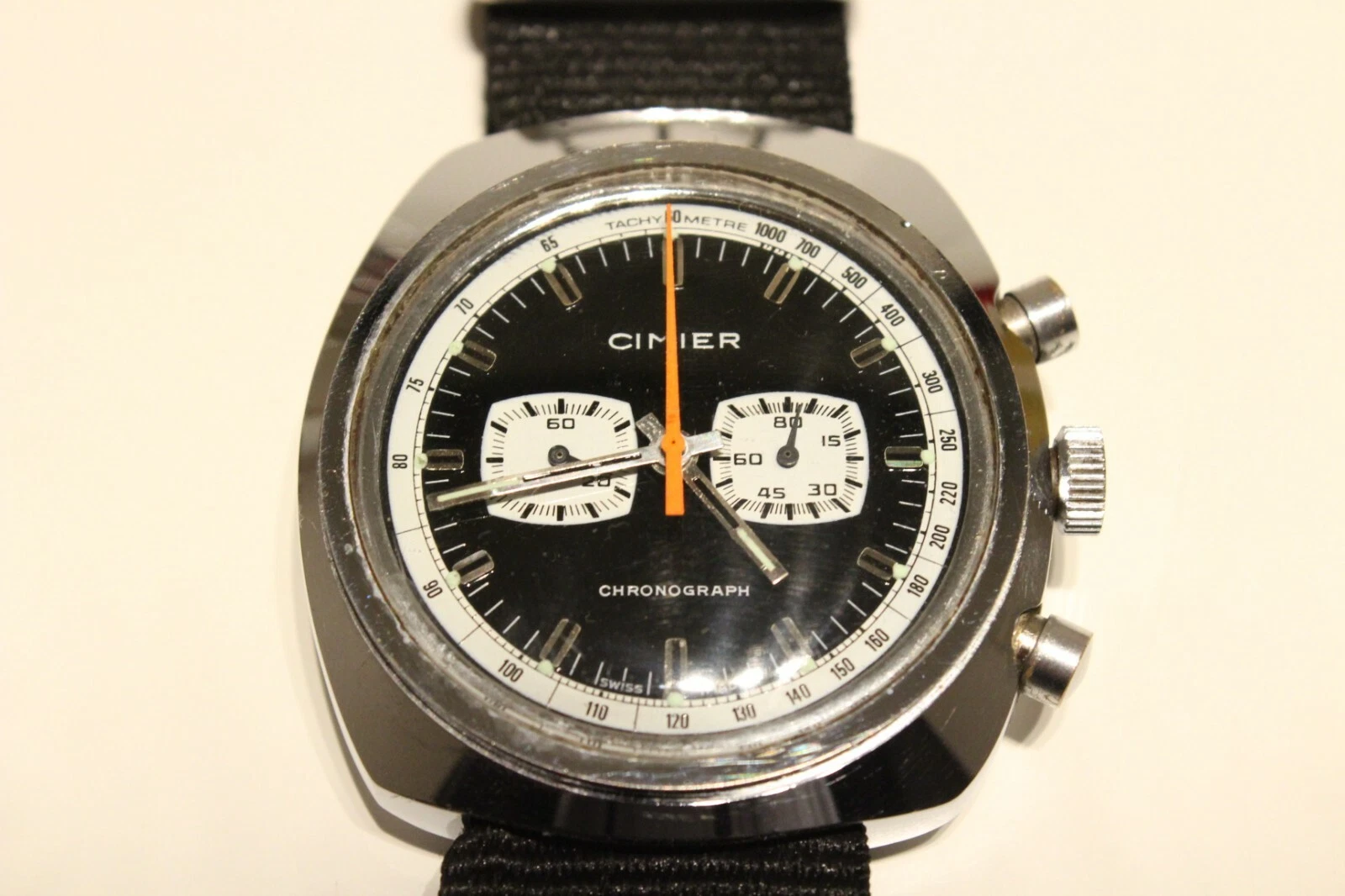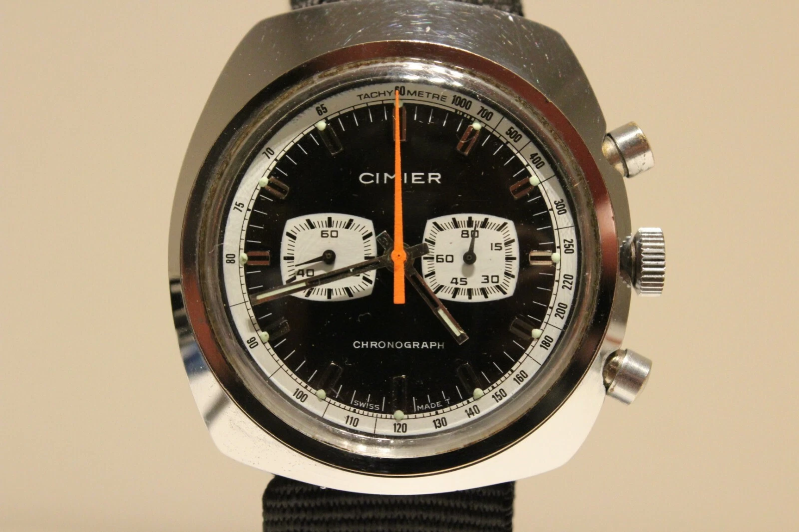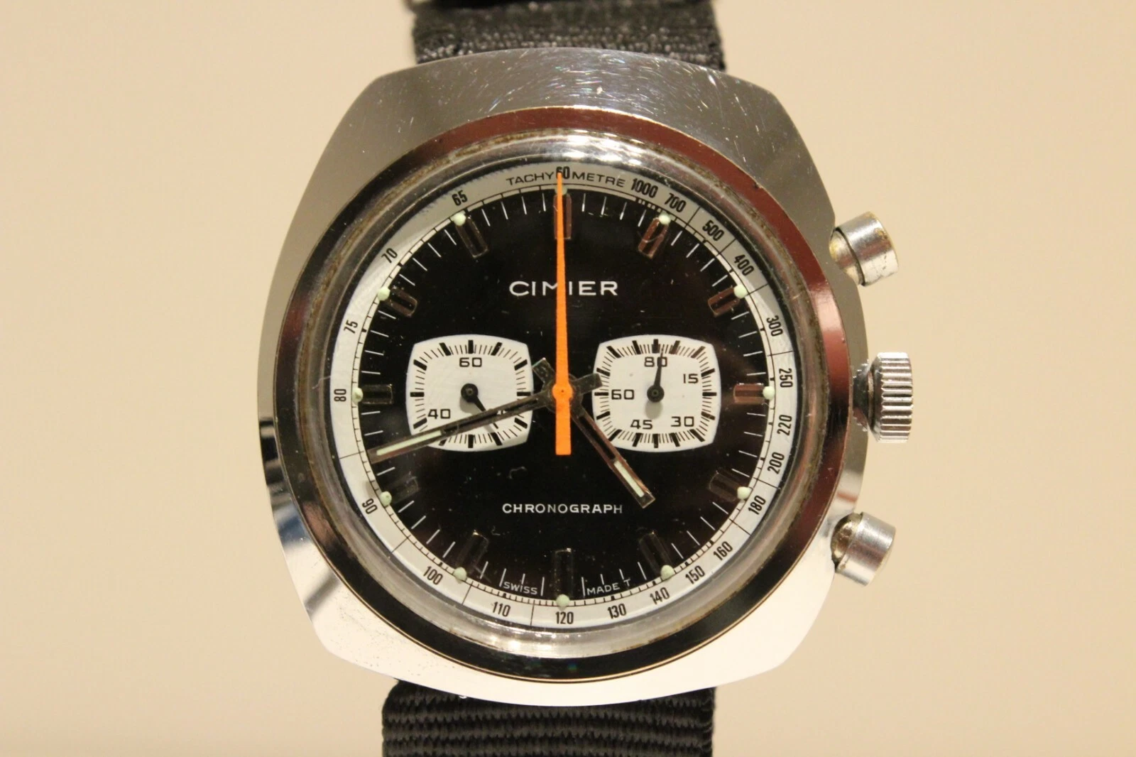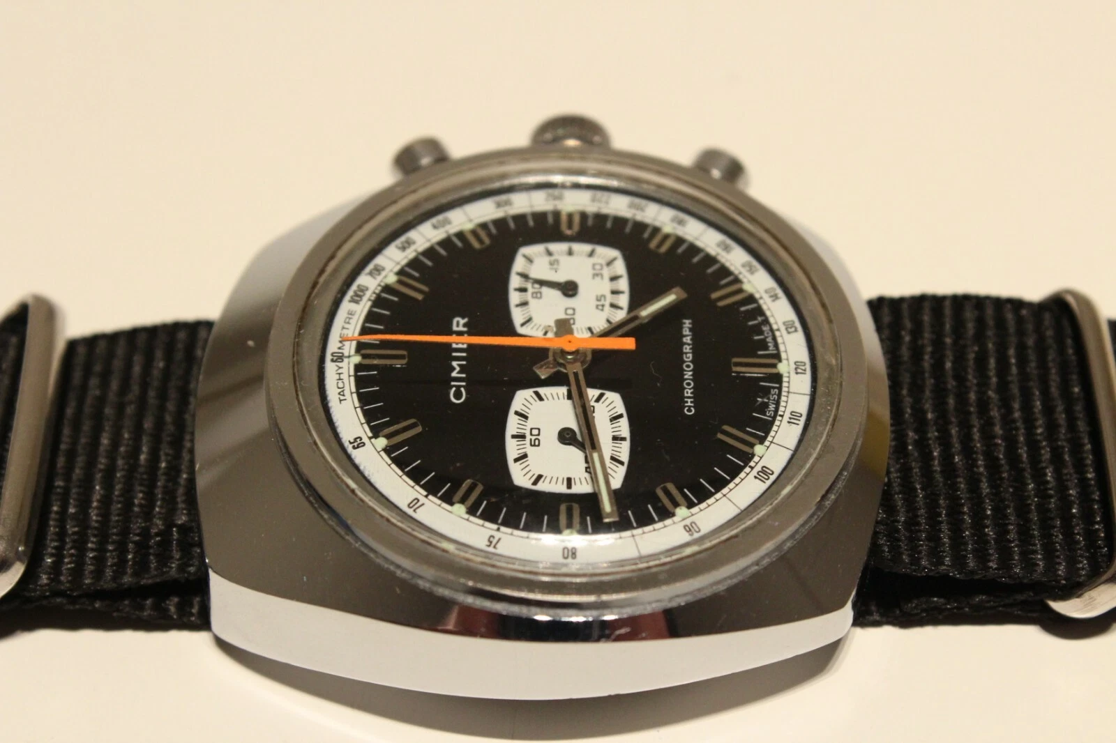 VINTAGE RARE SWISS MEN'S MECHANICAL CHRONOGRAPH WATCH "CIMIER" 7J./BLACK DIAL