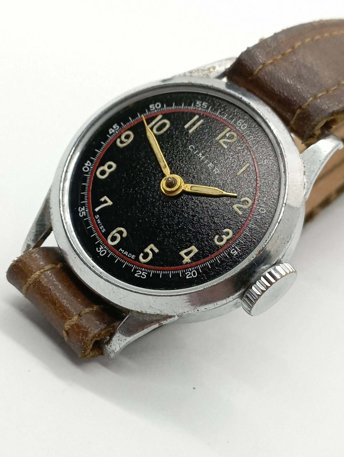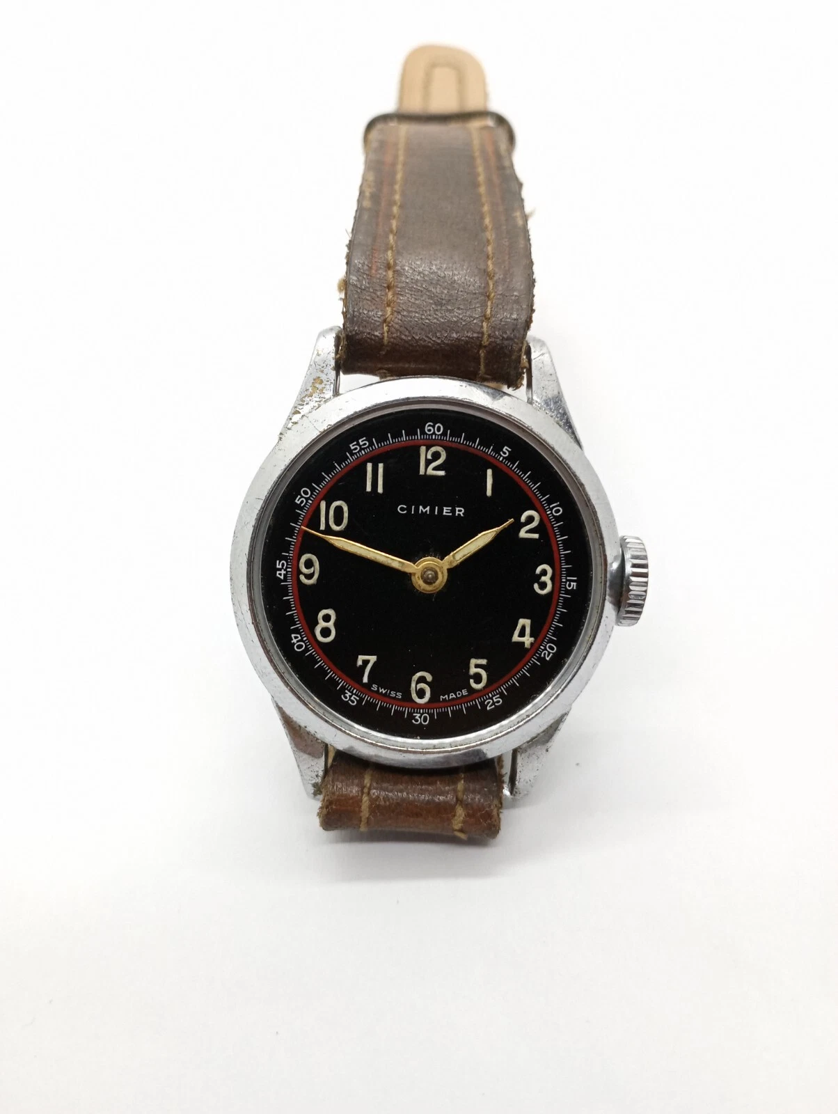 VINTAGE Swiss CIMIER Military Black Dial Lapanouse LTD Watch Working Well READ!