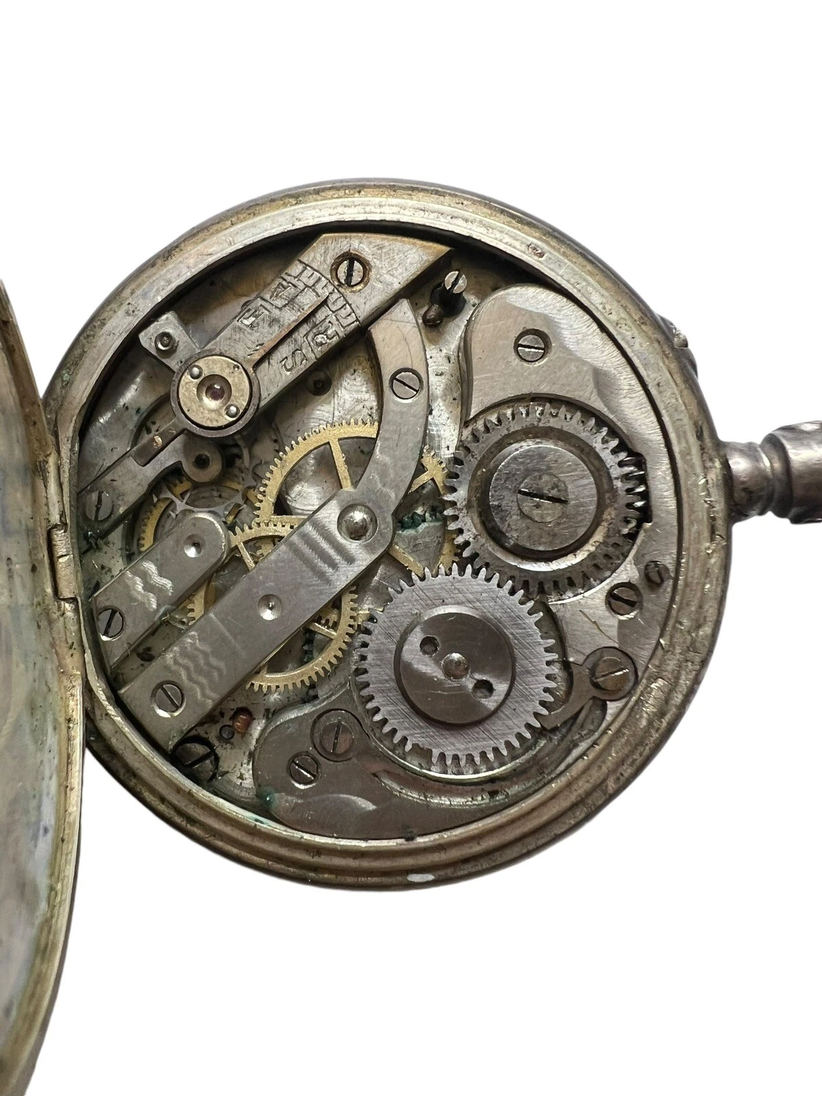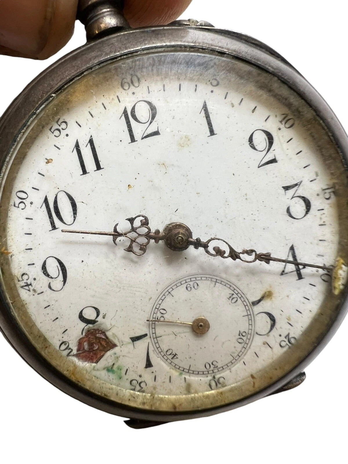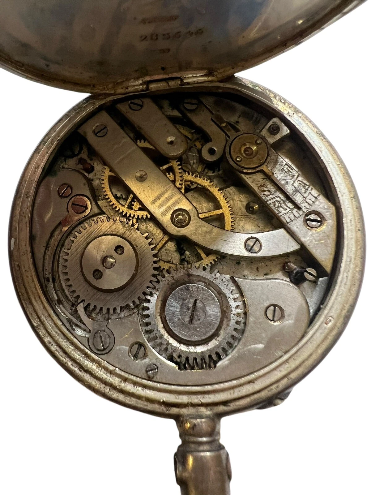 Engraving Men's Open Pocket Watch Sterling Silver 0.800 For Parts Or Repair