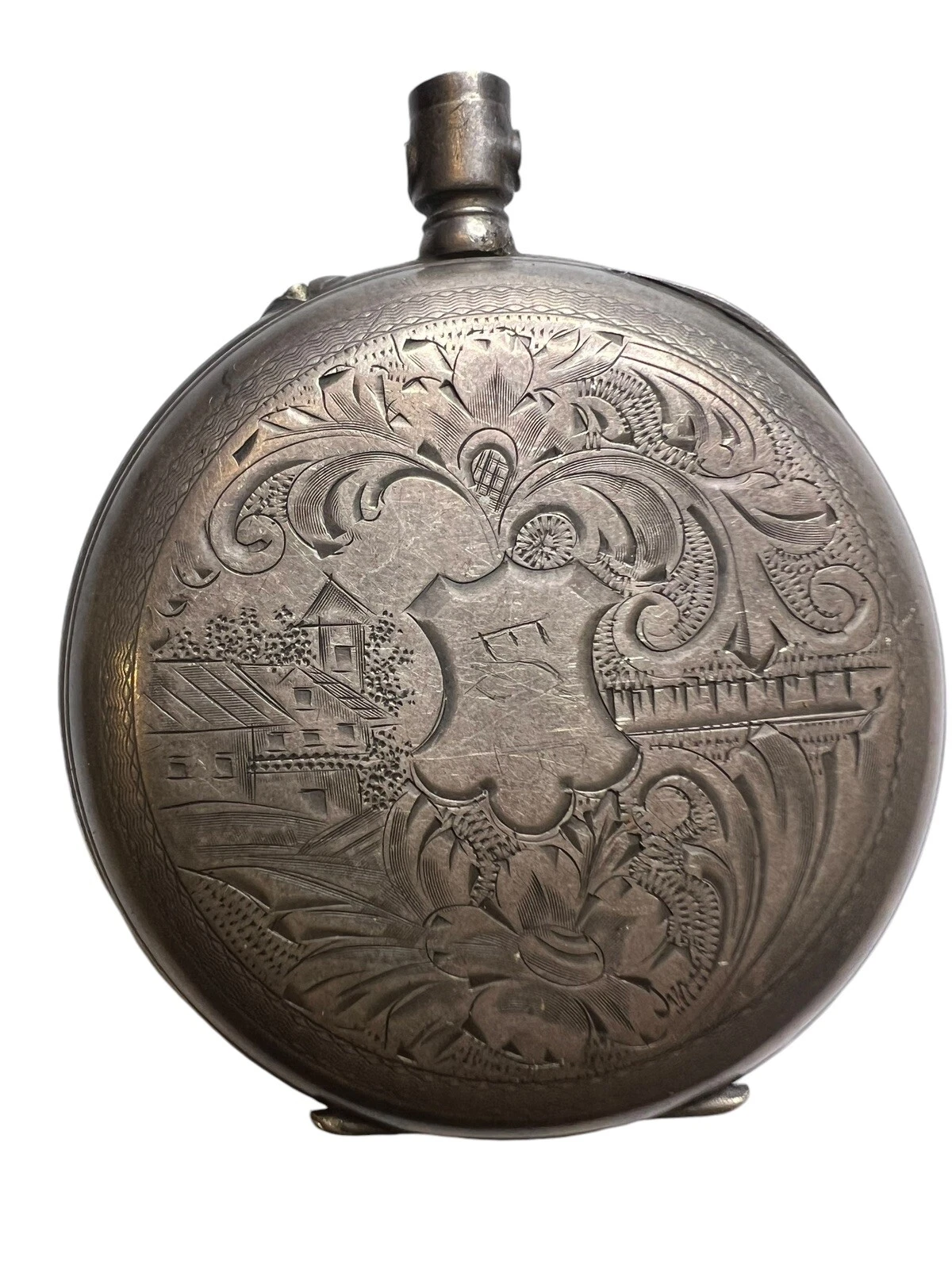Engraving Men's Open Pocket Watch Sterling Silver 0.800  For Parts Or Repair
