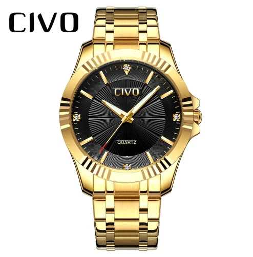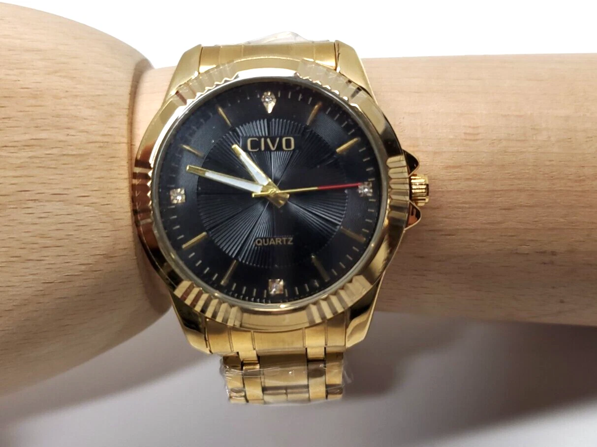 Mens Wrist Watch Quartz Movement Big Face 40mm Gold Tone Stainless Band Civo