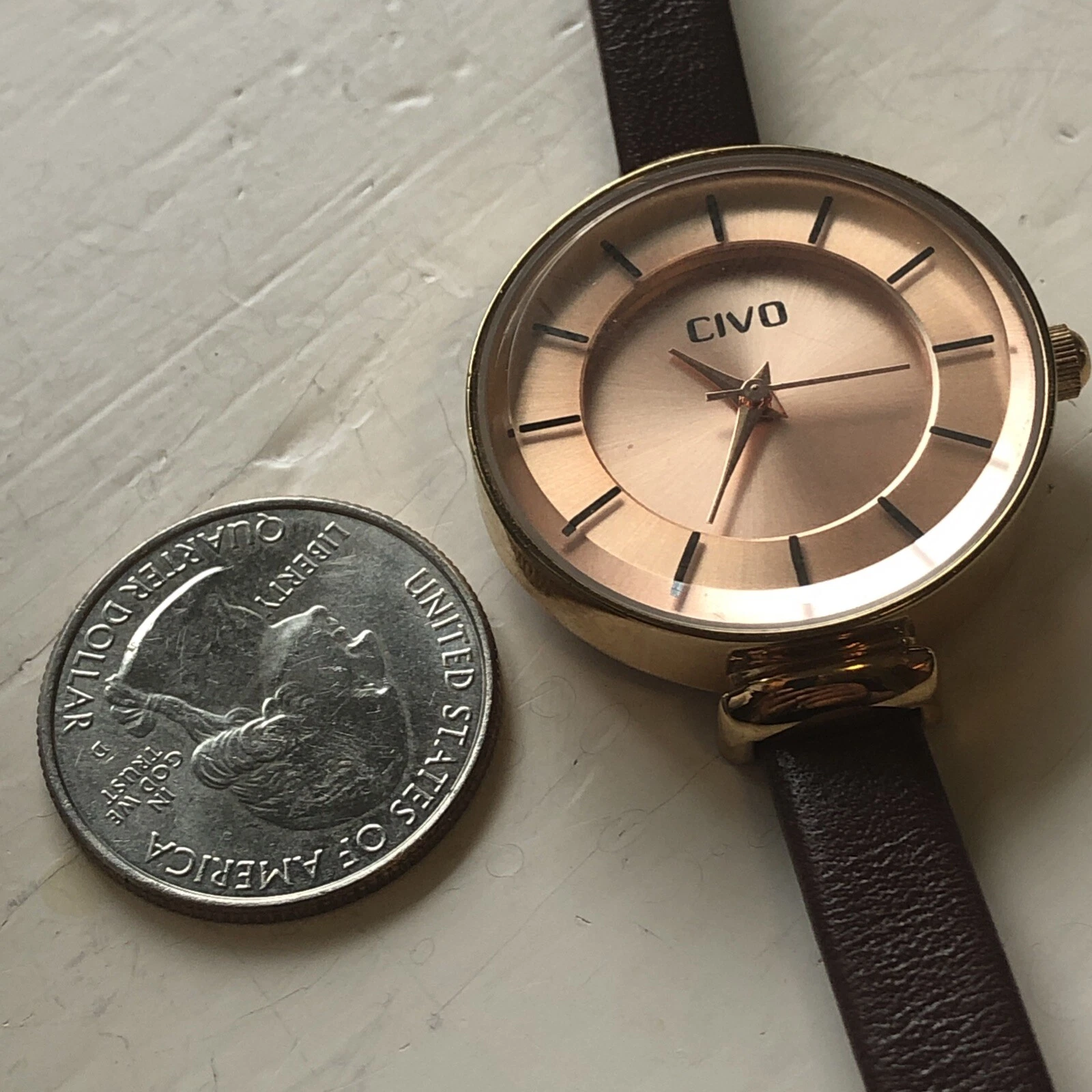 CIVO Rose Gold Japan Quartz Movement Wrist Watch Slim Leather Brown Band Womens