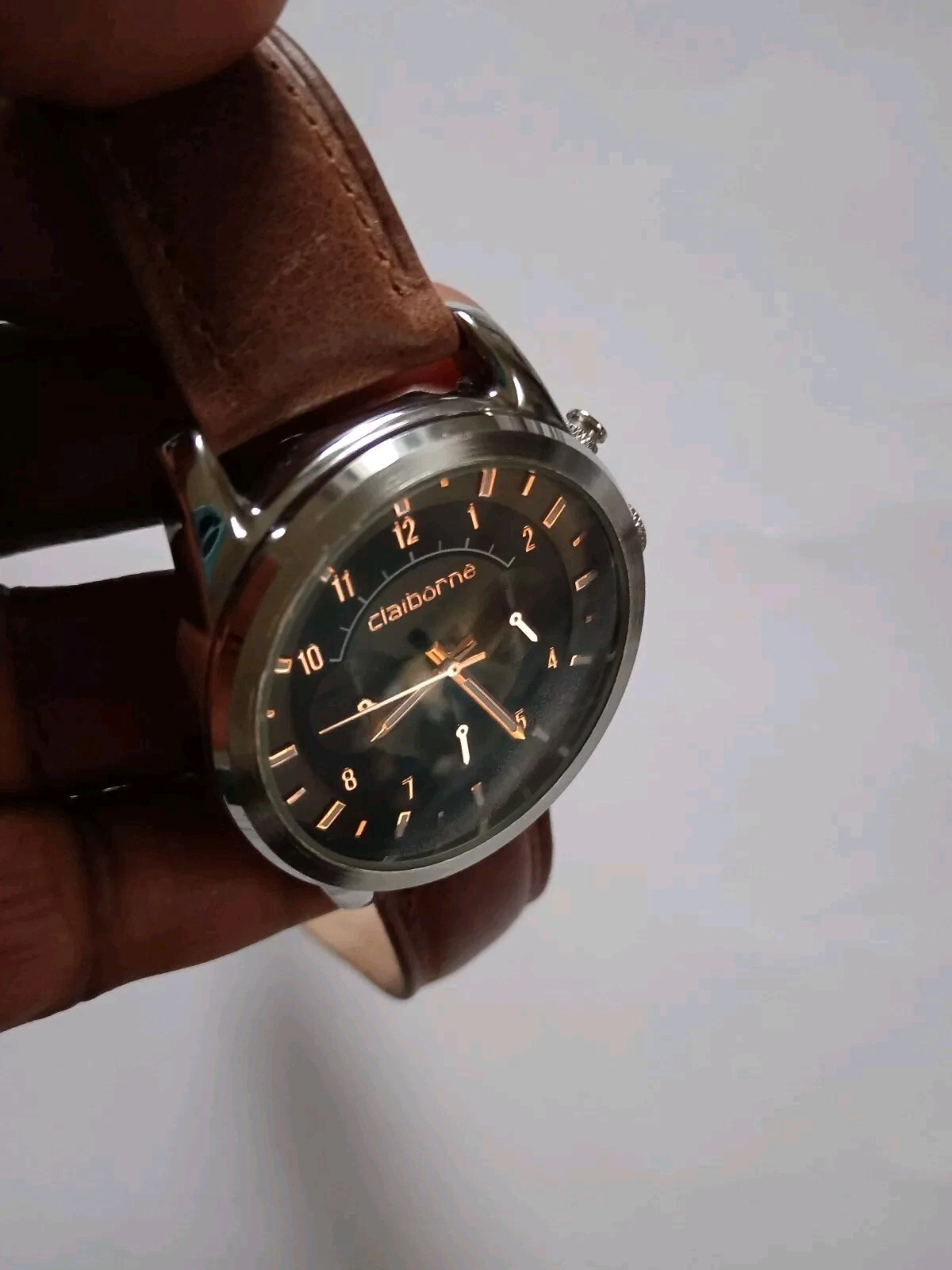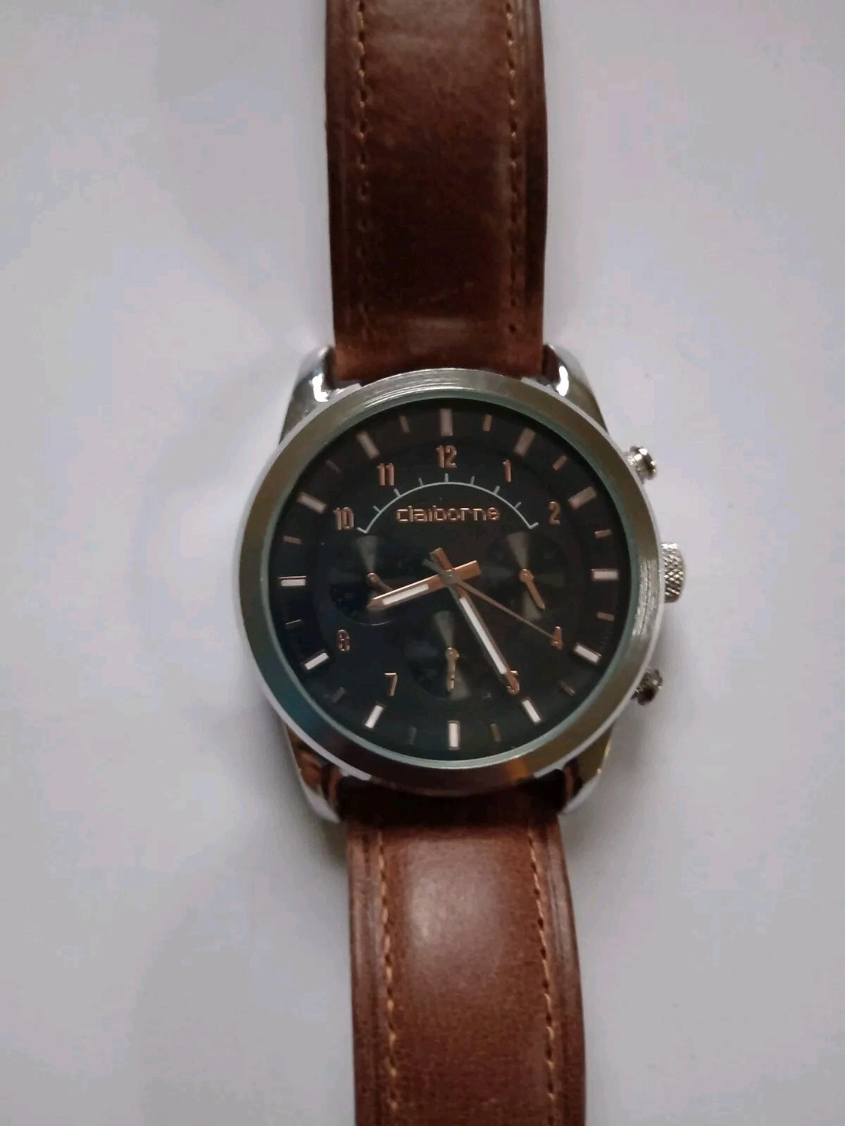 Claiborne Quartz Analog Timepiece Brown Dial Leather Strap Men's Watch CLM 1192