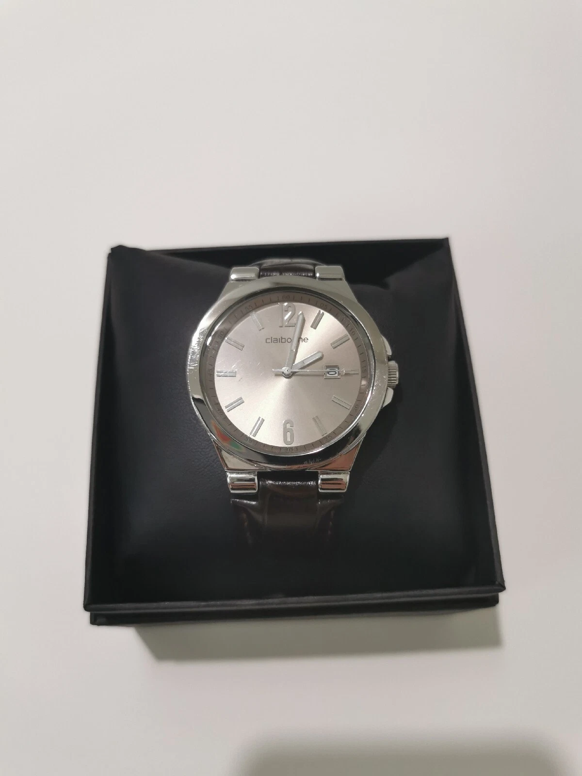 Claiborne Men's Dress Watch CLM1024 w/ Date Window & Black Genuine Leather Band