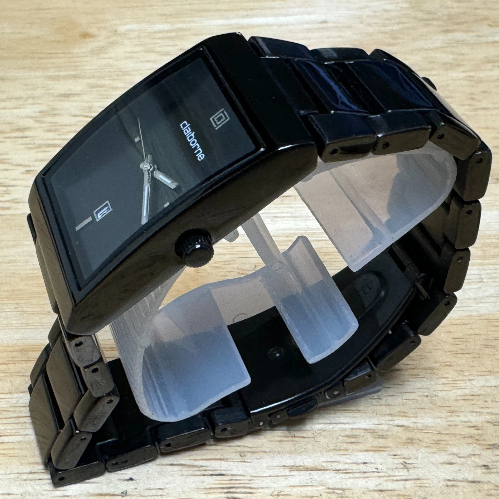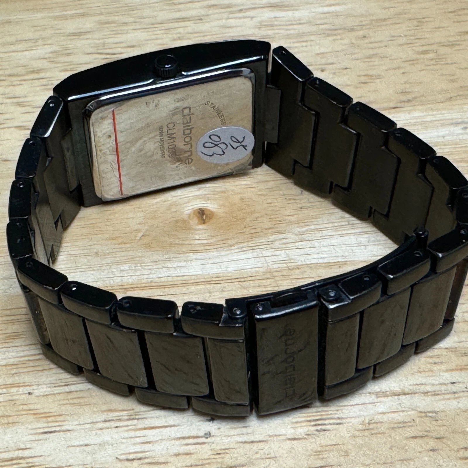 Claiborne Quartz Watch CLM1039 Men All Black Rectangle Date Analog New Battery