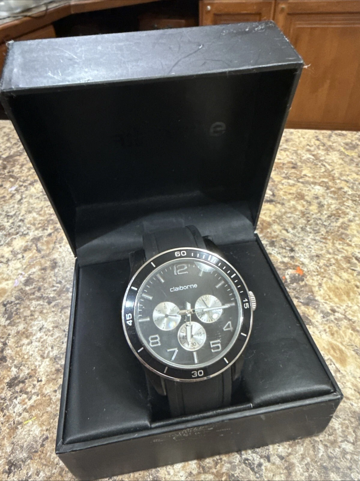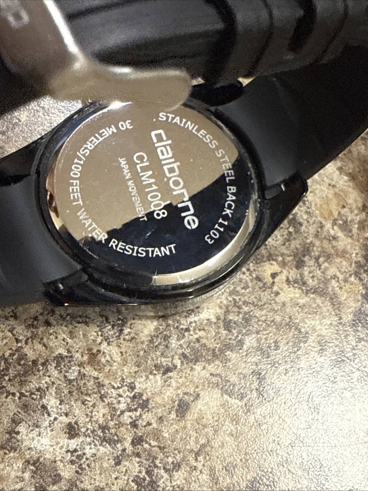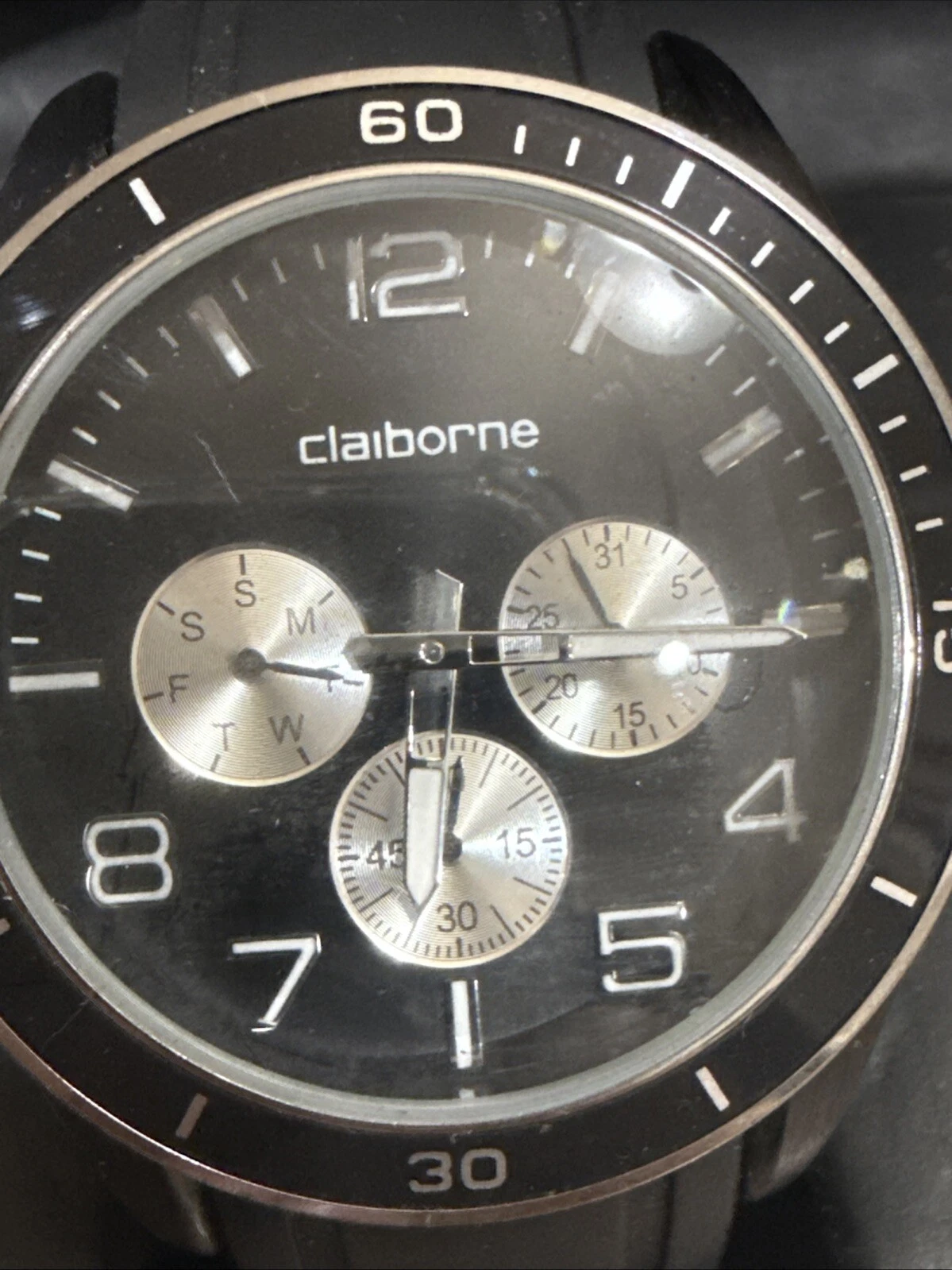 CLAIBORNE BLACK RUBBER MULTI FUNCTION DATE MEN WATCH CLM1008 NOB