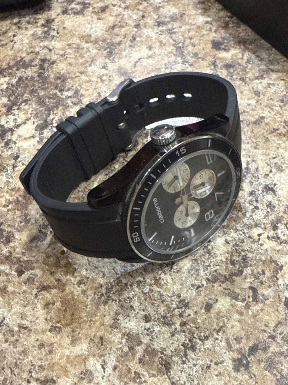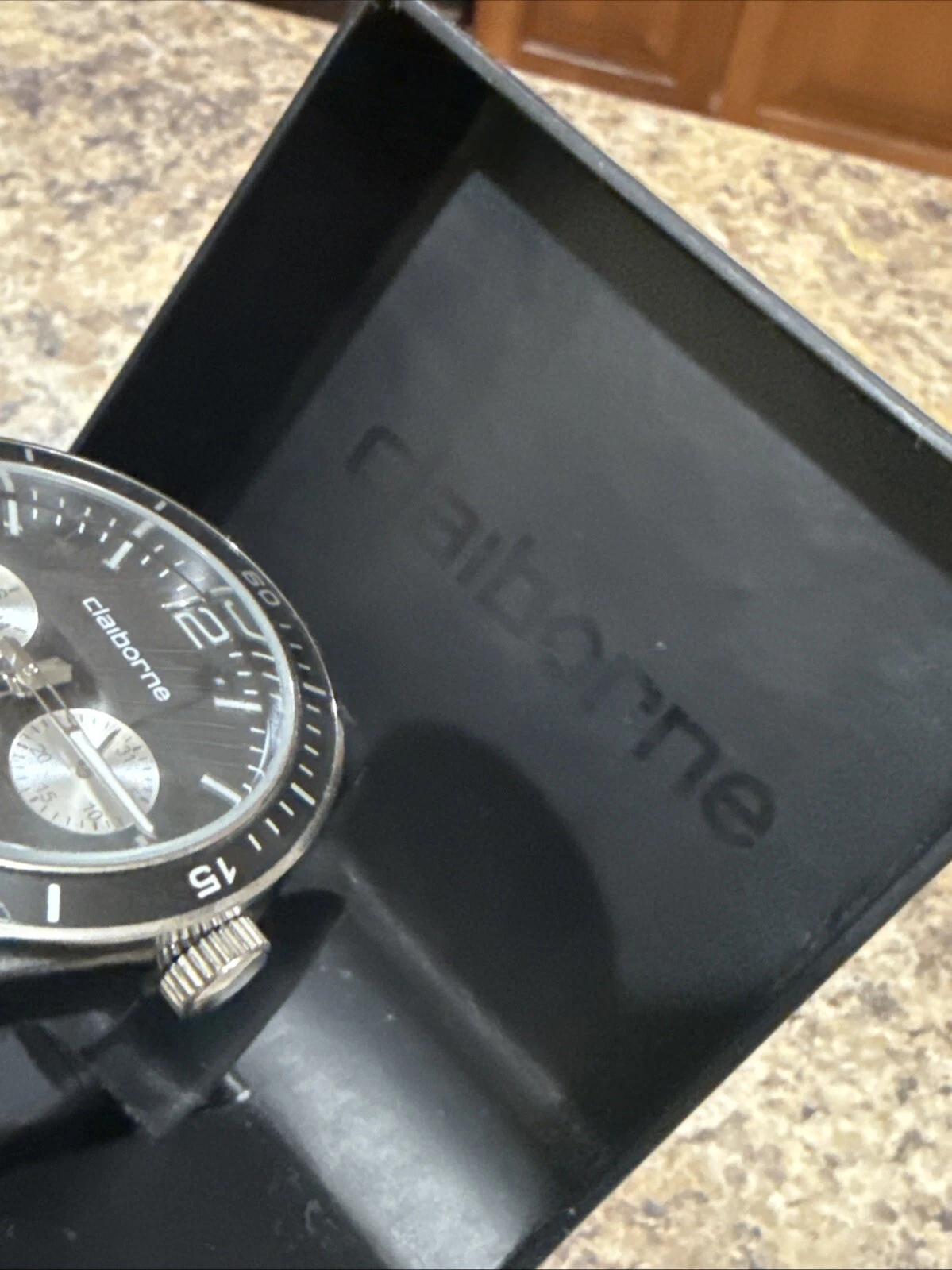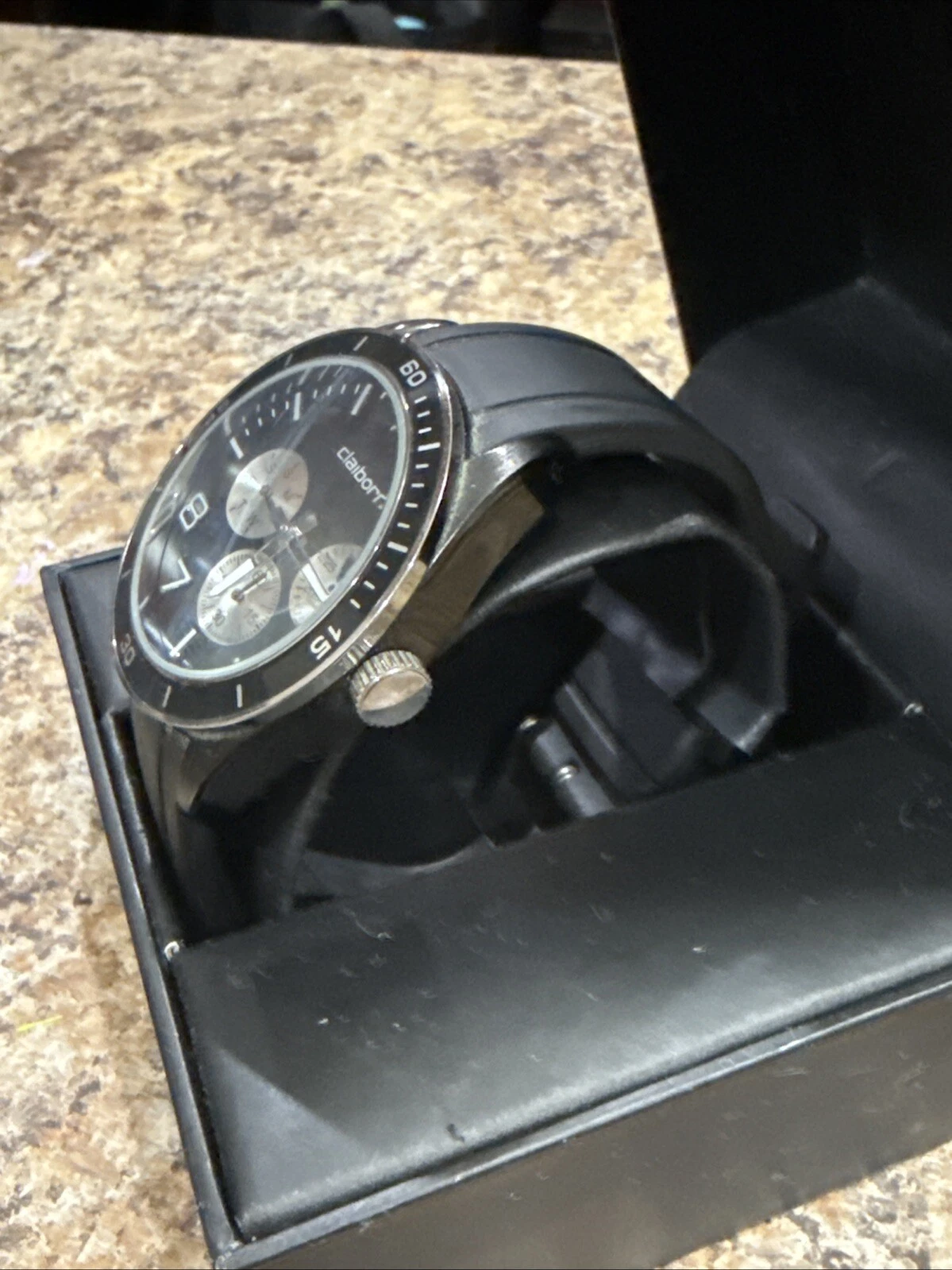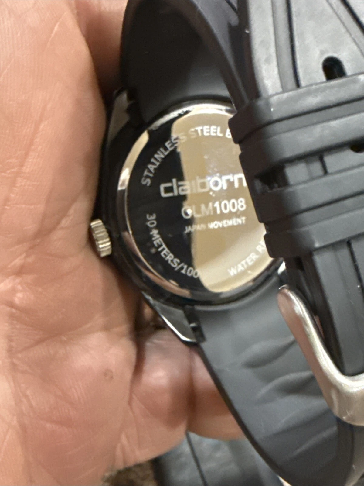 CLAIBORNE BLACK RUBBER MULTI FUNCTION DATE MEN WATCH CLM1008 NOB