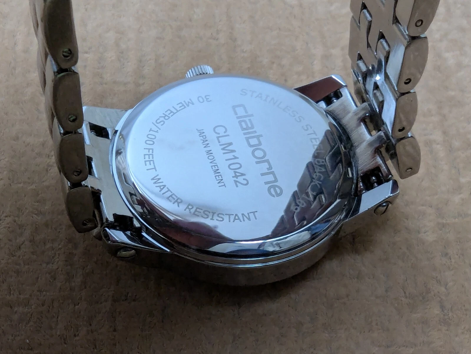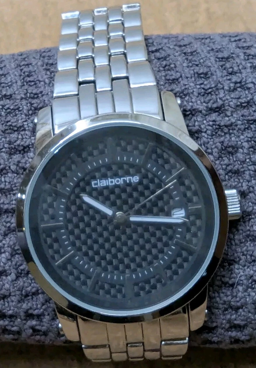 Claiborne Men's Watch Stainless Steel Bracelet Band & Back Analog Date CLM1042