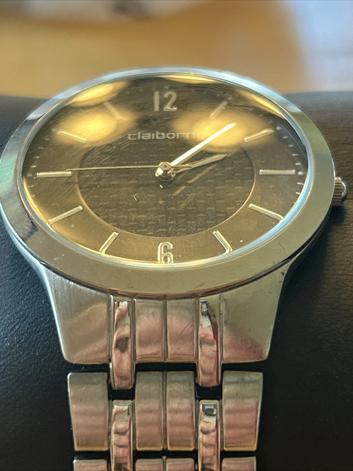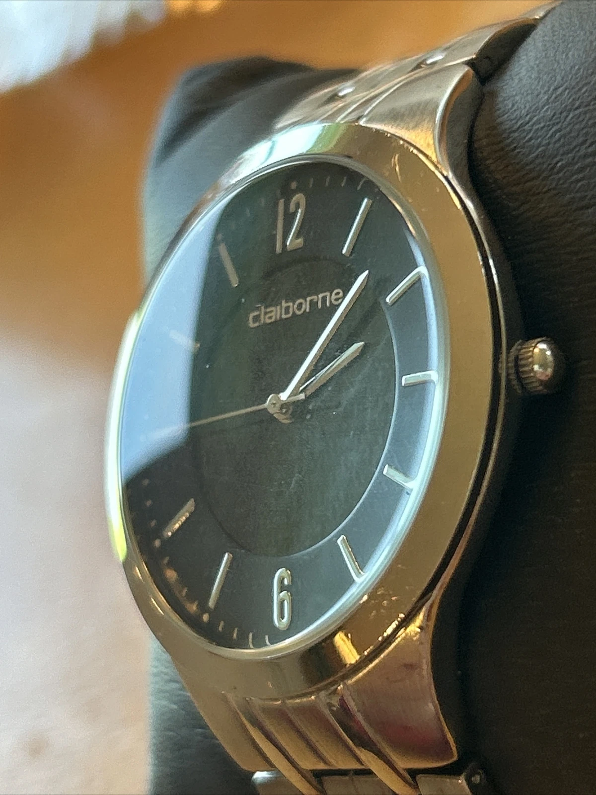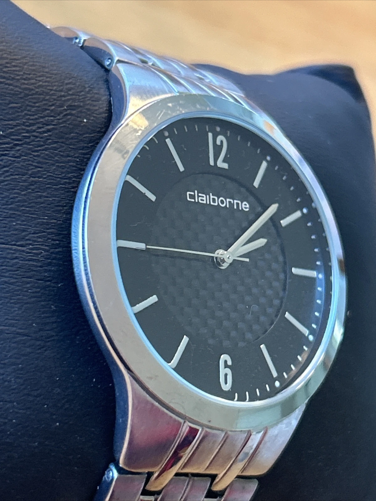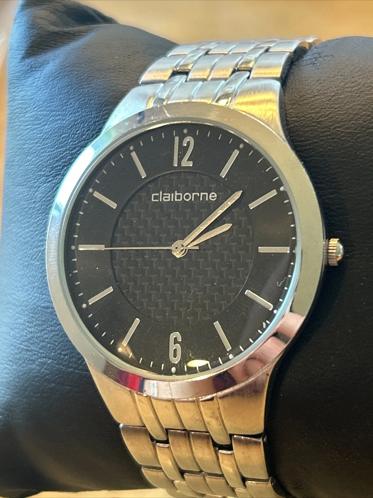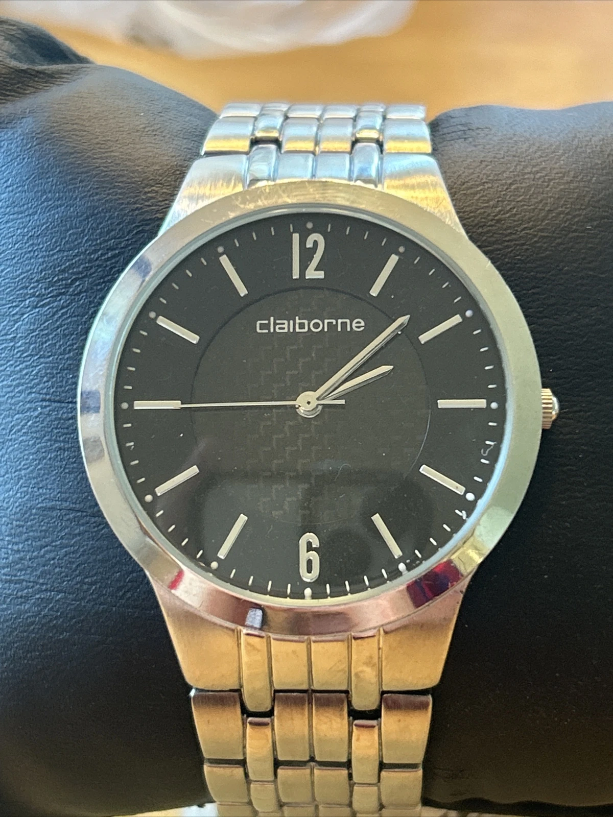 Claiborne Black Dial Silver Tone Men’s Quartz Watch