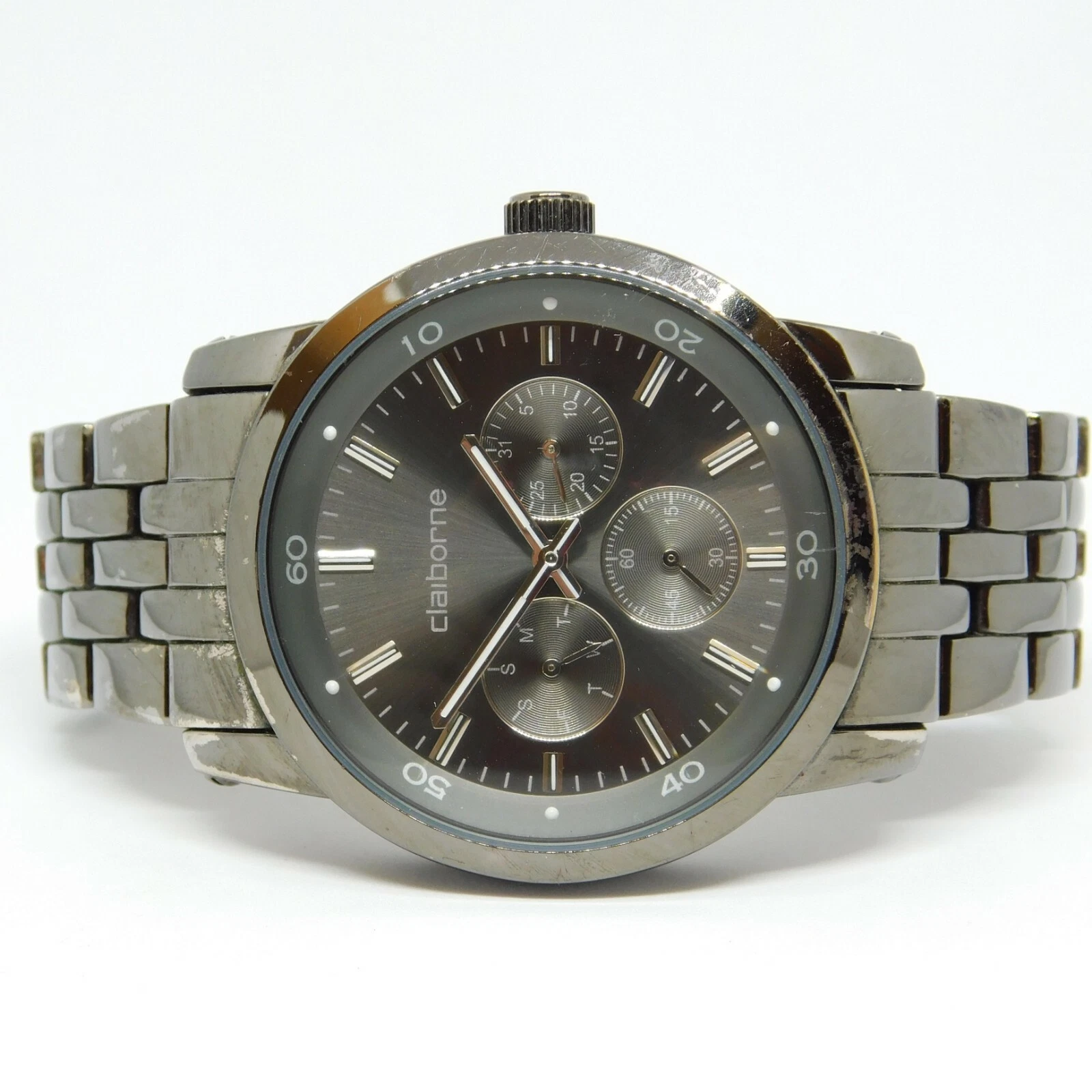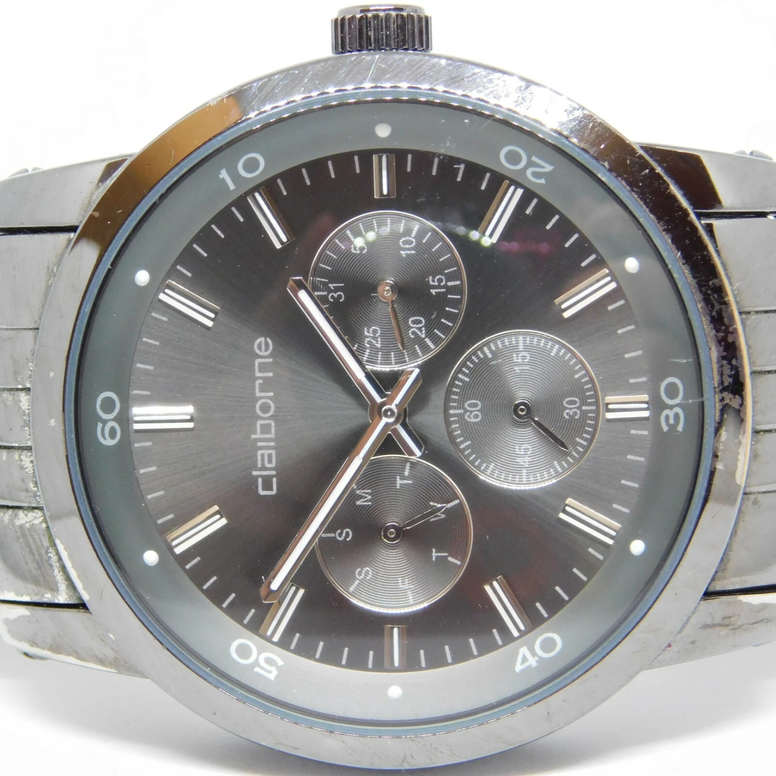 Claiborne CLM1069 Black Tone Quartz Analog Men's Watch Sz. 6 1/2" Battery
